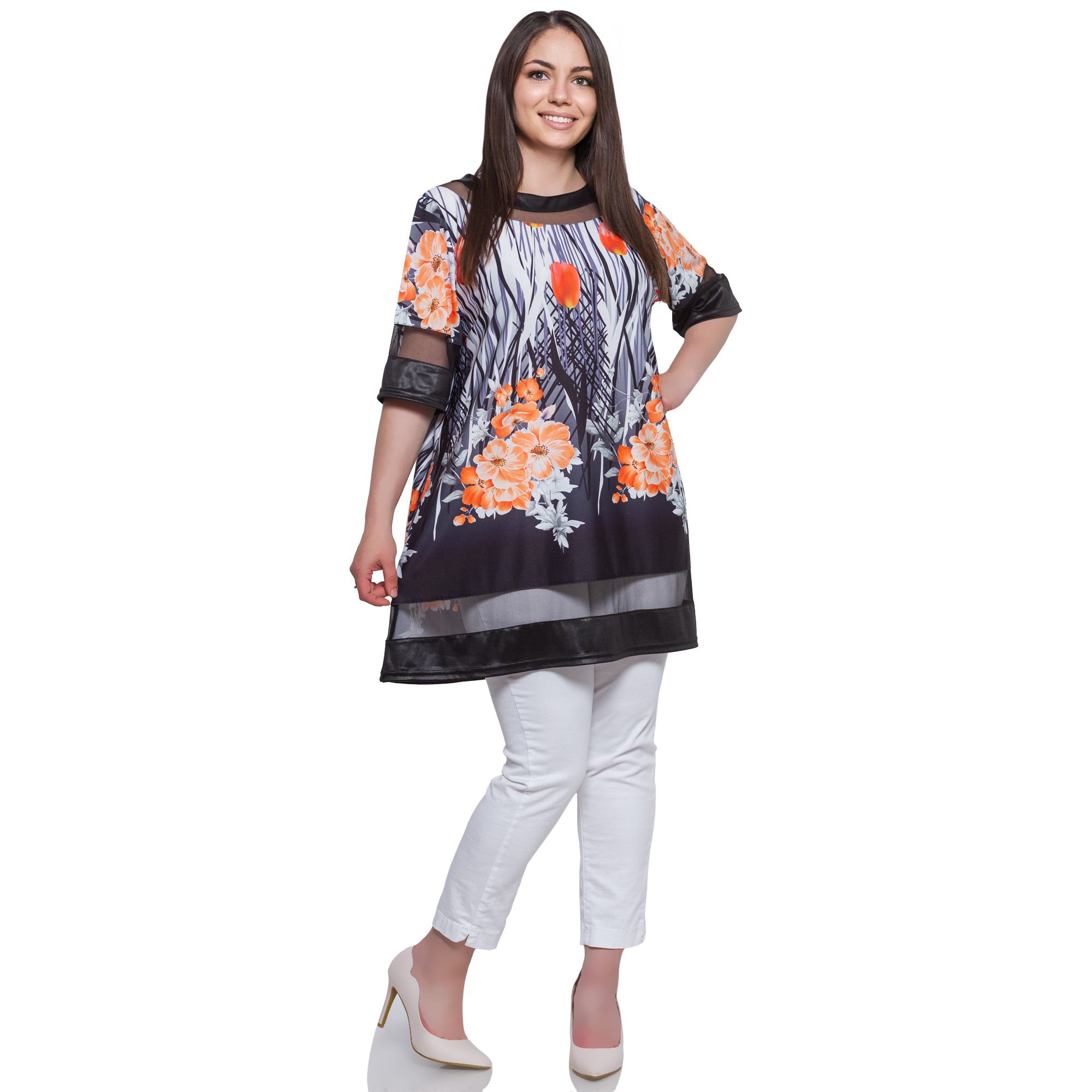 Разгледайте тази официална туника от Maxi Market, перфектен избор за пролетно-летни събития. Туниката е с разкроена кройка, което гарантира елегантност и свобода на движенията. Десенът е цветен с изящни флорални мотиви, което добавя свежест и женственост към външния вид. Деколтето от типа лодка допълнително подчертава раменете и допринася за изтънчения образ. Изработена от устойчиви и приятни на допир материали - 70% полиамид, 25% полиестер и 5% еластан, тази туника е идеалният избор за всяка дама, търсеща комфорт и стил.