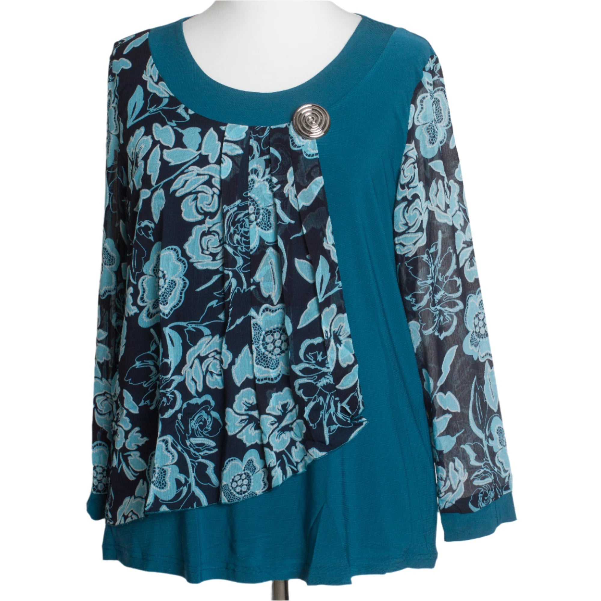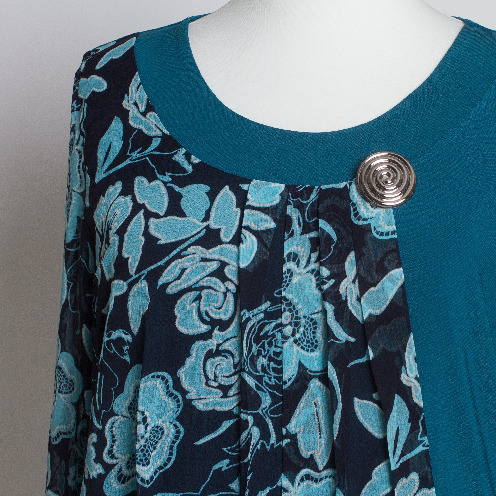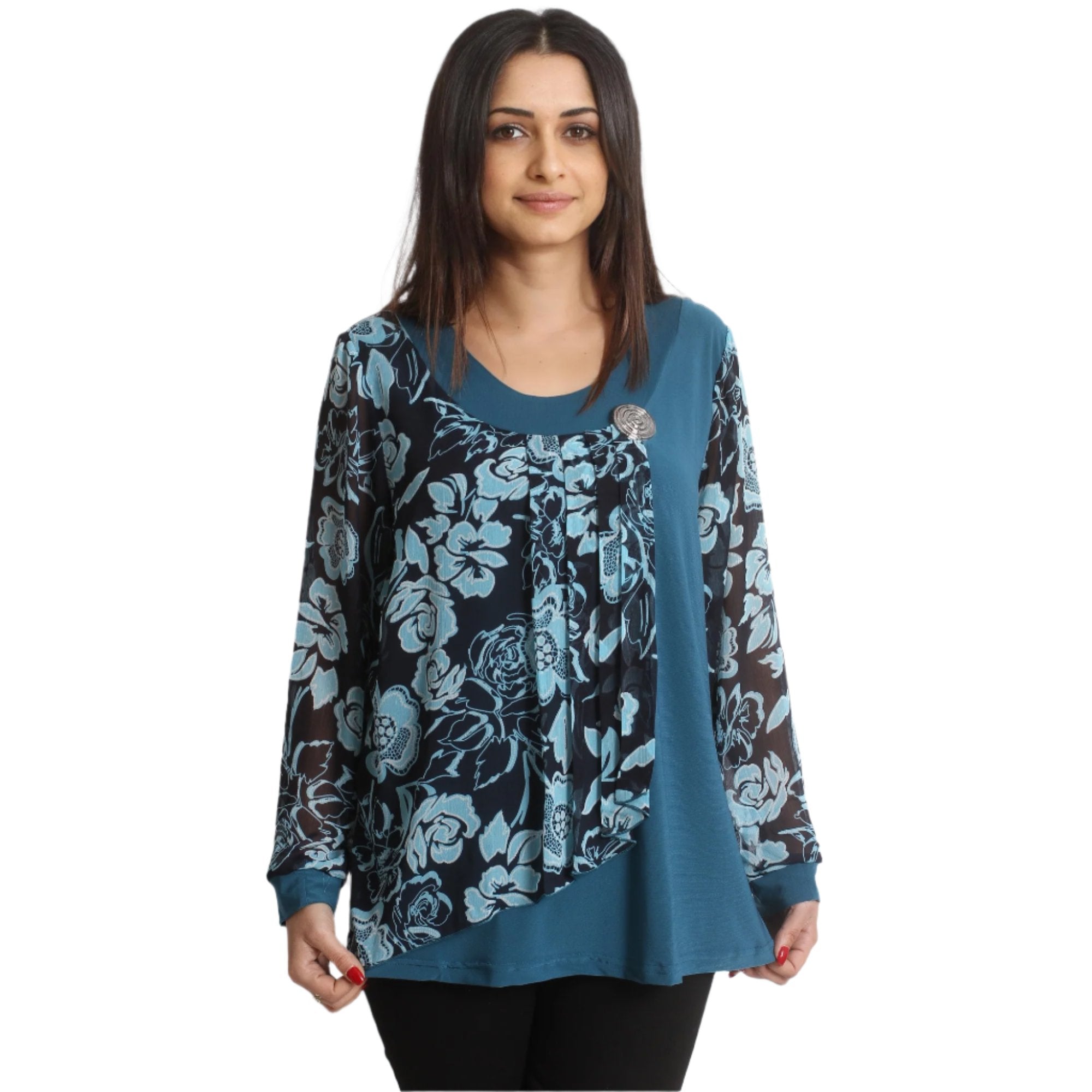 Открийте перфектната официална туника за вашите специални поводи в Maxi Market. Тази туника във впечатляващ петролен цвят е изключително изискана със своята свободна кройка и кръгло деколте, предлагайки елегантност и комфорт във всяка ситуация. Флоралният модел добавя нотка нежност и женственост, като прави тази дреха идеална за всякакви формални събития през всички сезони. Съставът от 95% вискоза и 5% еластан гарантира удобство и еластичност, позволявайки туниката да оформя естествено вашата фигура. Осигурете си увереност и стил с тази уникална туника, която ще бъде вашият верен спътник на официални събития.