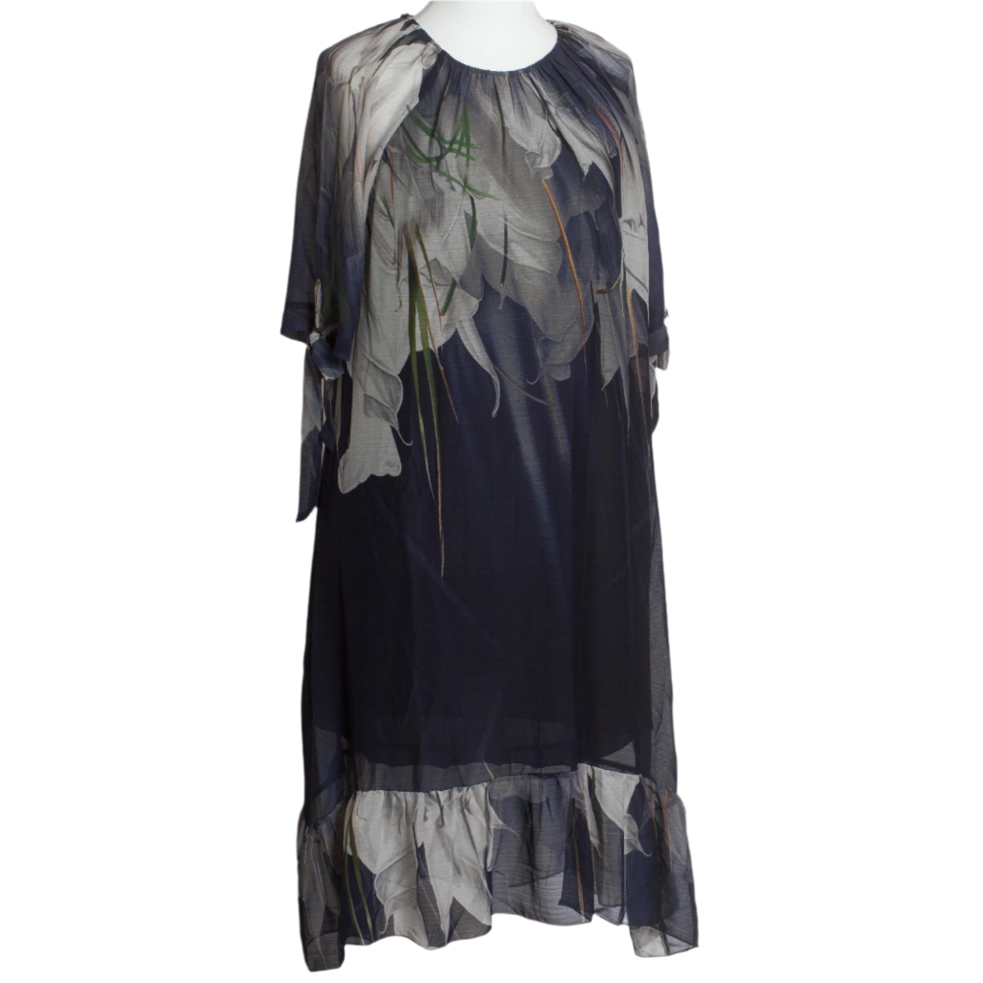 Открийте идеалната визия за важните моменти с тази елегантна рокля от шифон, предлагана от Maxi Market. Изработена от висококачествени материали с 95% вискоза и 5% еластан, тази рокля подчертава вашите форми с удобство и стил. Цветът е тъмносин, което добавя дълбочина и изтънченост към вашия външен вид, а абстрактният десен придава артистичен привкус. Деколтето е тип "лодка", което елегантно разкрива раменете, а дължината под коляното е перфектна за официални събития през пролетно-летния сезон. Подходяща за жени с пищни форми, тази рокля е не само красива, но и изключително удобна.