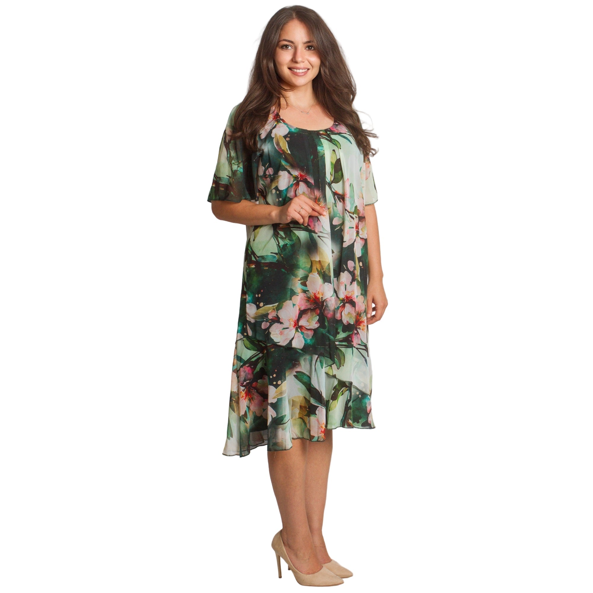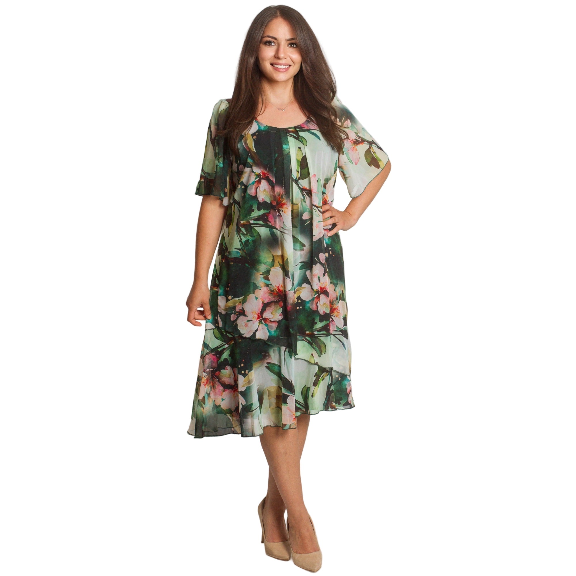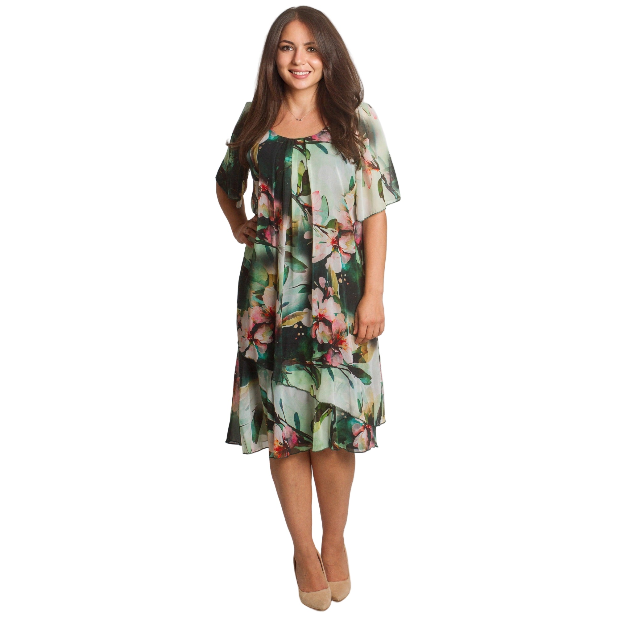 Пъстра шифонена рокля - Еластична подплата