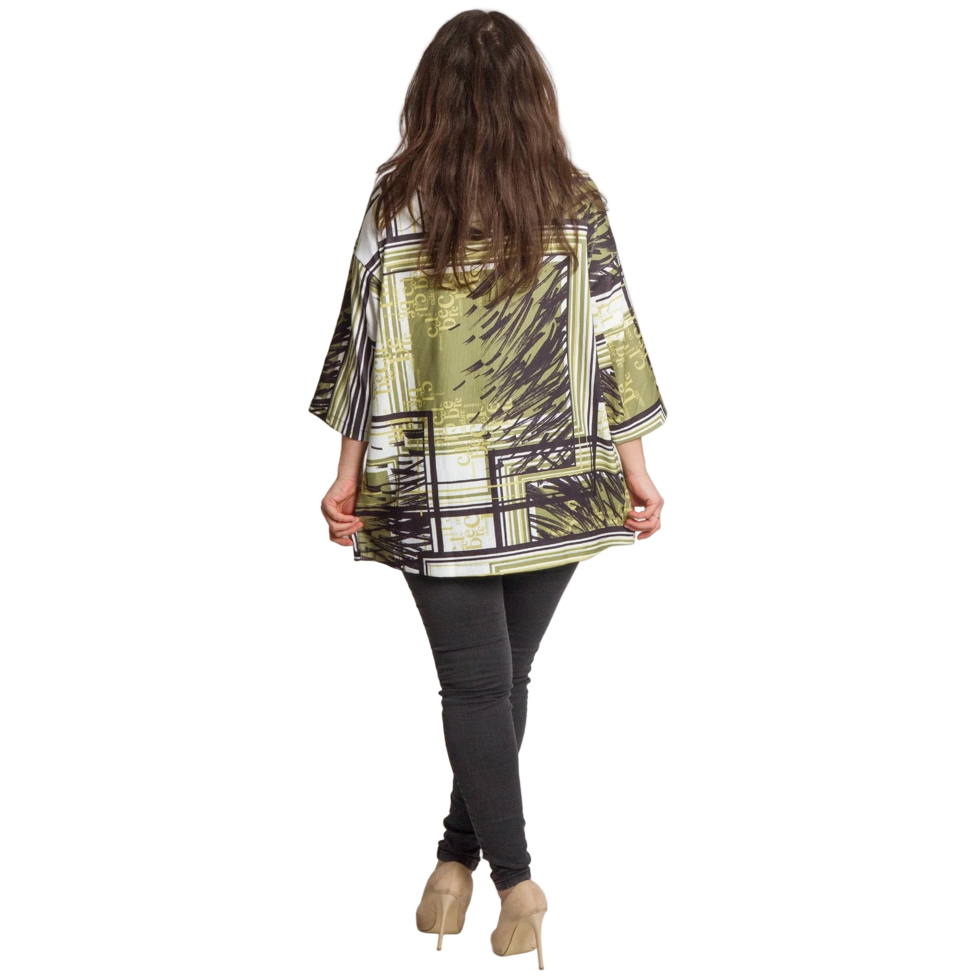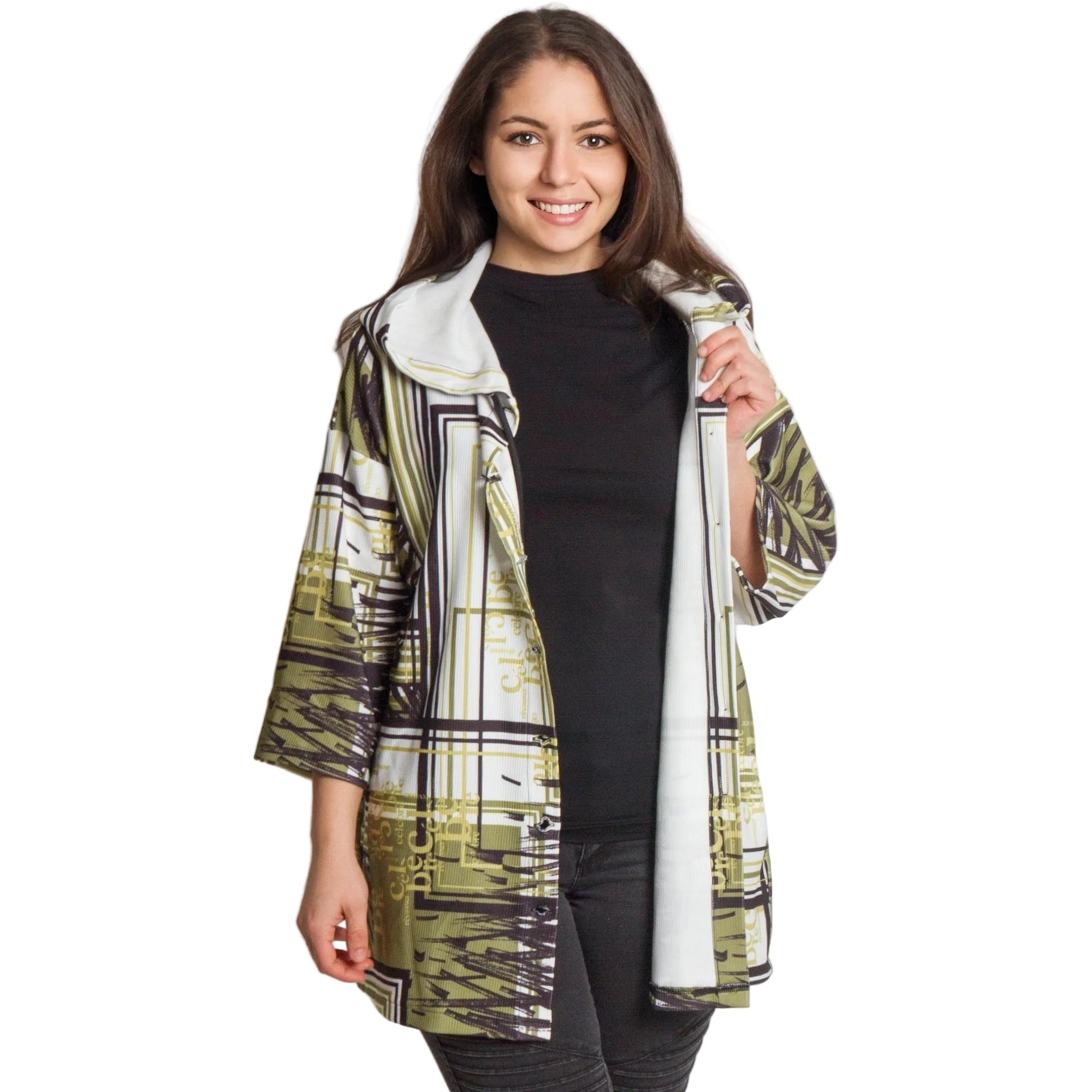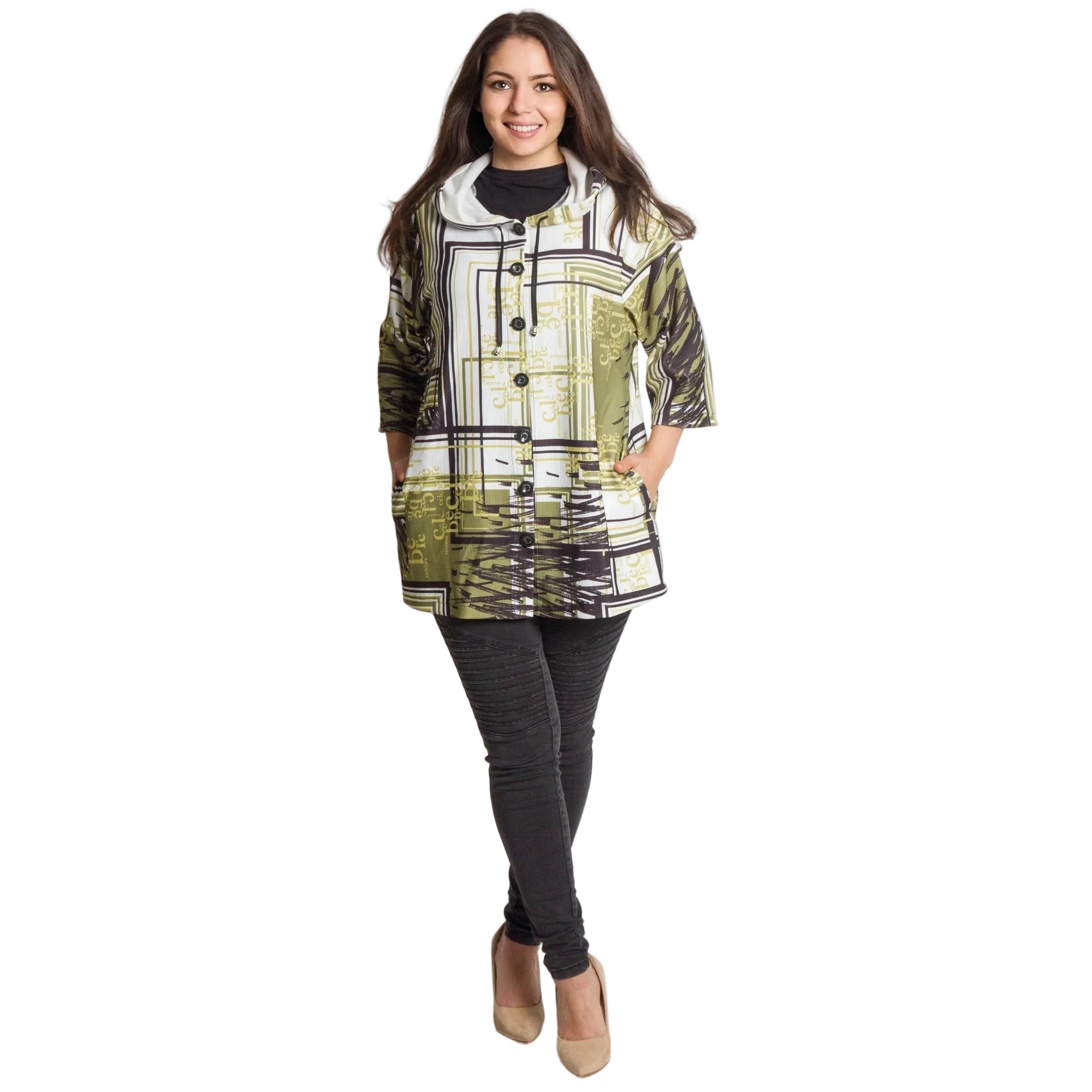 Насладете се на този красив макси жакет с качулка в стилен десен, в свободна кройка и копченца.