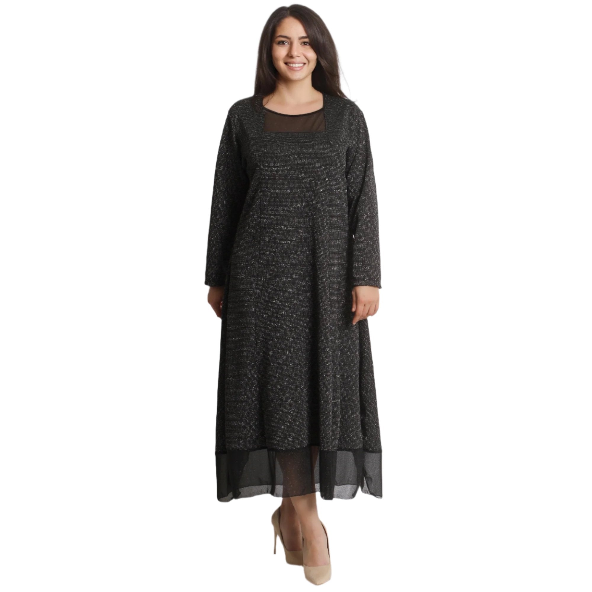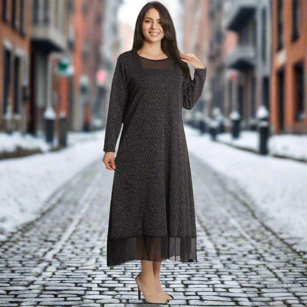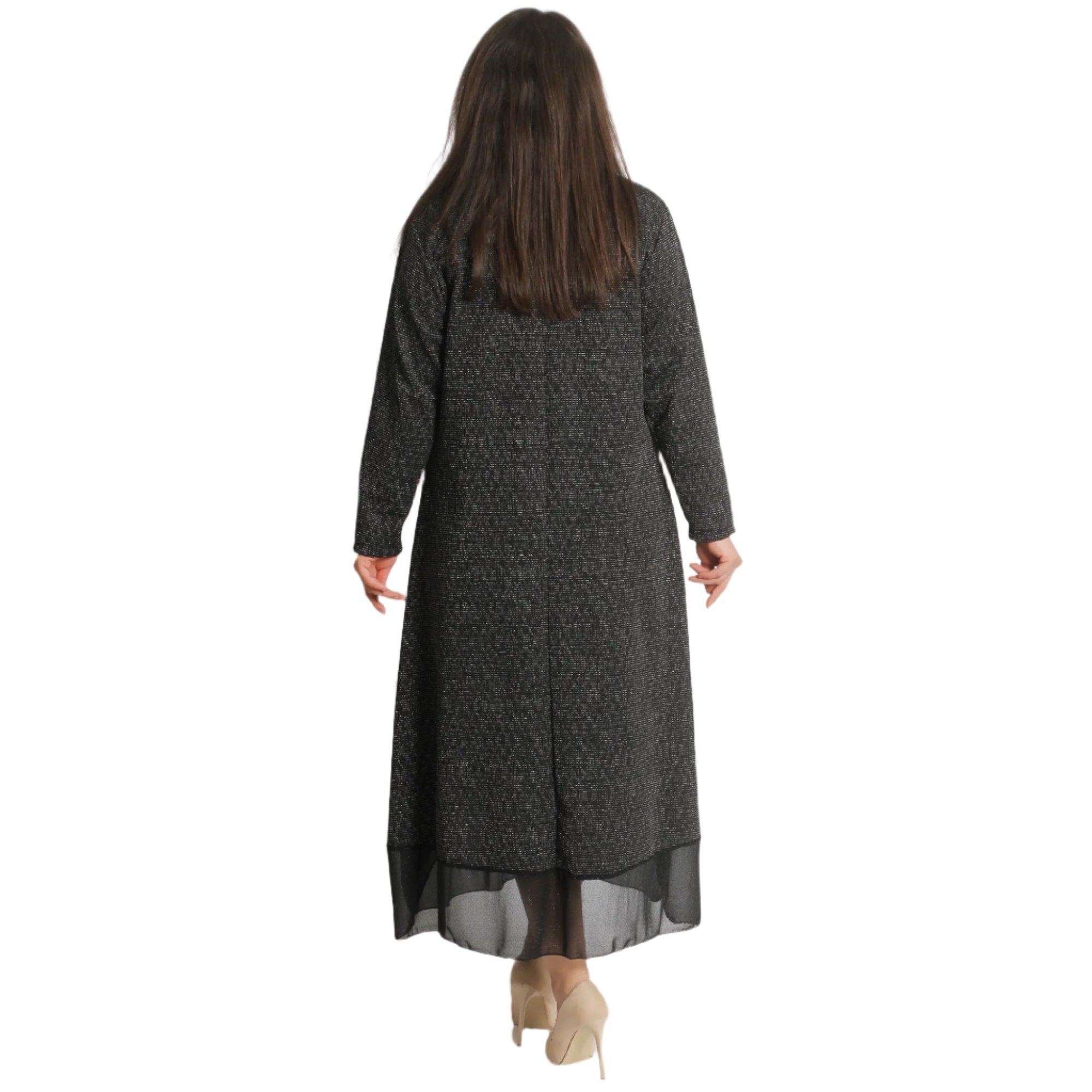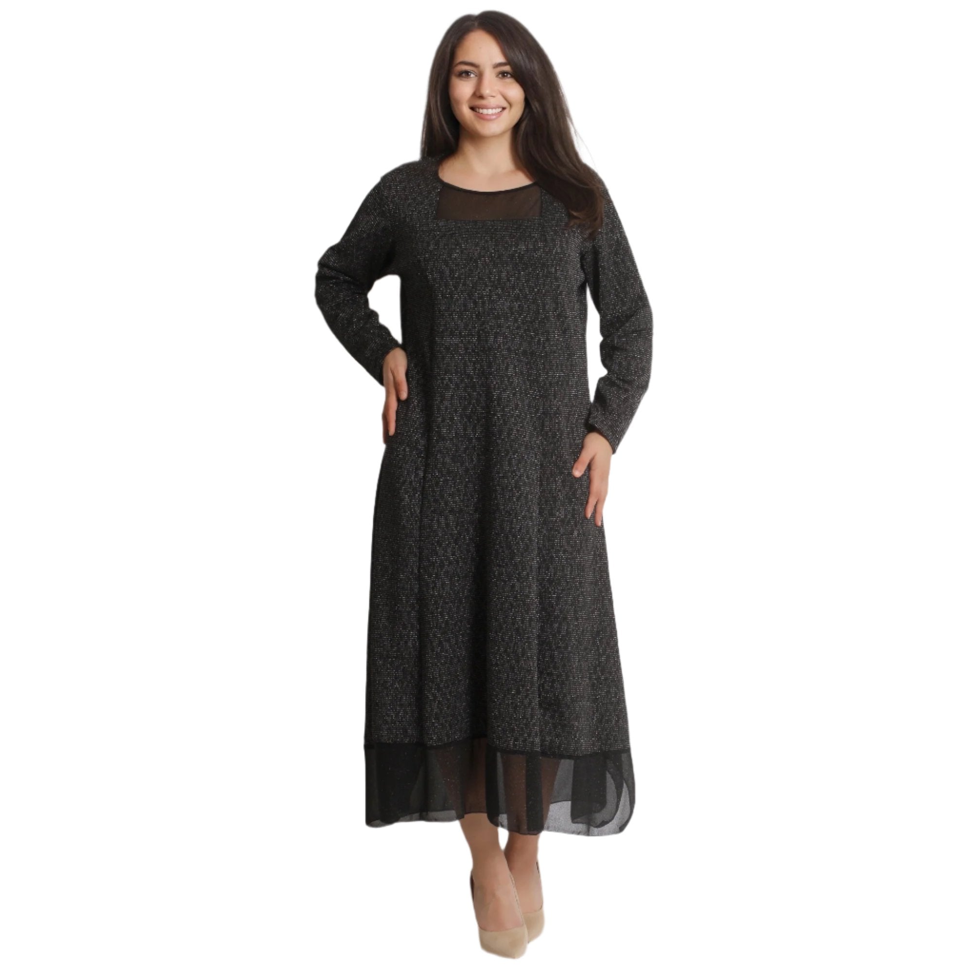 Официална дълга рокля, изработена от 70% памук и 30% полиестер, с красив тюл и разкроен дизайн. Идеална за зимни поводи, тази рокля съчетава елегантност и комфорт, подходяща за специални моменти през студените месеци.
