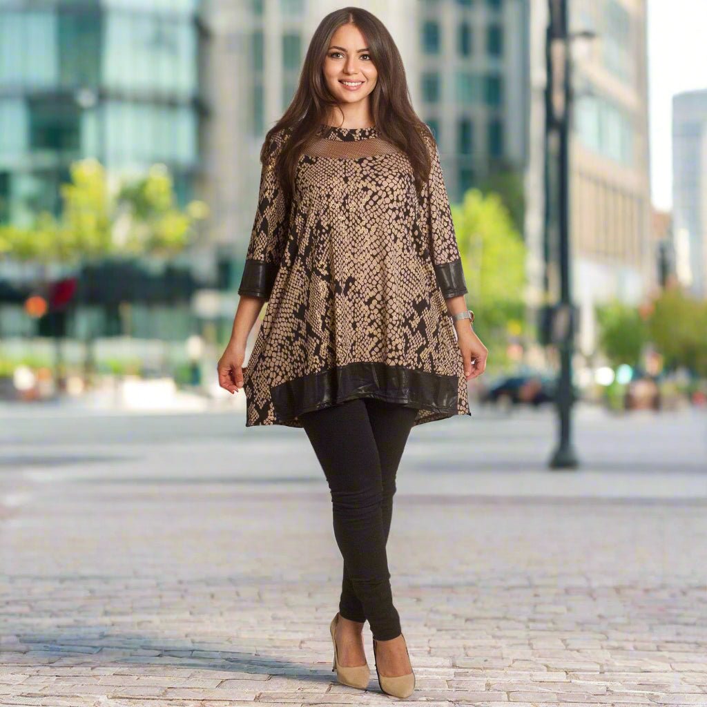 Открийте стил и удобство с тази елегантна туника в бежов цвят и 3/4 ръкави, предназначена за официални поводи. Тази туника е изработена с свободна кройка, което придава изтънчен и модерен вид. Перфектна за есенно-зимния сезон, изработена от висококачествени материали - 5% еластан, 25% полиестер и 70% полиамид, гарантиращи комфорт и издръжливост.