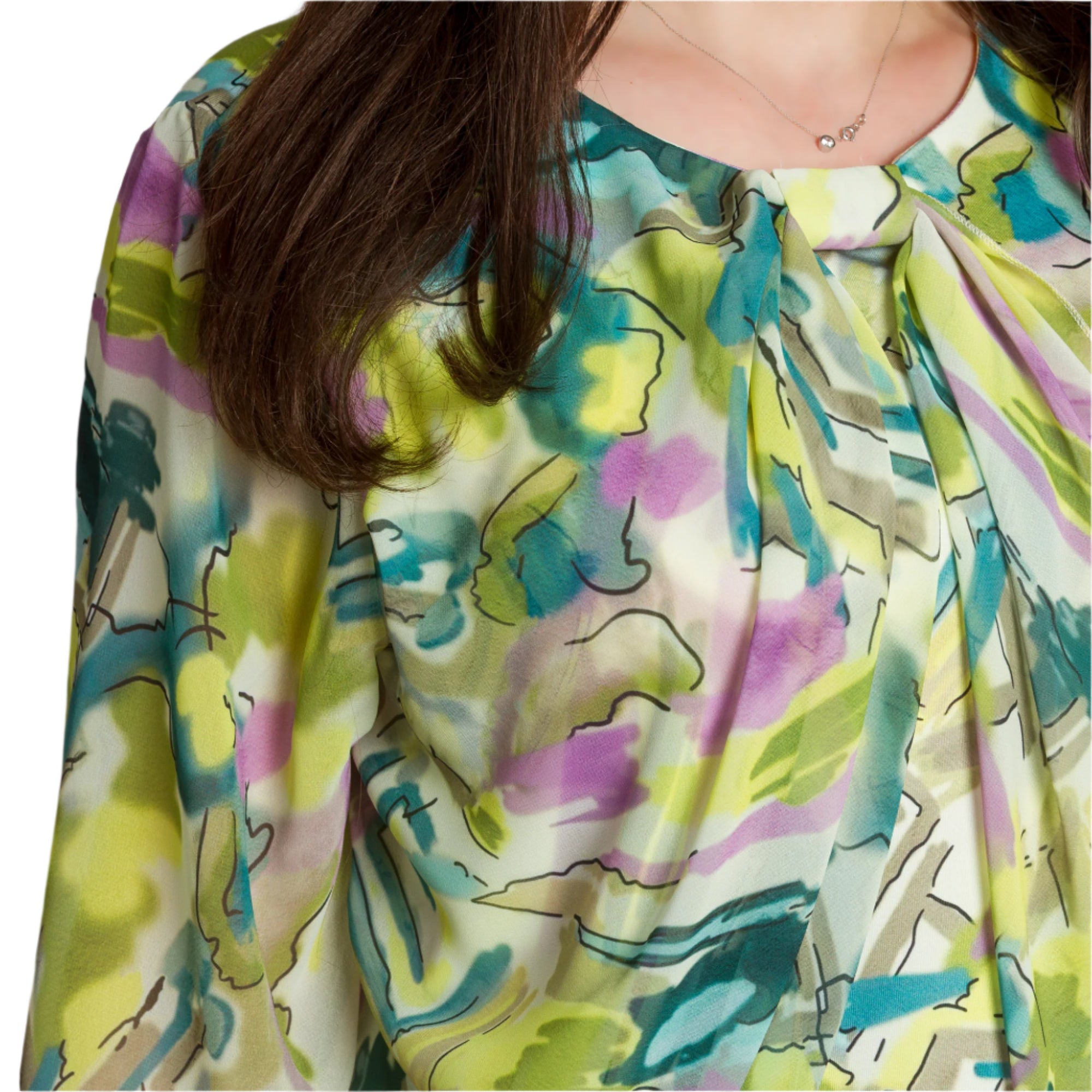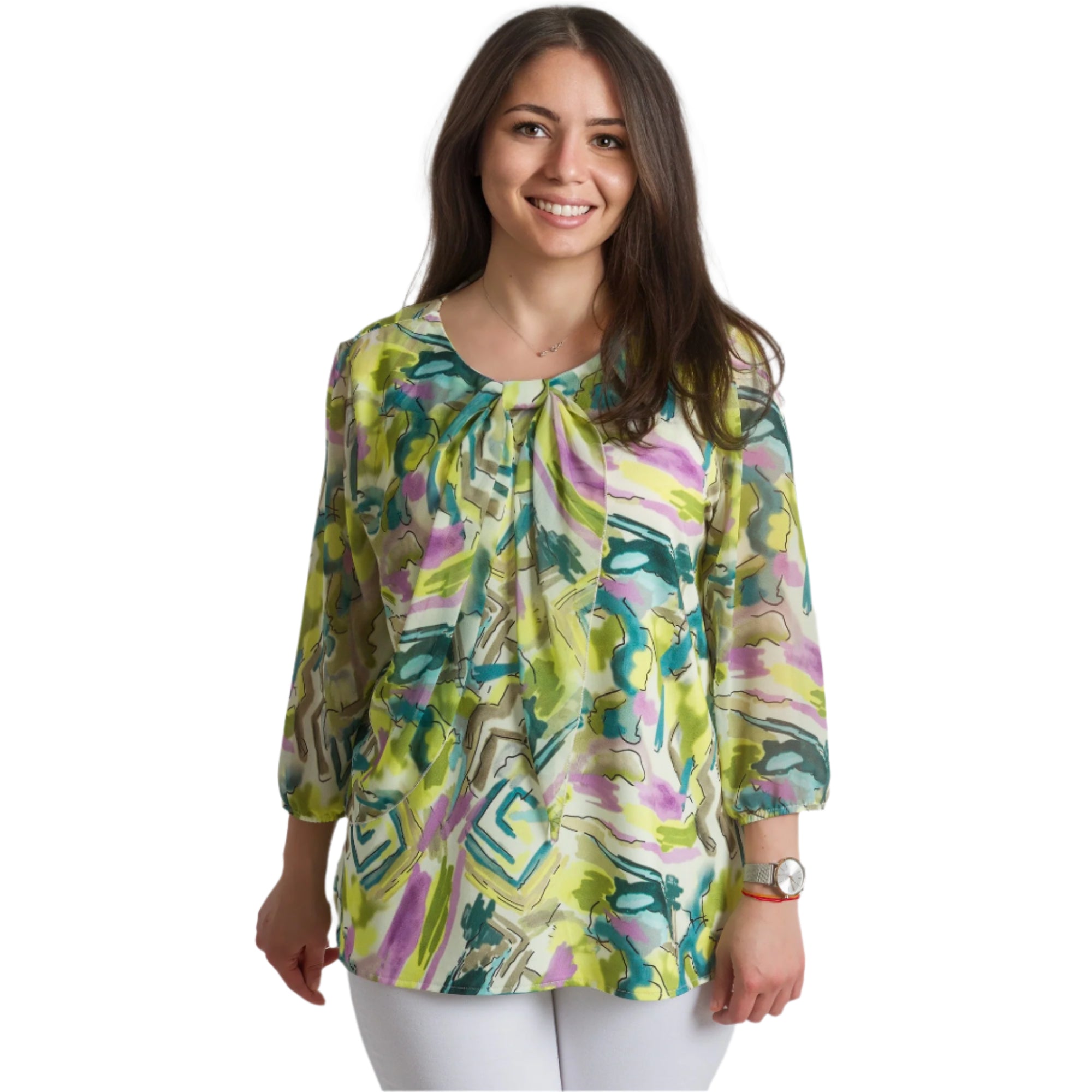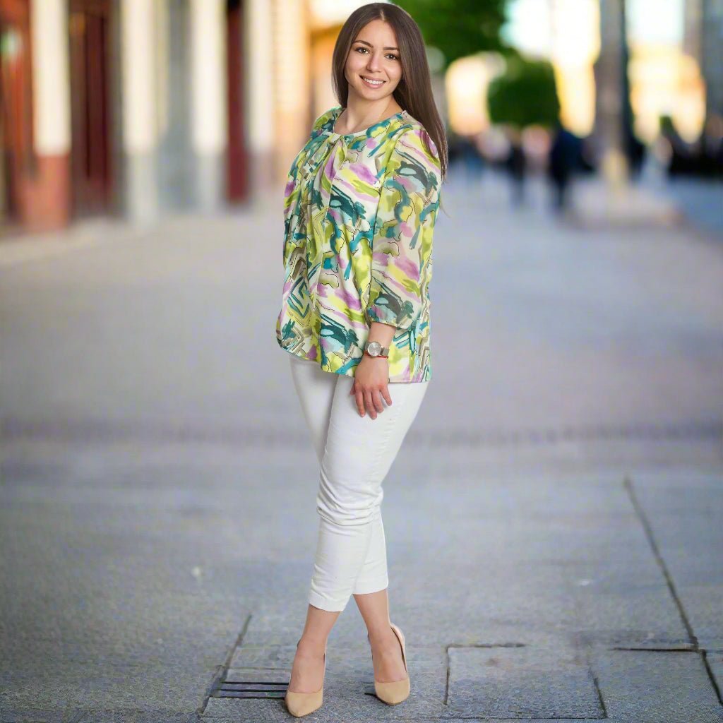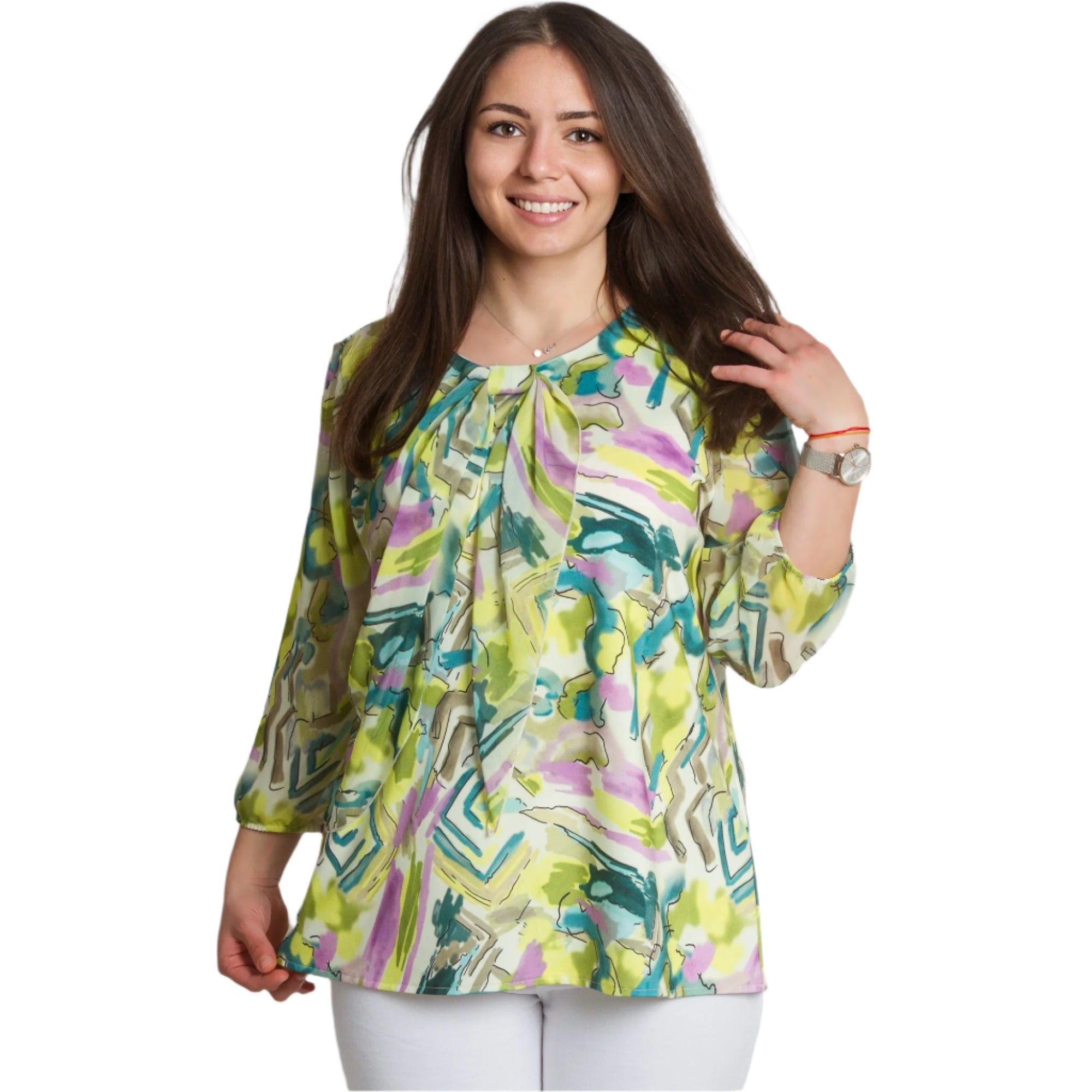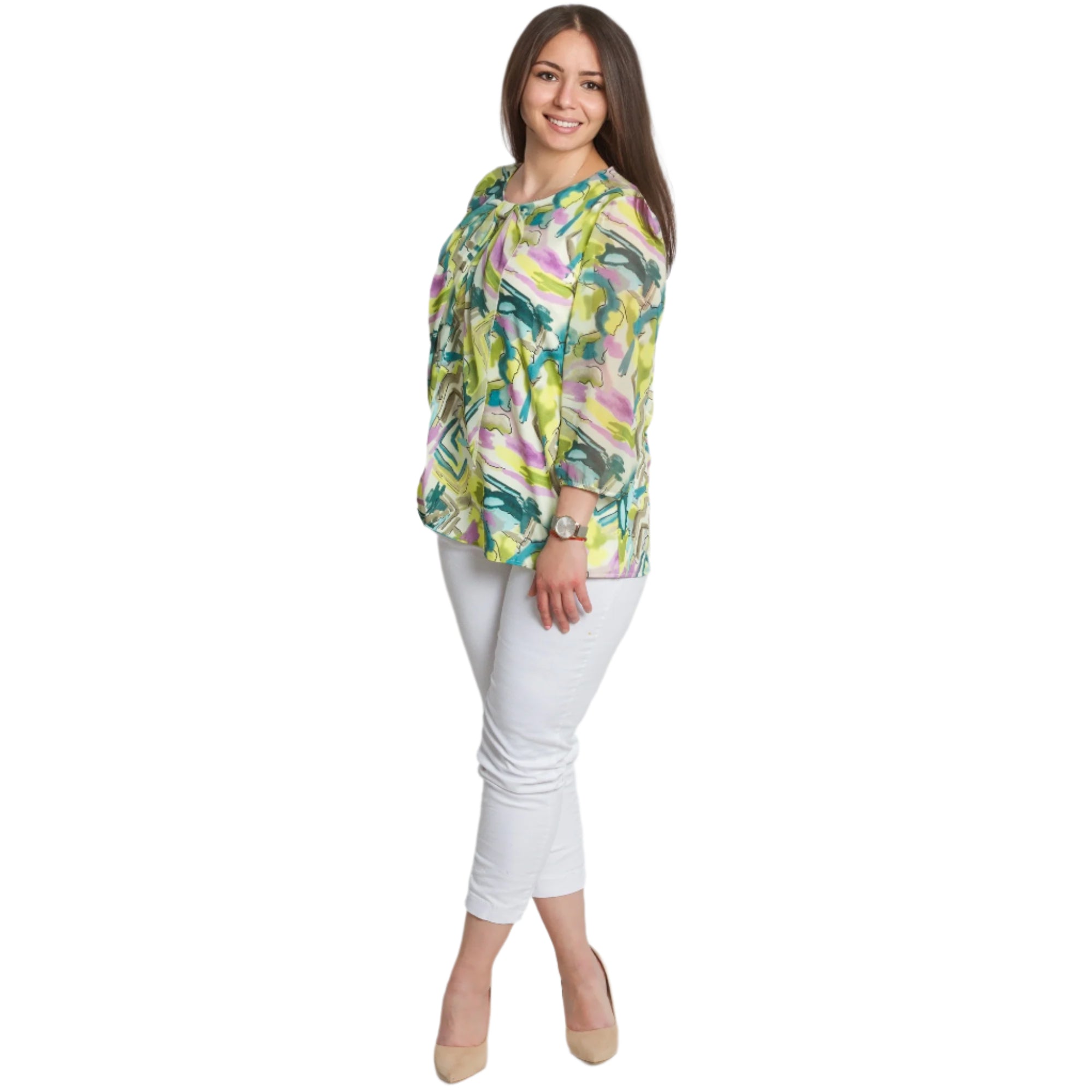 Официална туника с ефектно деколте и цветен шифон, изработена от 95% полиестер и 5% еластан. Свободният модел придава елегантност и стил, правейки я перфектен избор за официални поводи.