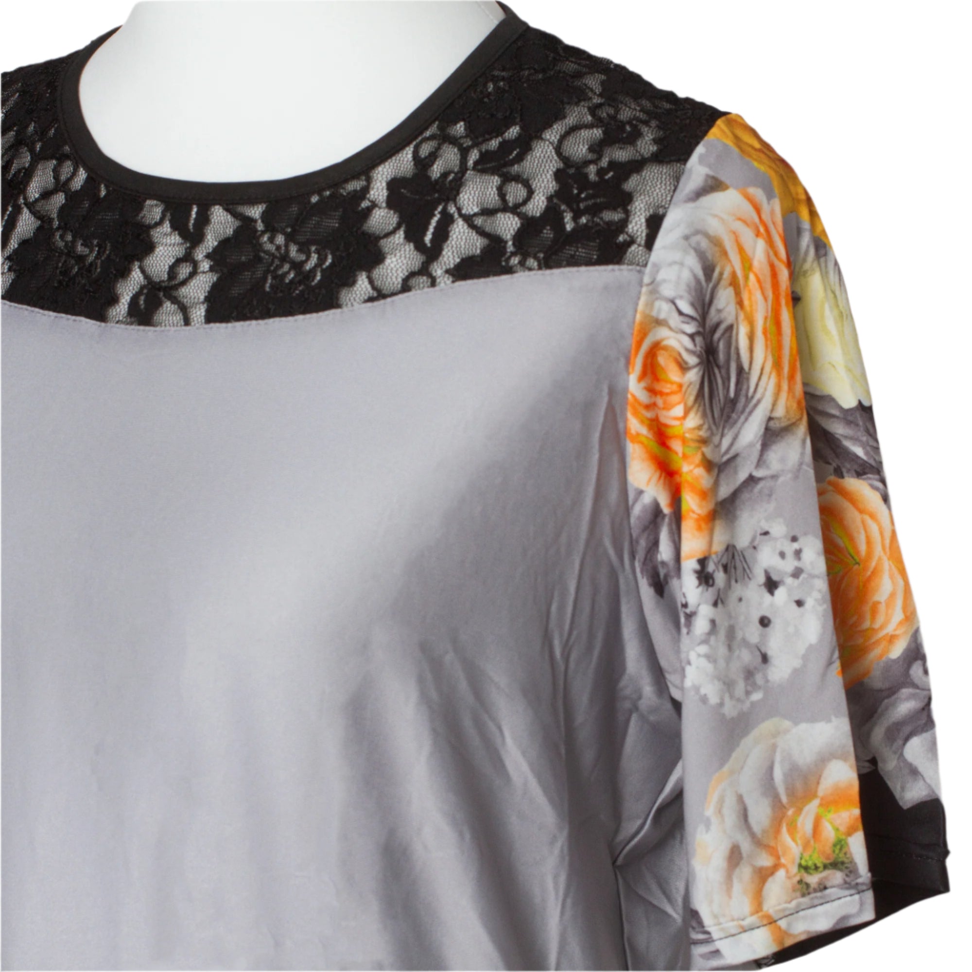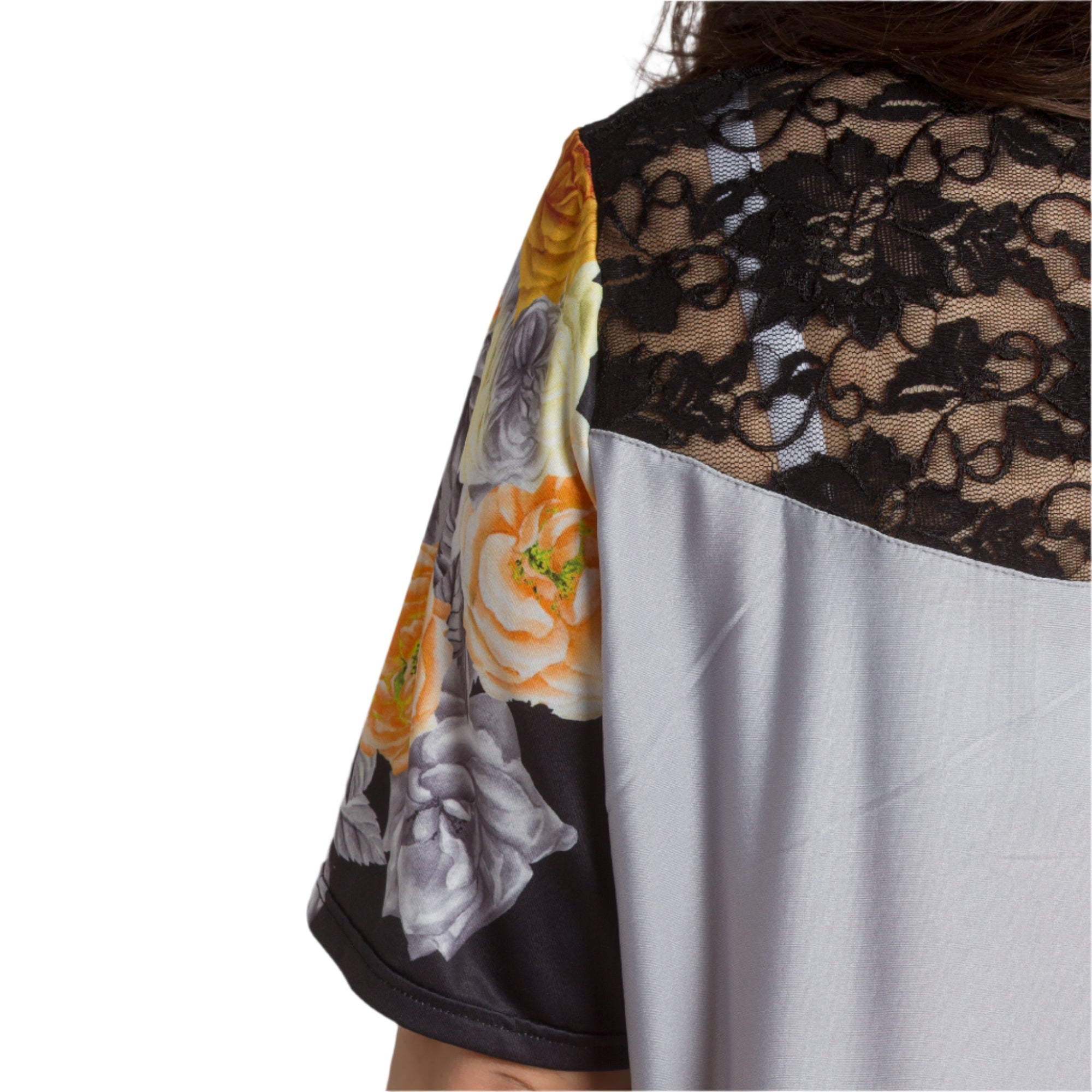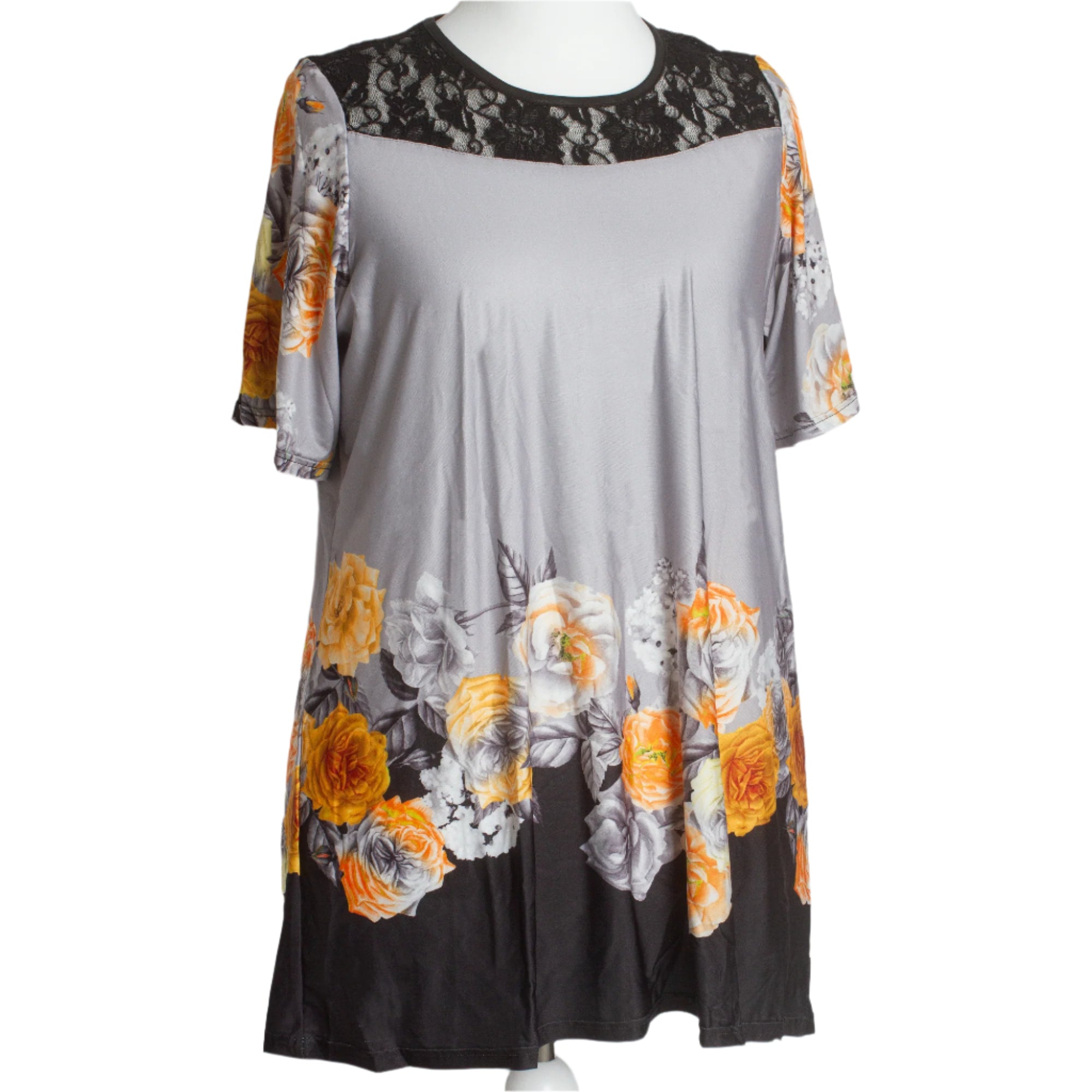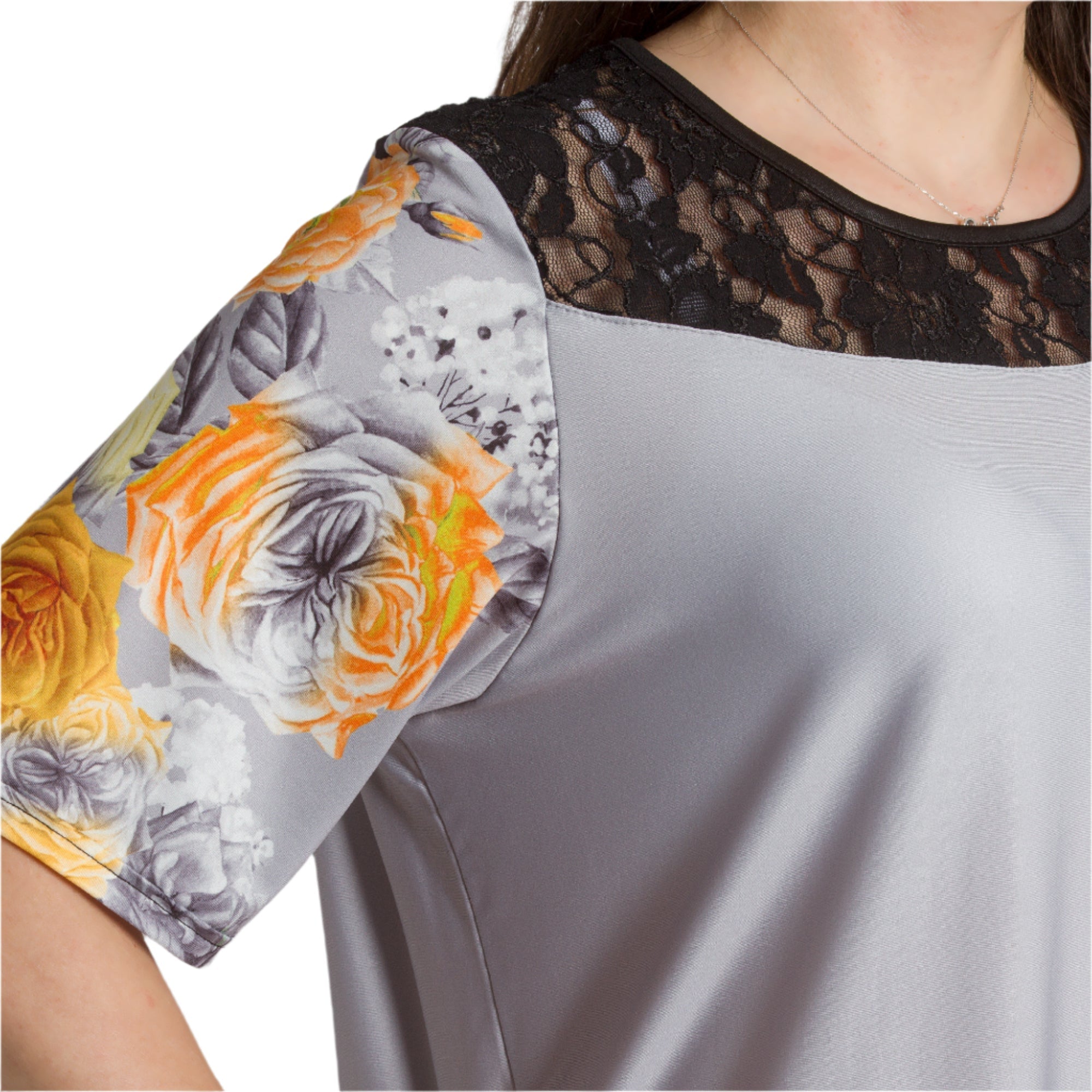 Сива елегантна туника с цветен бордюр и дантелен акцент