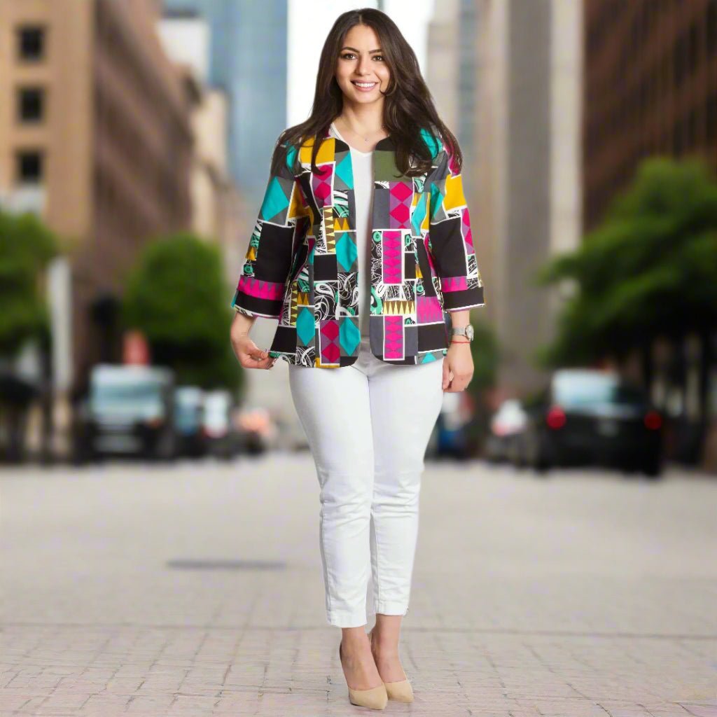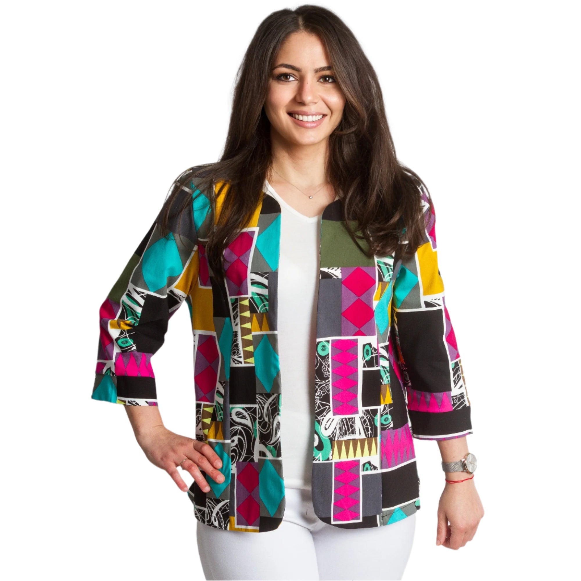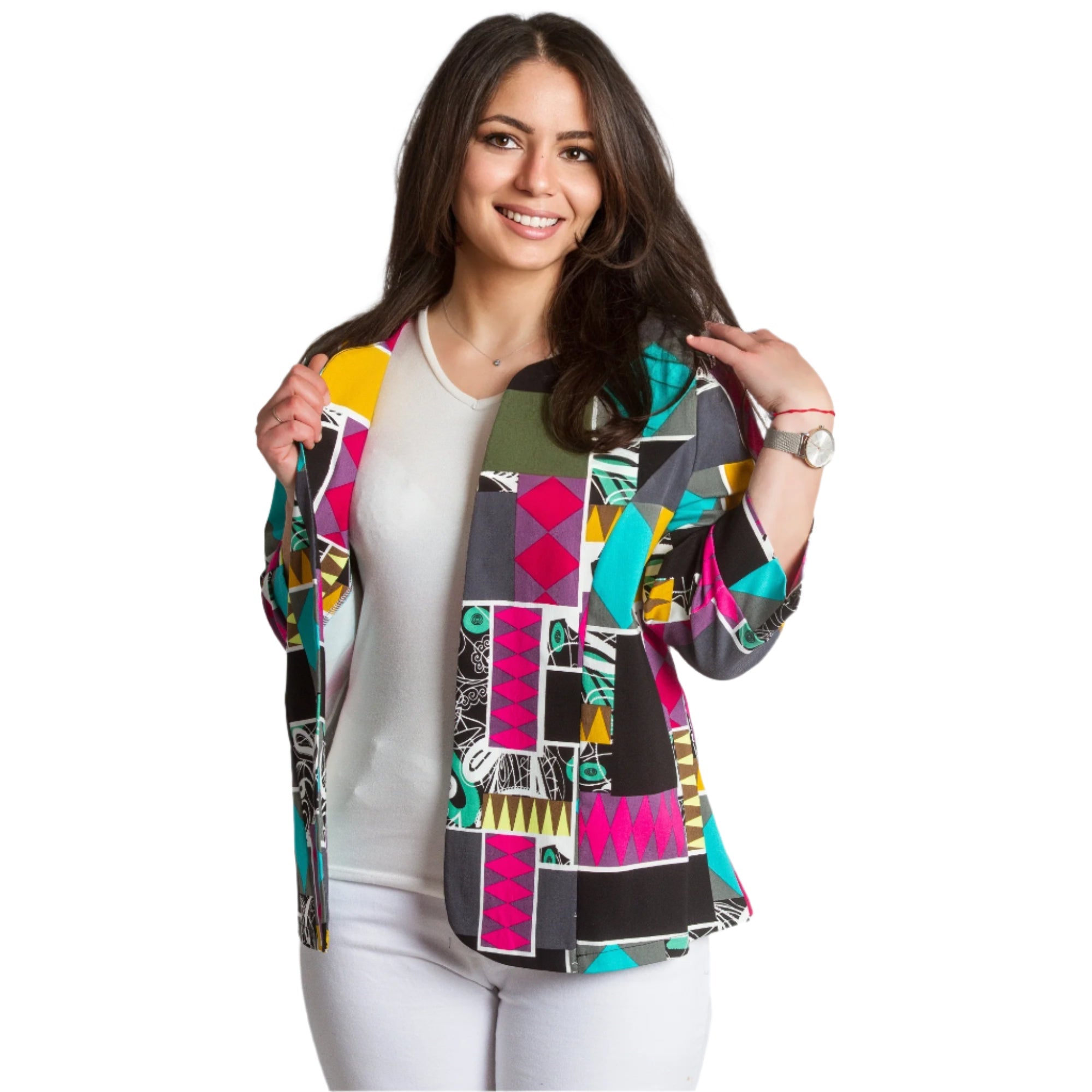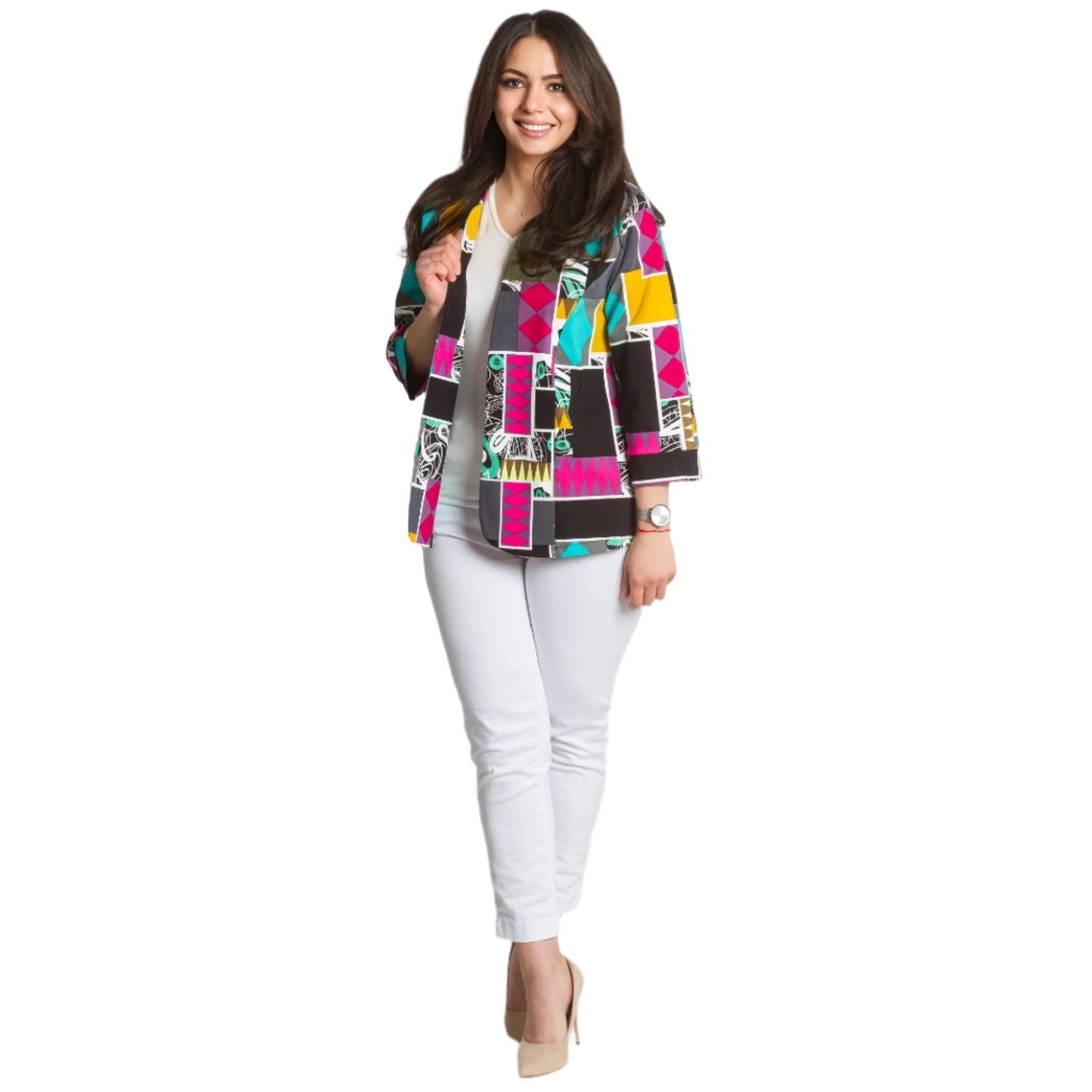 Цветно сако без копчета с 3/4 ръкави в макси размери