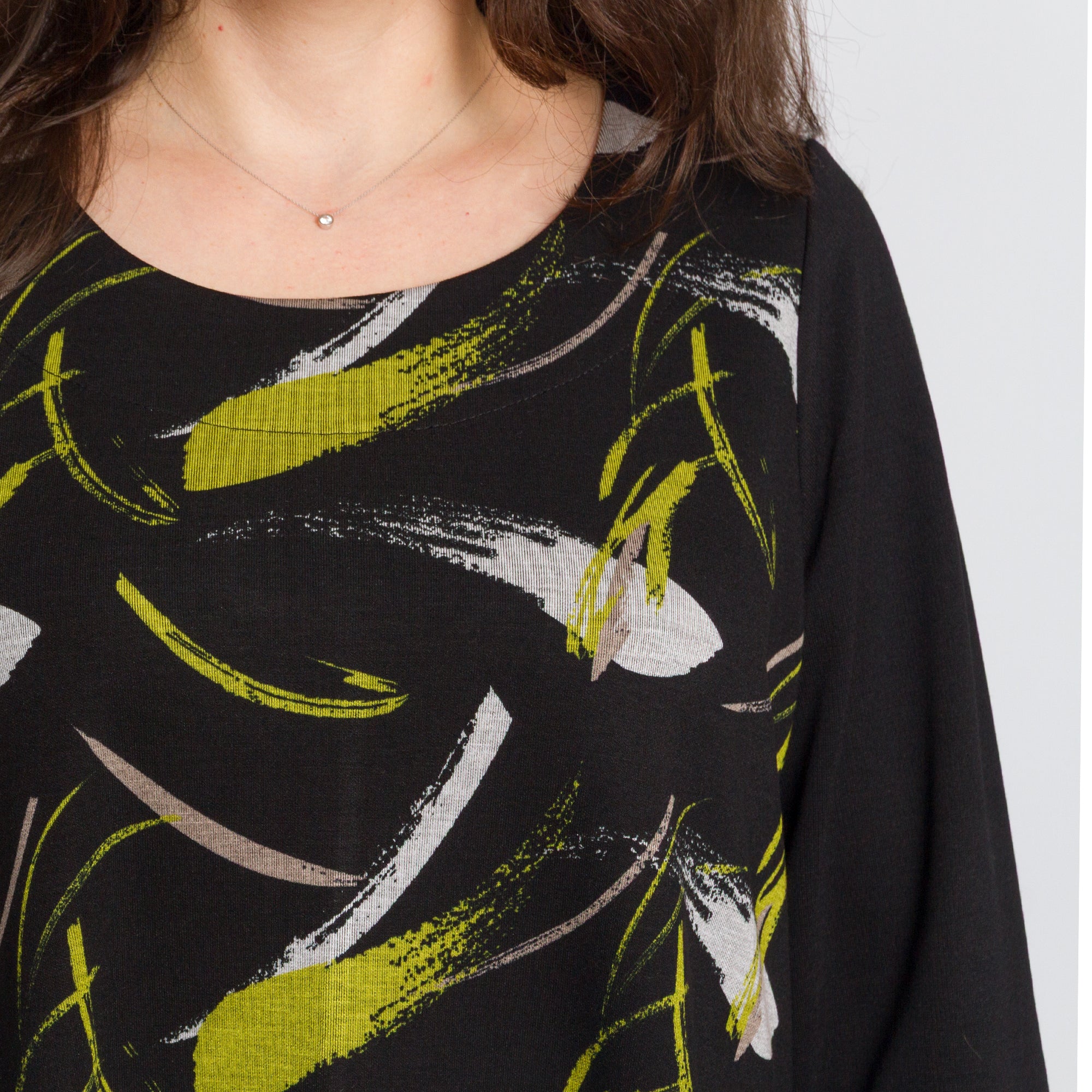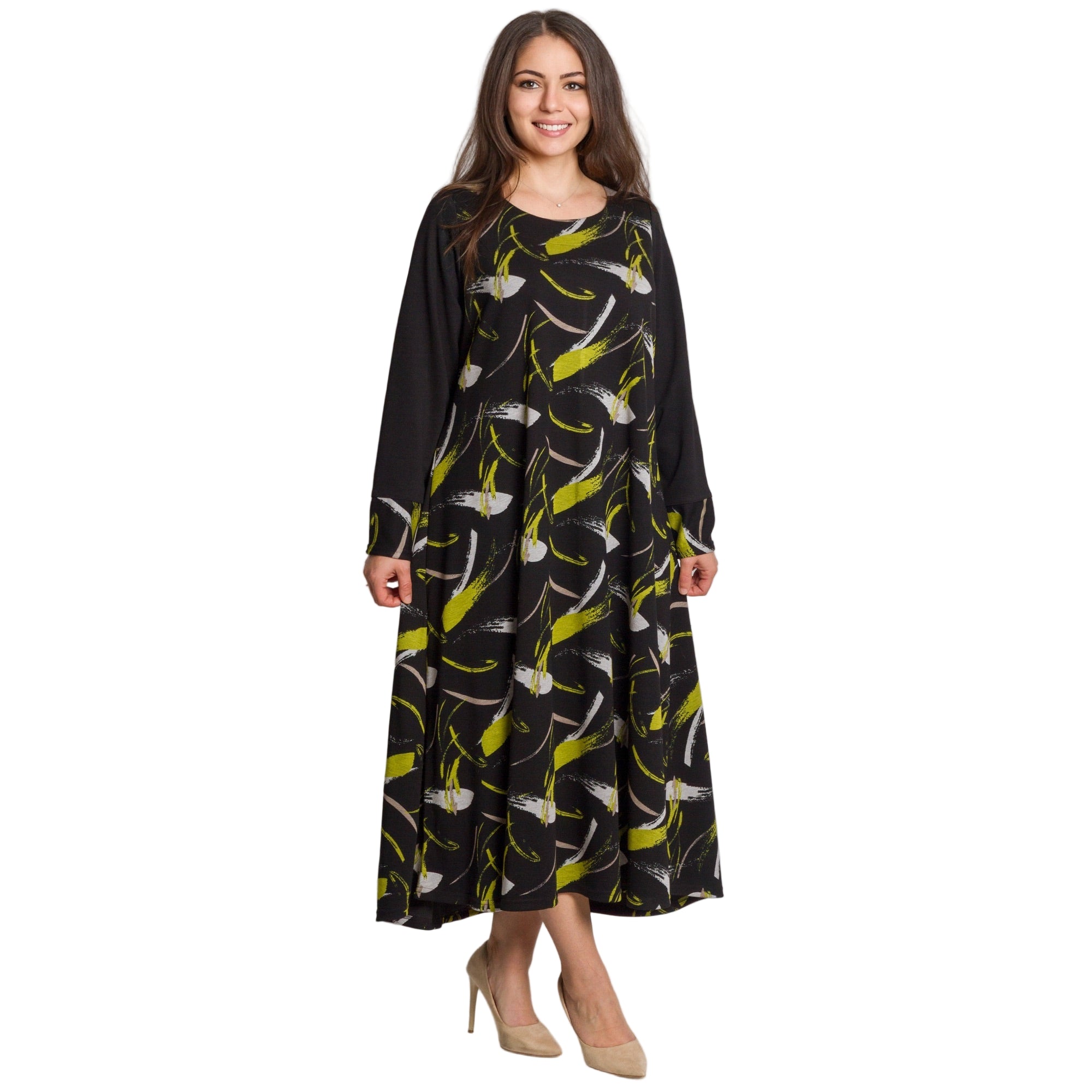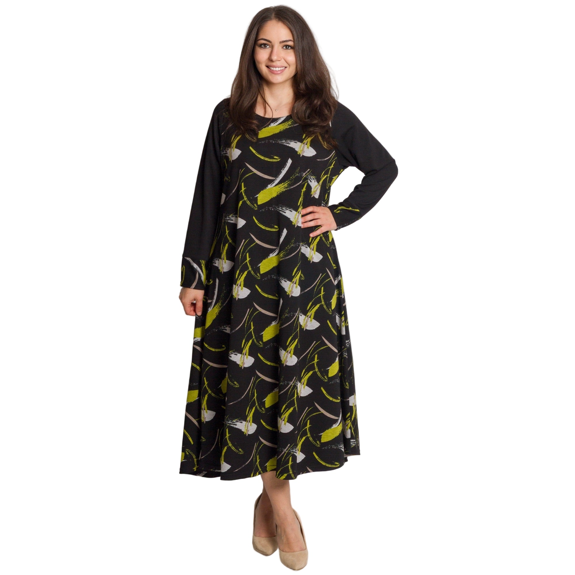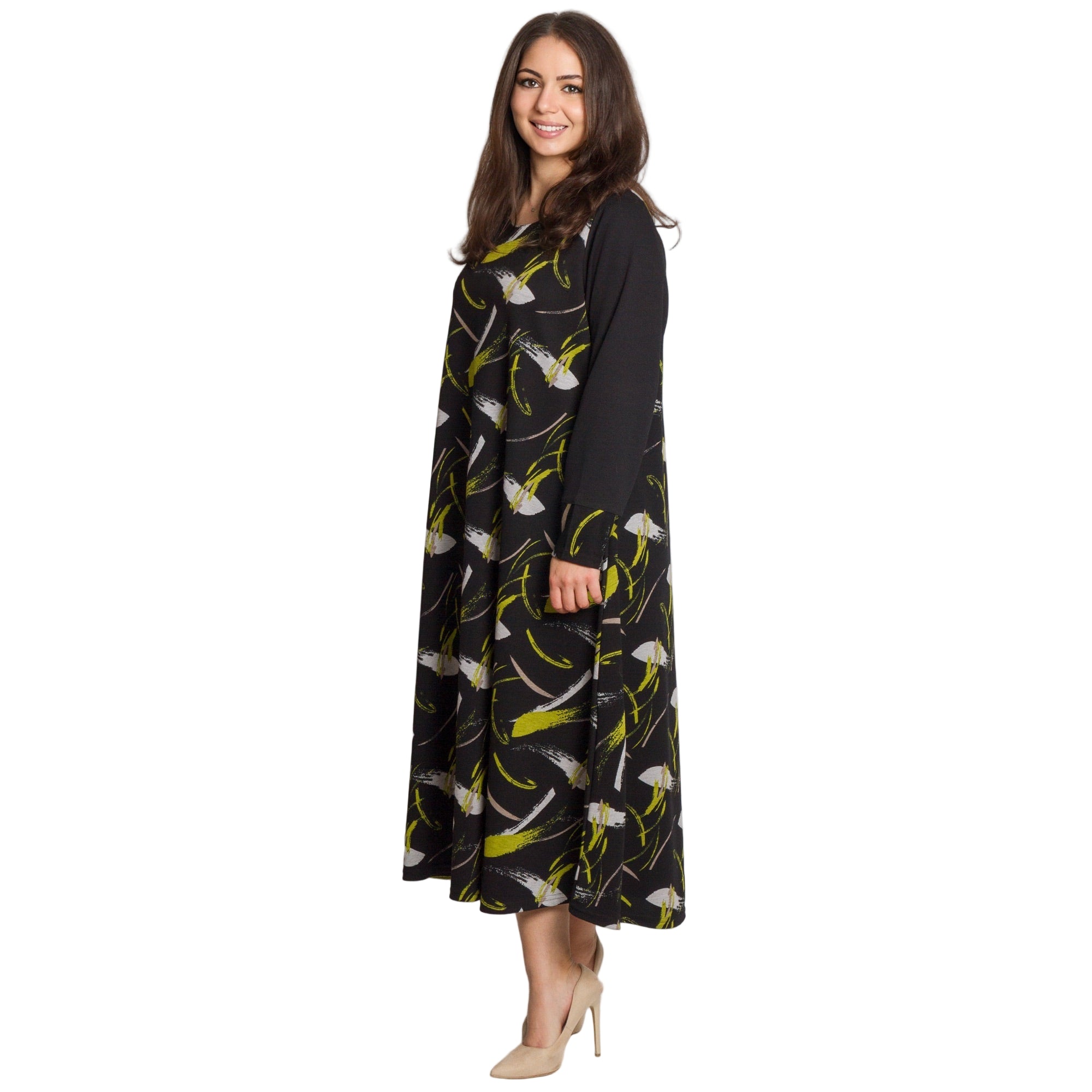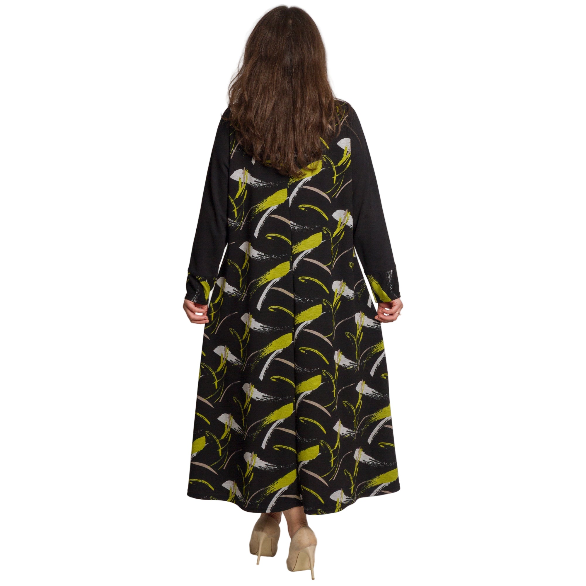 Черна разкроена рокля с дълъг ръкав в големи размери