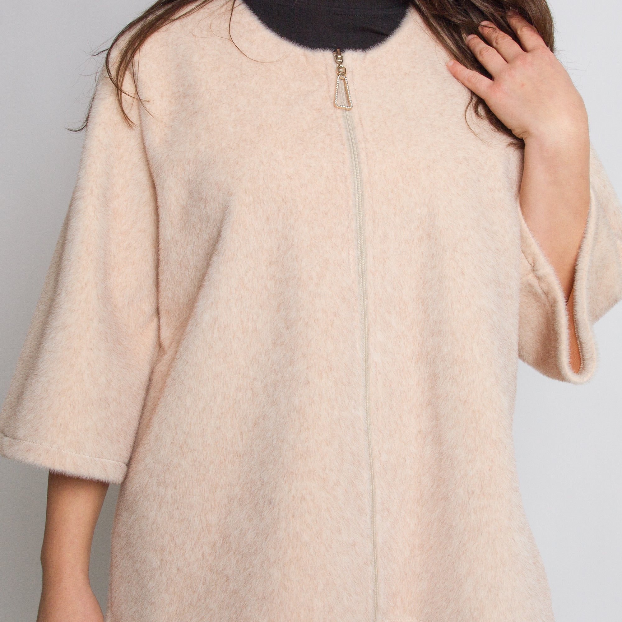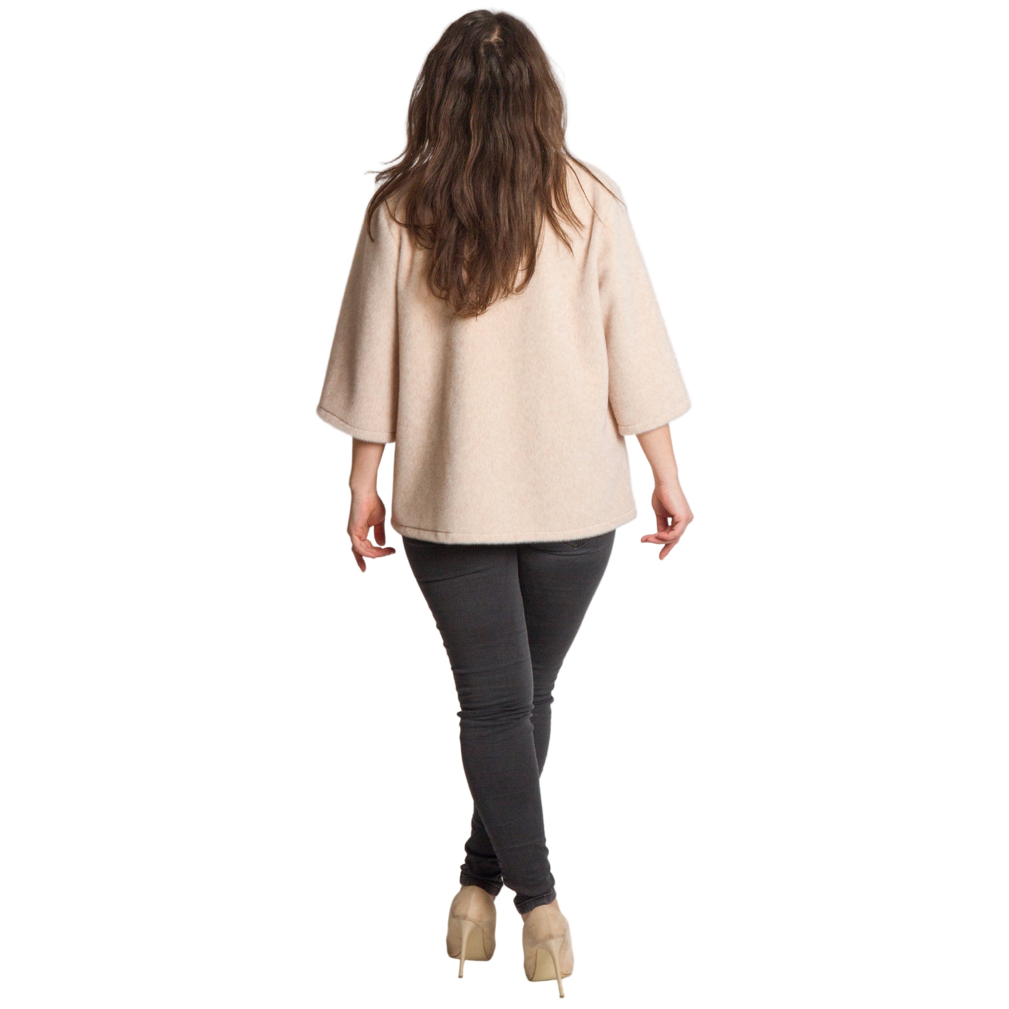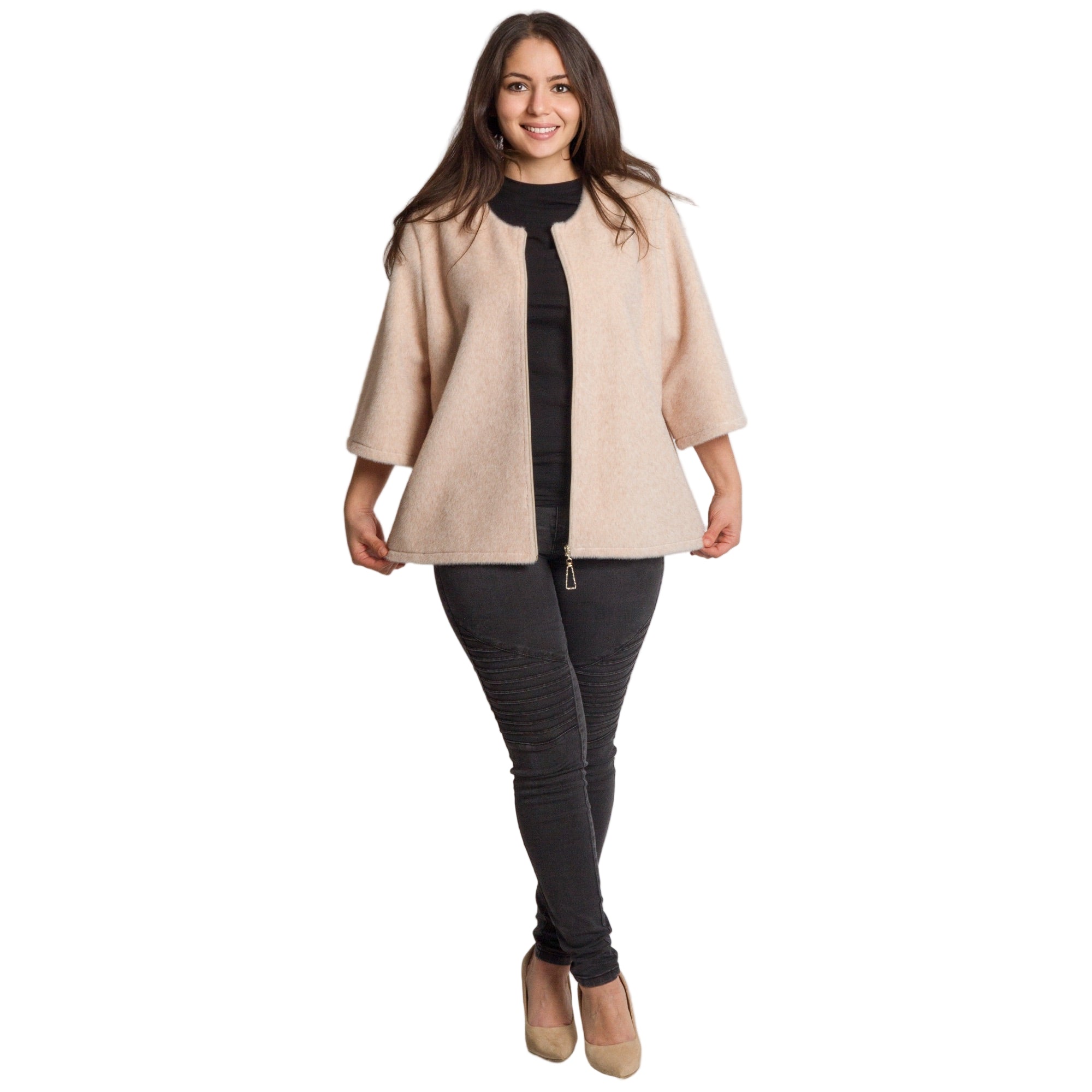 Този елегантен бежов жакет е идеален избор за пролетно есенните и зимни дни като съчетава комфорт и стил в едно. Меката полиестерна материя осигурява приятно усещане върху кожата а свободната кройка пада красиво по тялото и гарантира удобство през целия ден. Дизайнът с цип придава модерна и практична визия а 3/4 ръкавите допринасят за лекота и свобода на движение. Подходящ за ежедневни и официални поводи и за дамите които търсят комфорт и стил в големи размери.