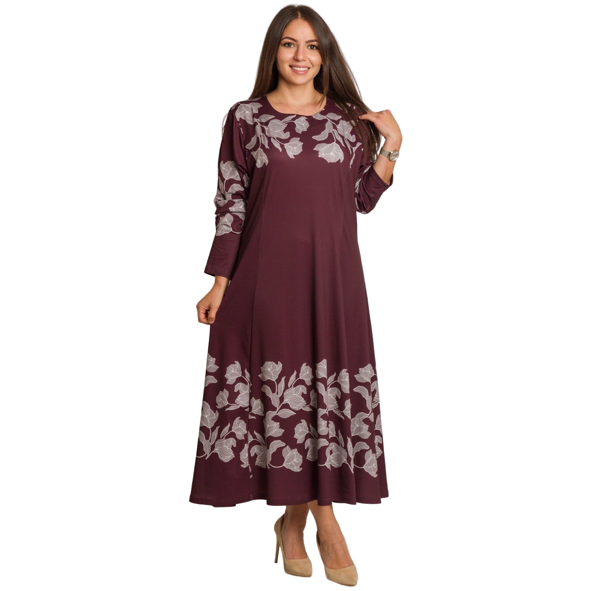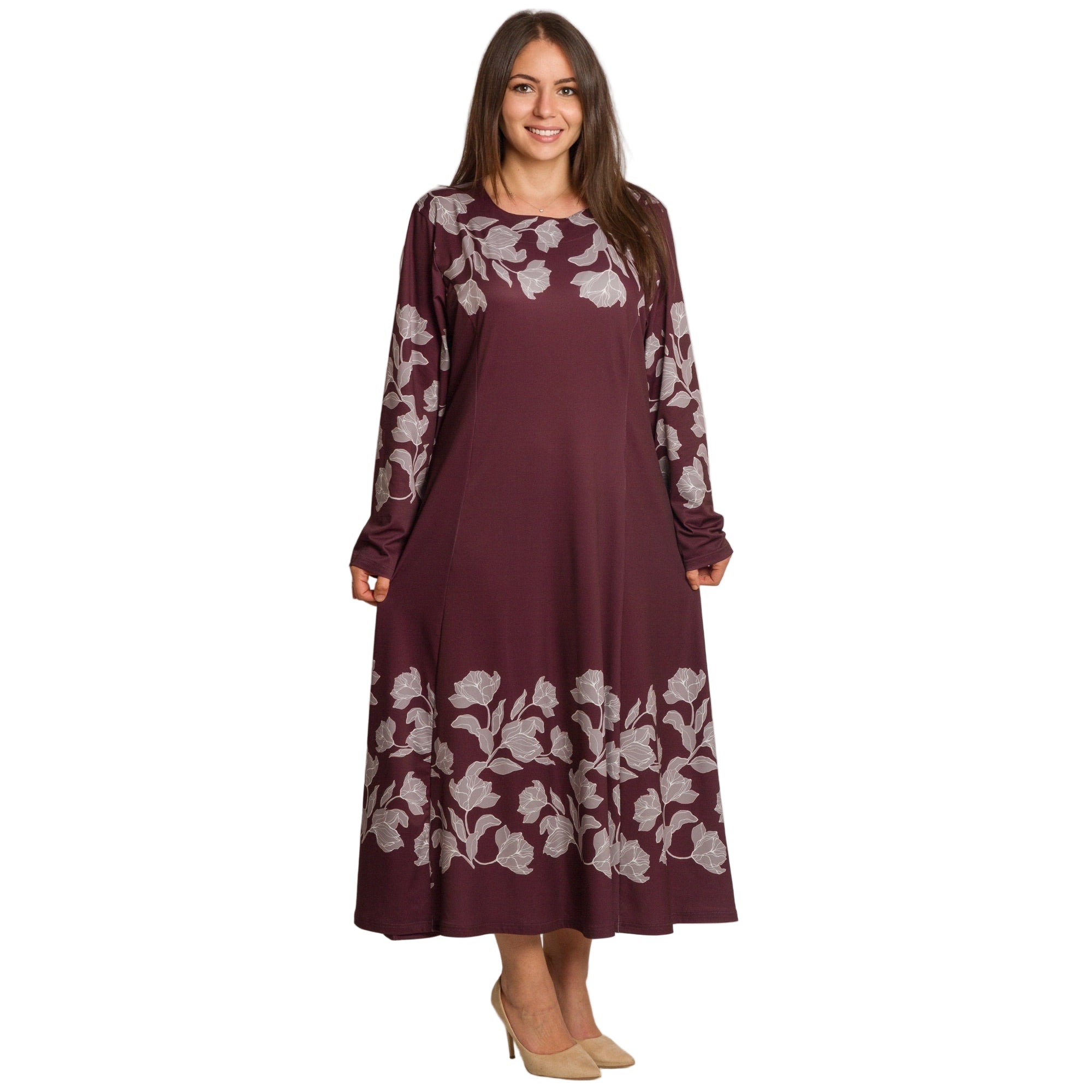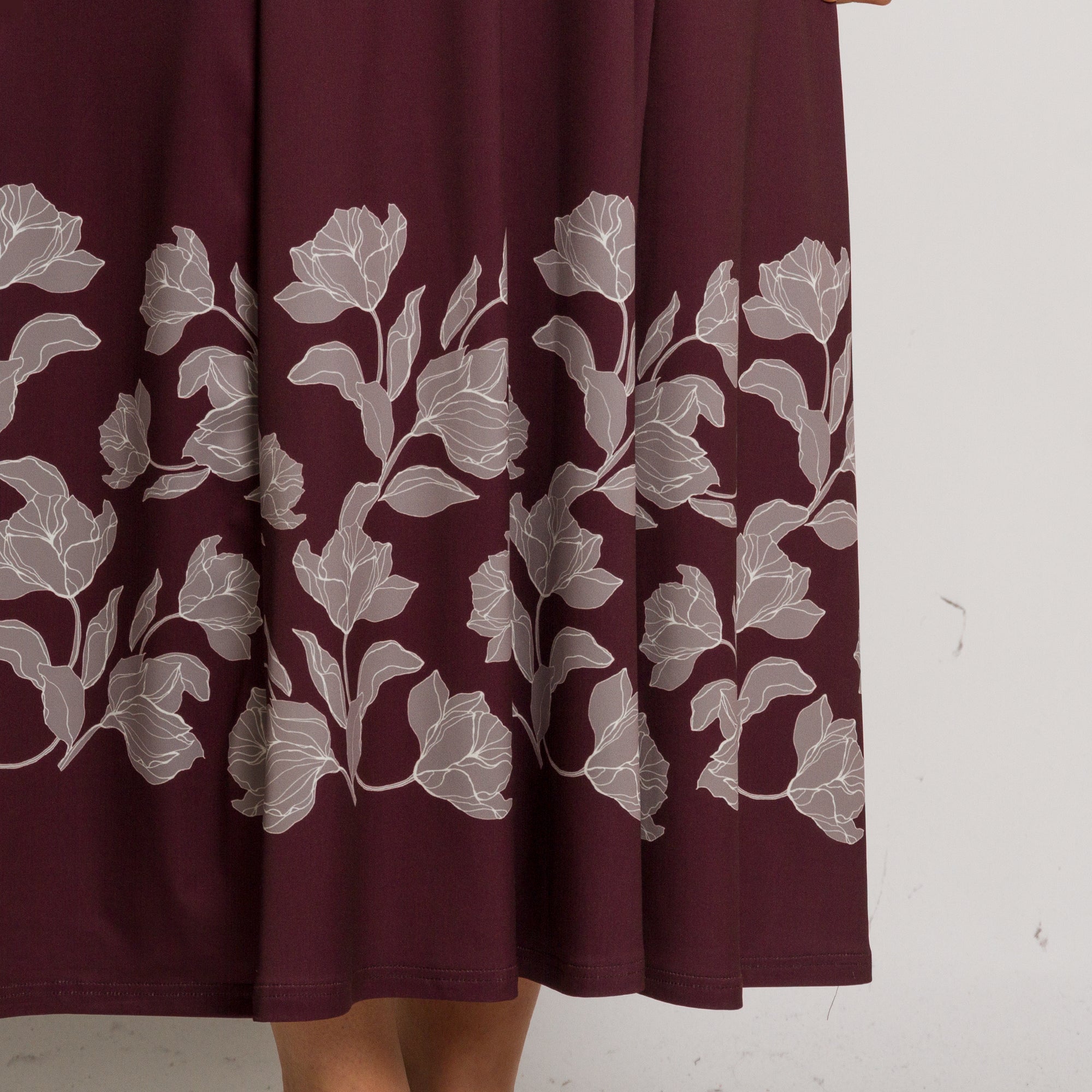 Бордо разкроена рокля с флорален бордюр в големи размери