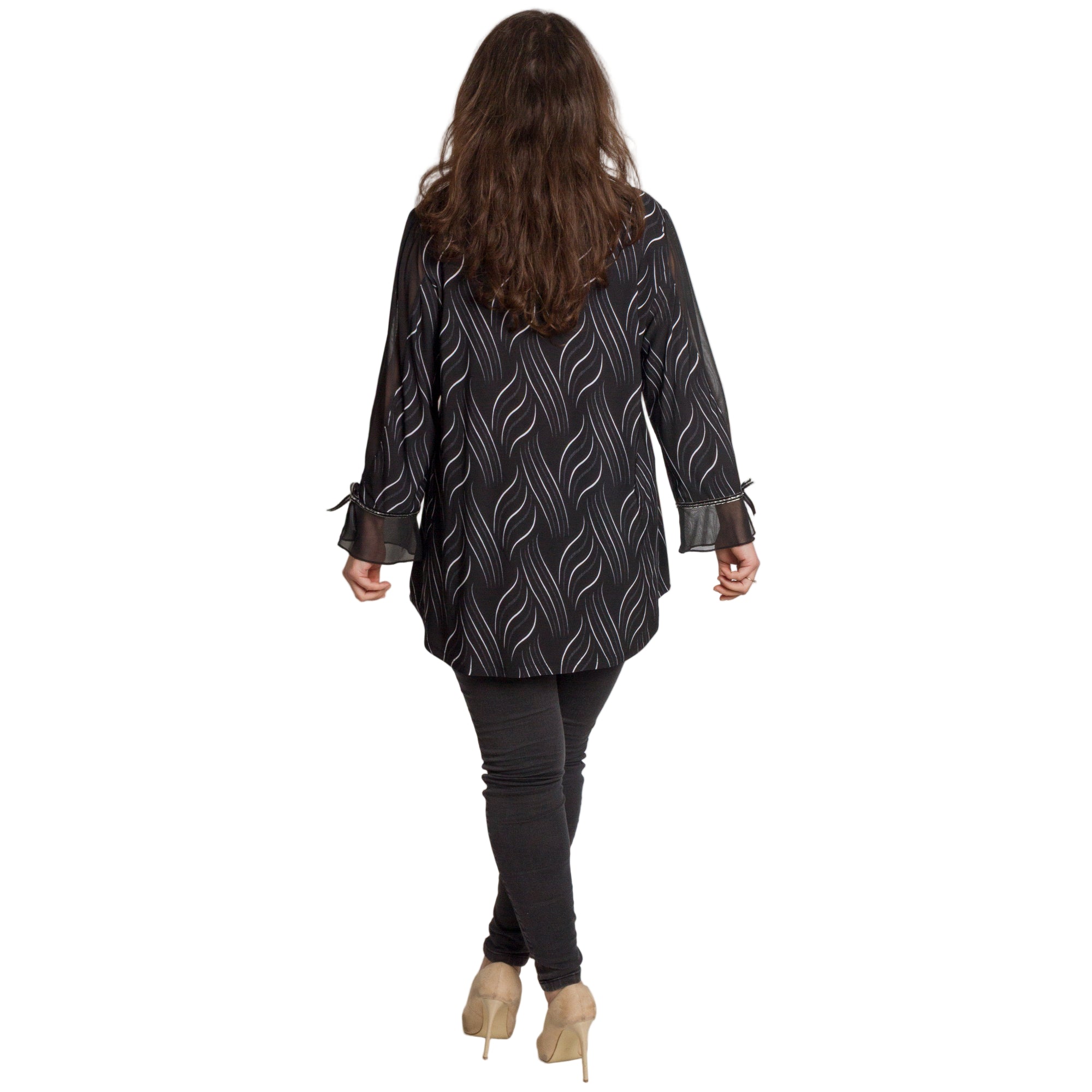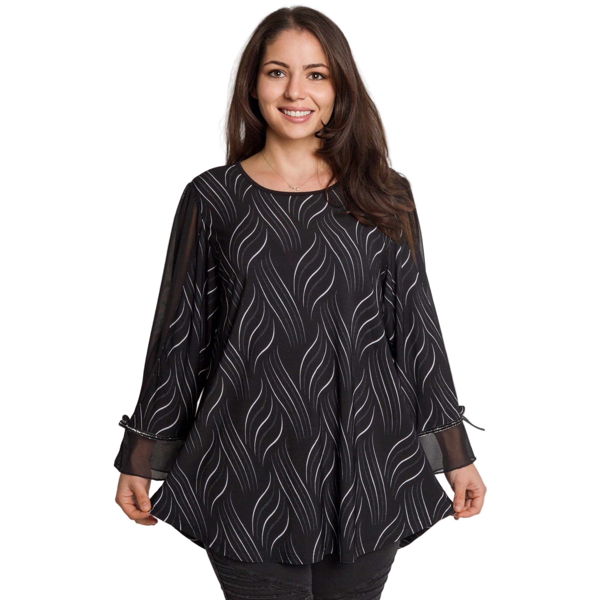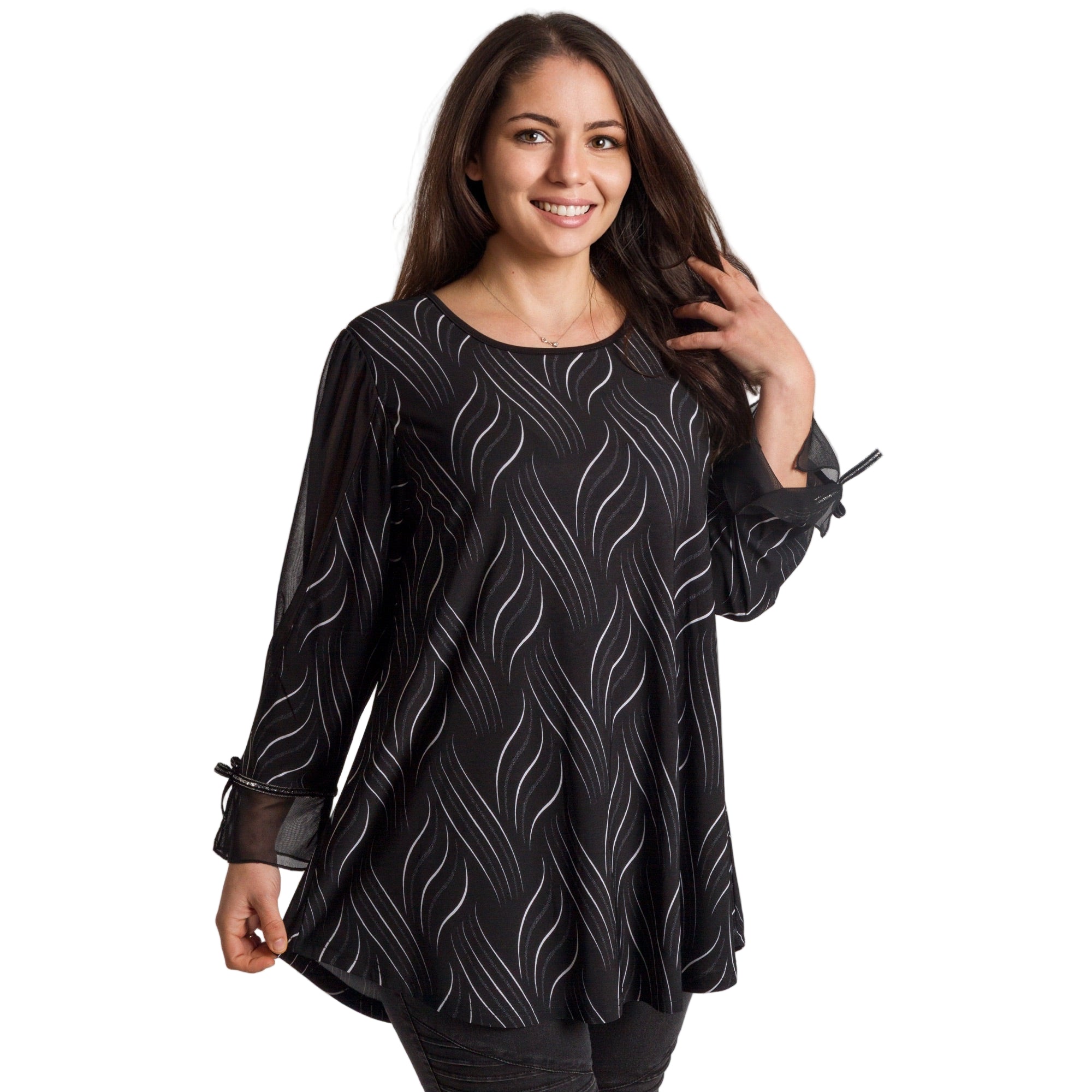 Елегантна черна туника с тюлени ръкави и разкроена кройка