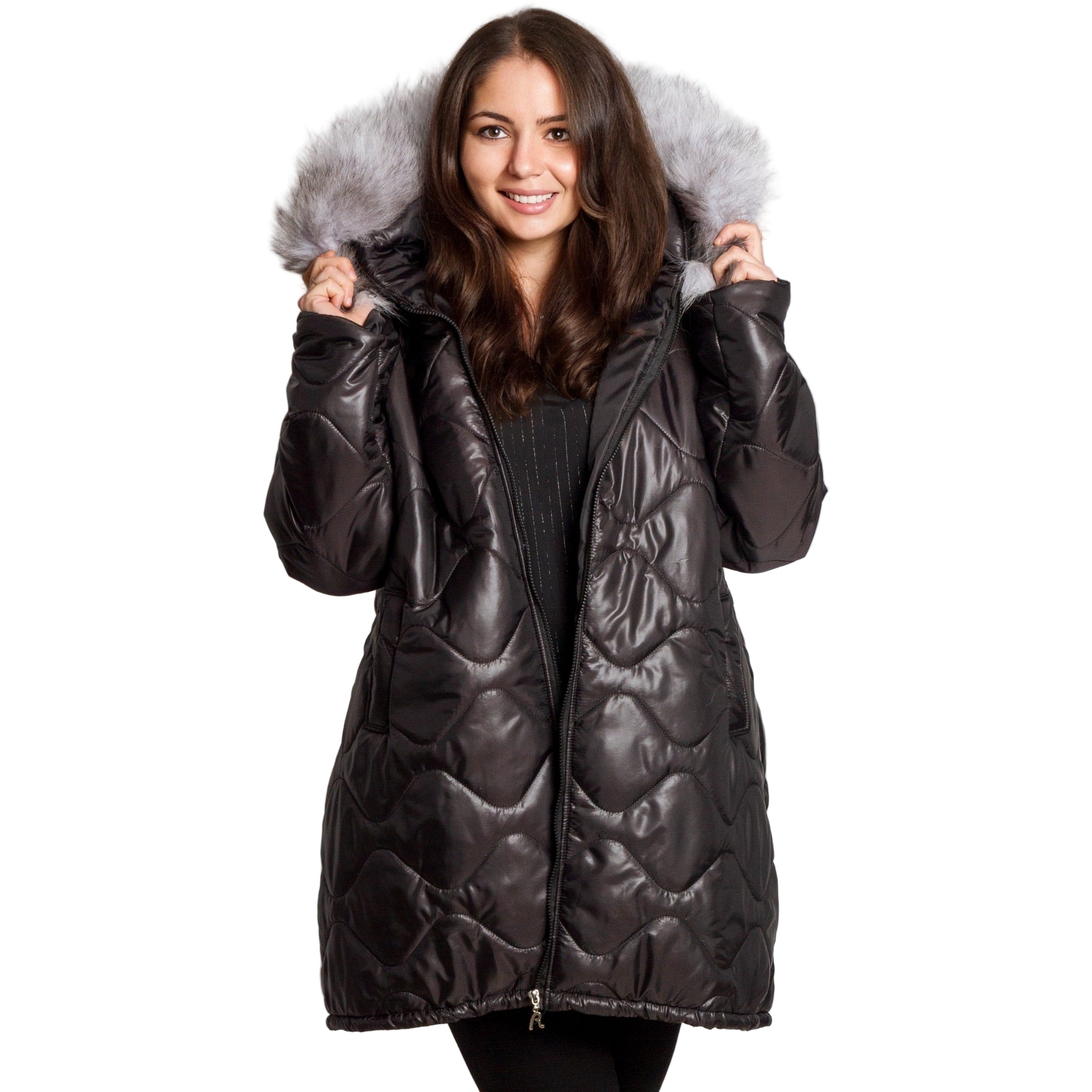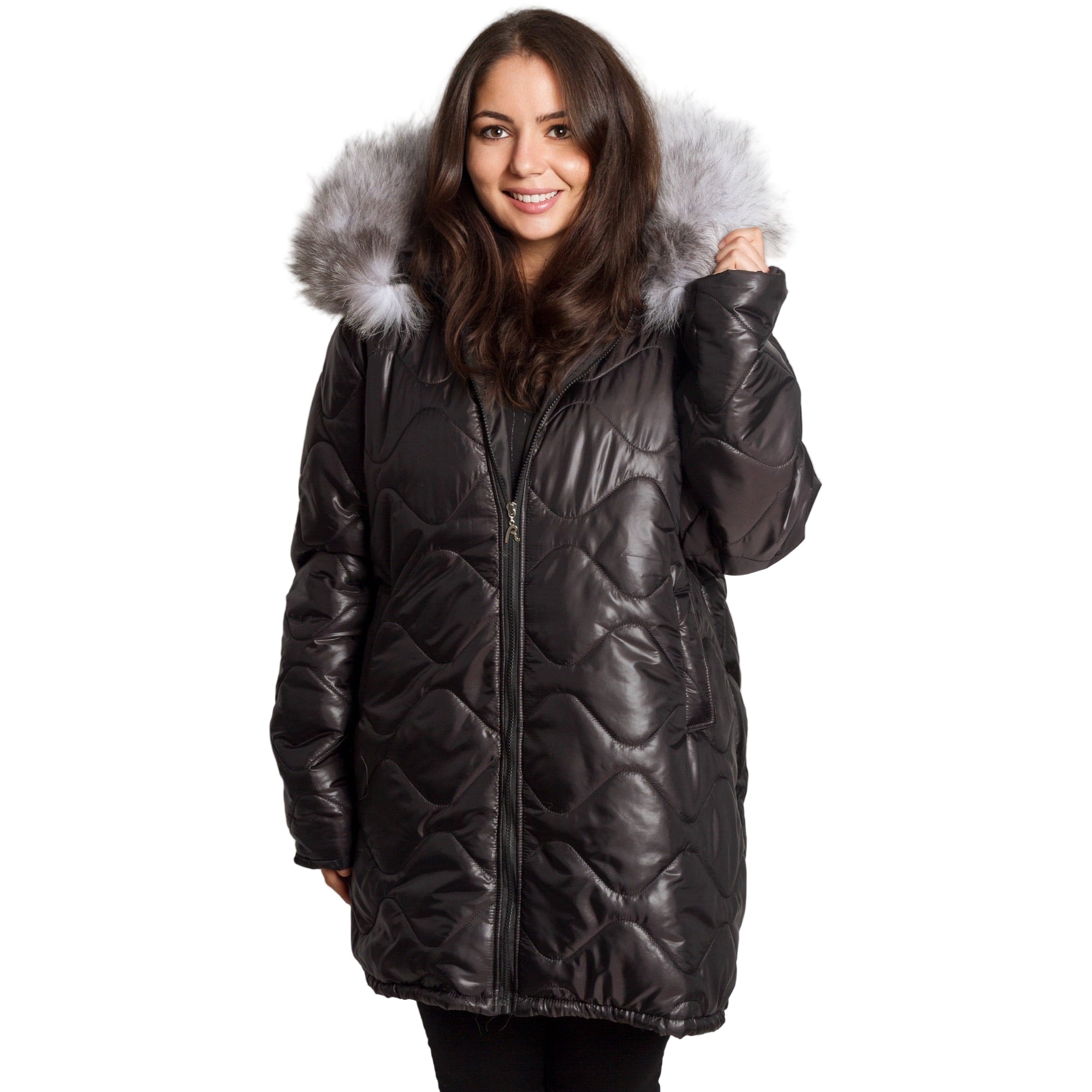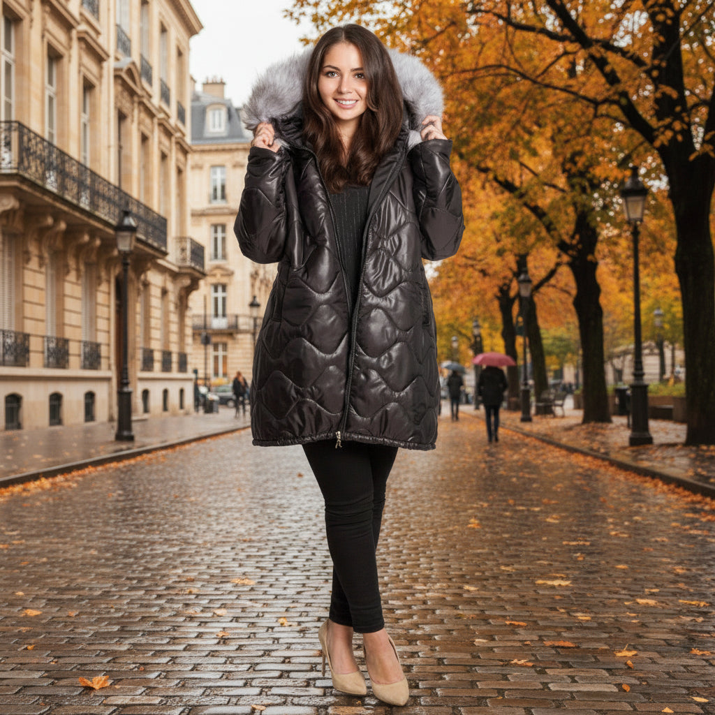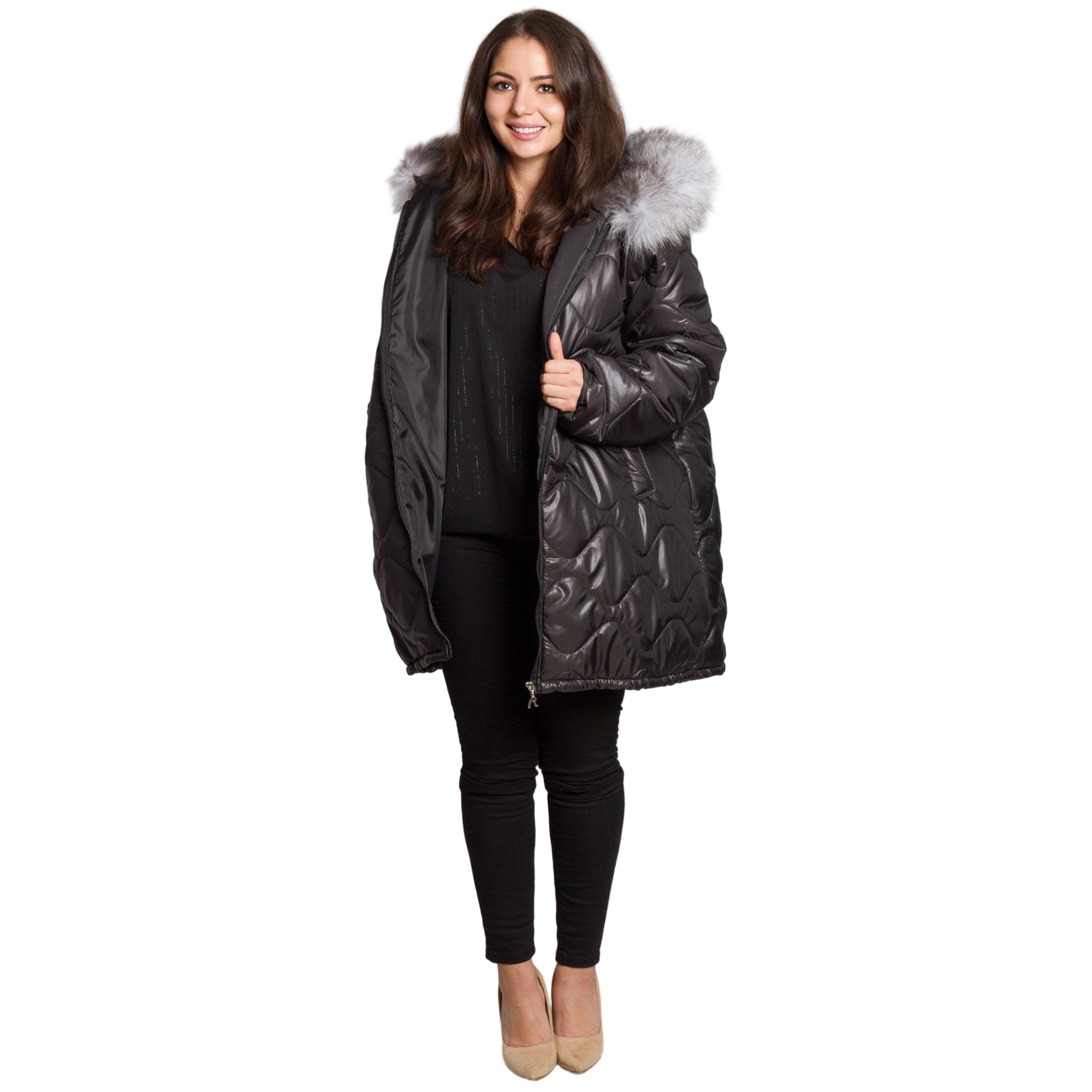Топло и стилно зимно яке в черен цвят, създадено за комфорт и елегантност в големи размери. Моделът е с разкроена линия, която осигурява повече свобода и прикрива ханша и корема. Качулката е обемна с ефектна пухкава гарнитура, която придава луксозен вид и допълнителна защита от студения вятър. Материята е полиестерна, лека, ветроустойчива и подходяща за ежедневни и официални поводи през есенно-зимния сезон. Закопчаването е с цип, а джобовете са удобни и практични за студените дни.