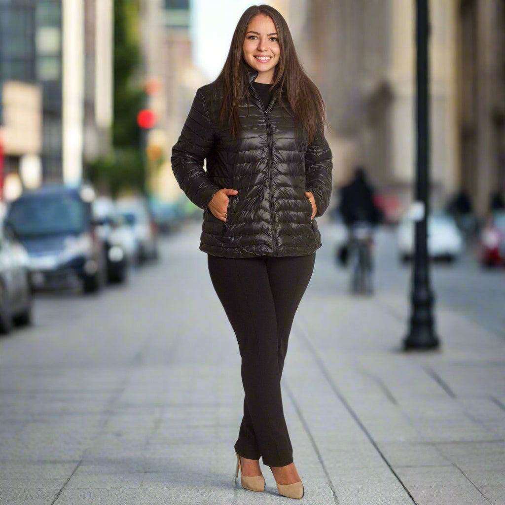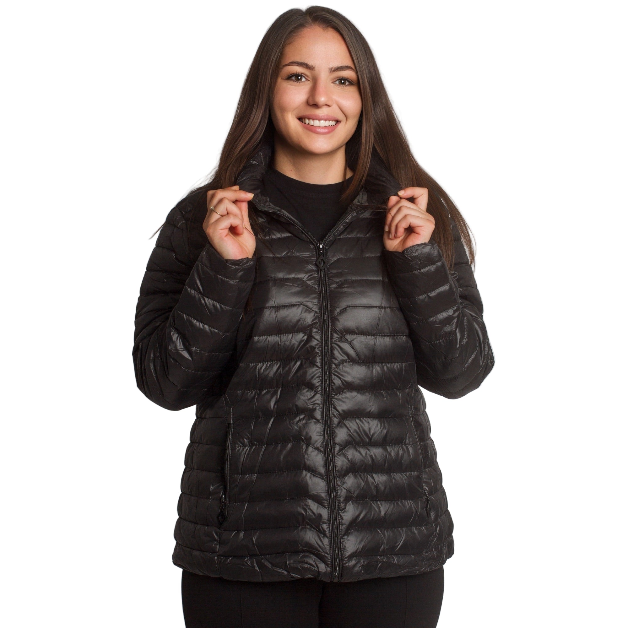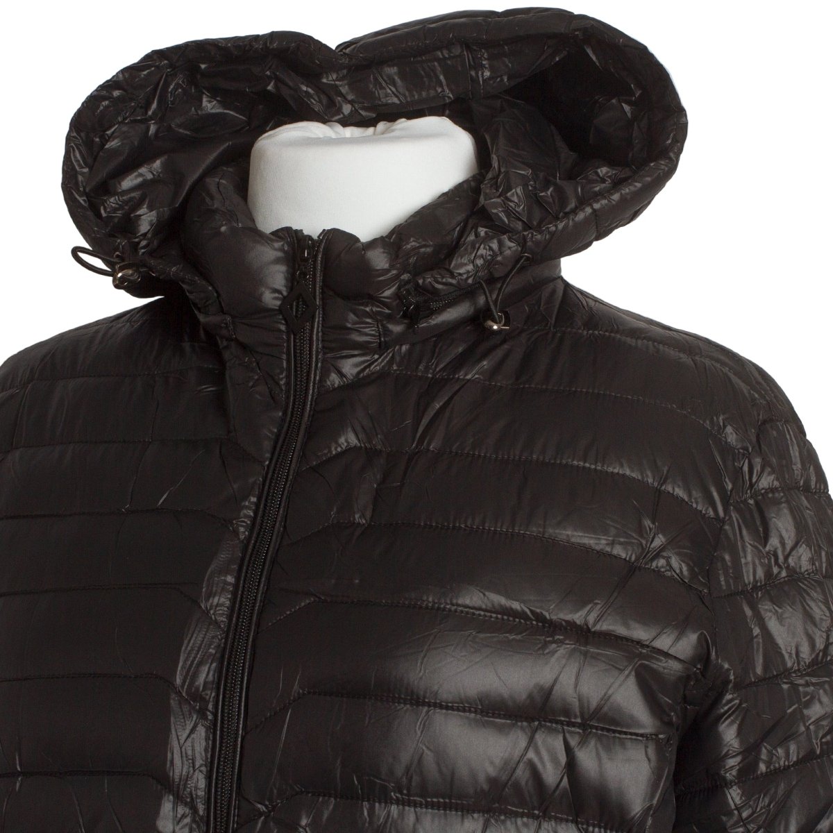 Топло и леко яке в черен цвят, изработено от висококачествен полиестер. Моделът е с права кройка, подходяща за ежедневието и официални поводи. Има удобна качулка със стягащи връзки и практични джобове с цип. Закопчаването е с централен цип, което осигурява комфорт и защита през студените есенно-зимни дни.