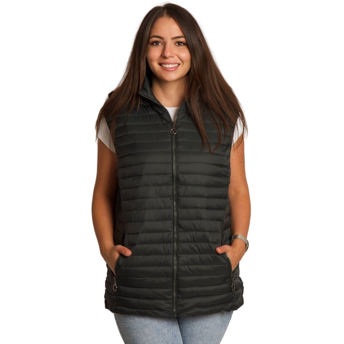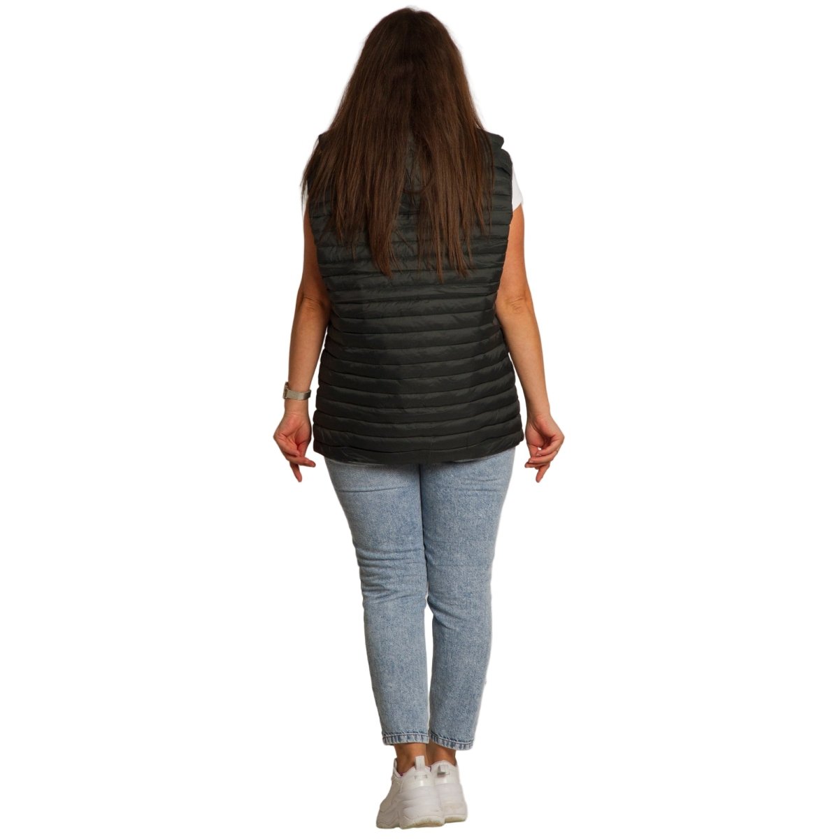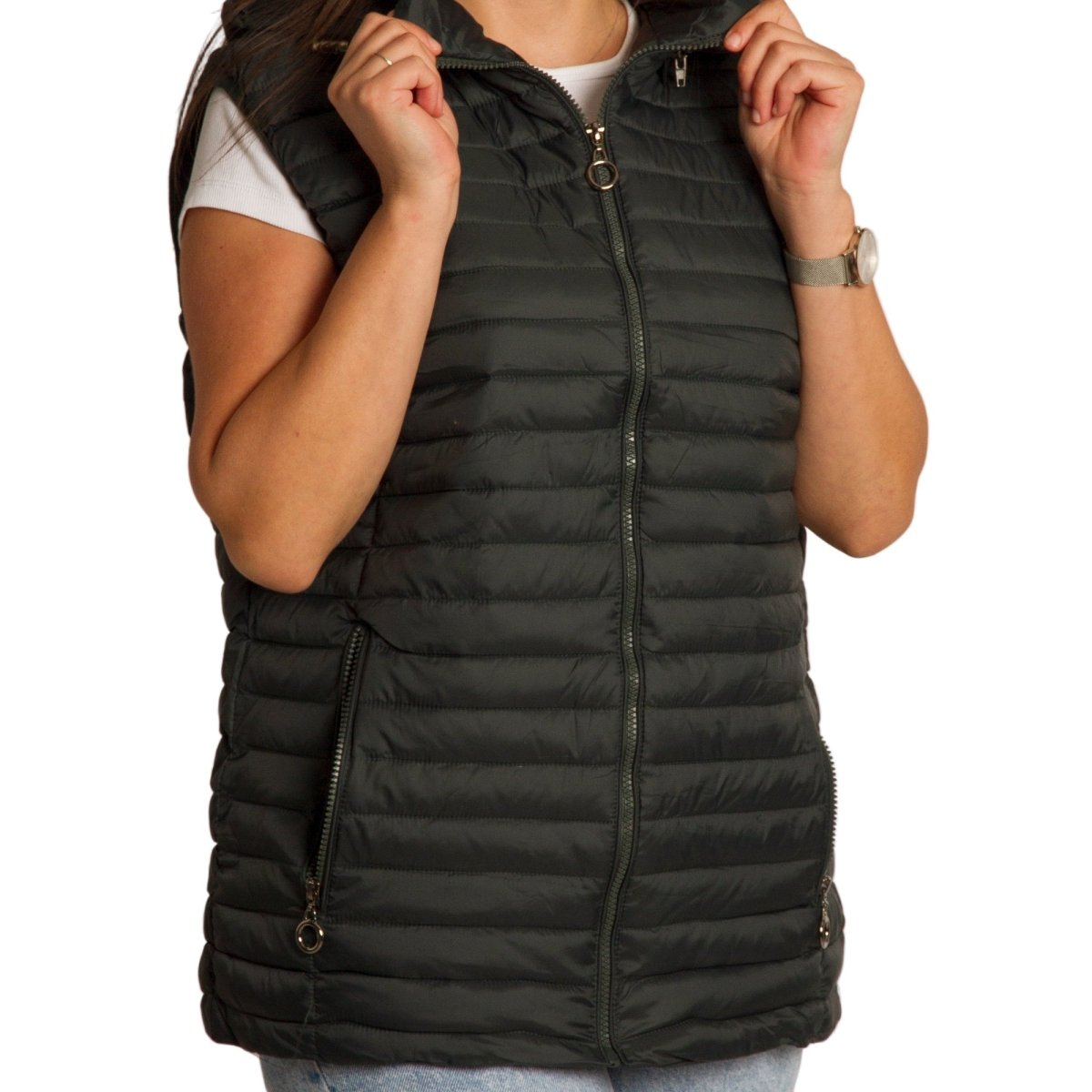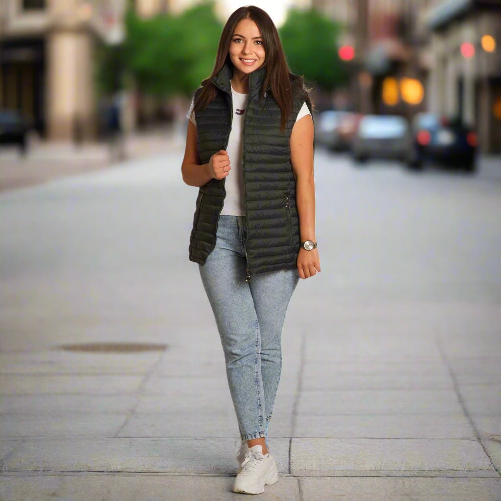 Удобен и стилен дамски елек в зелен цвят, подходящ за есенно-зимния сезон. Моделът е с права кройка, която гарантира комфорт и свобода на движенията. Изработен е от 100% полиестер, което го прави лек, практичен и лесен за поддръжка. Закопчава се с цип по цялата дължина, а страничните джобове също са снабдени с ципове за повече сигурност и удобство. Благодарение на изчистения си дизайн, елекът може да се носи както в ежедневието, така и при по-елегантни визии.