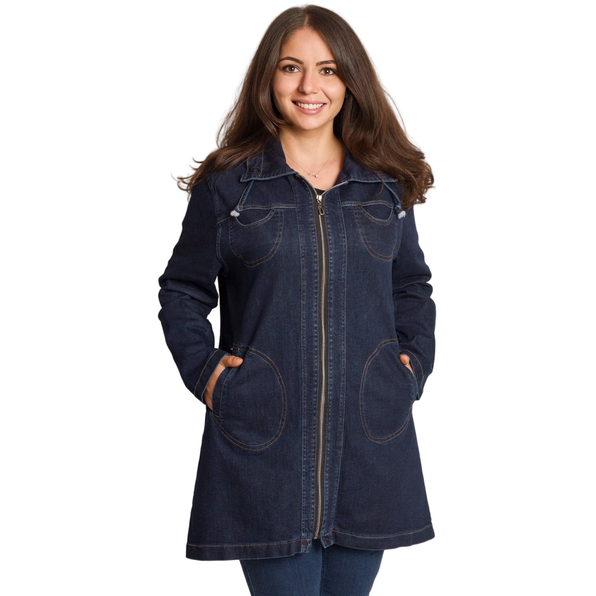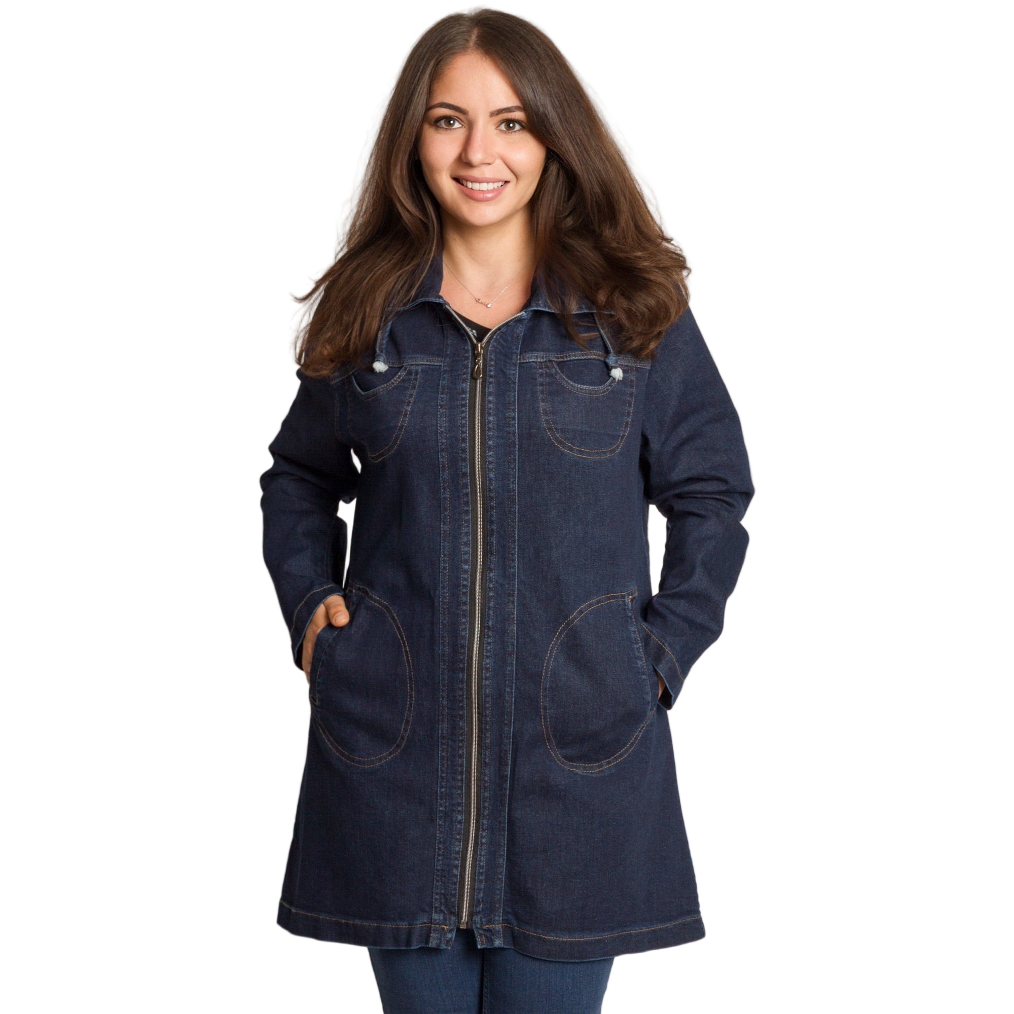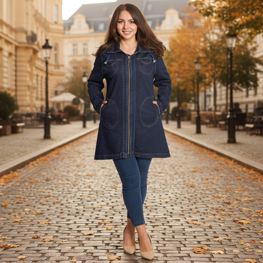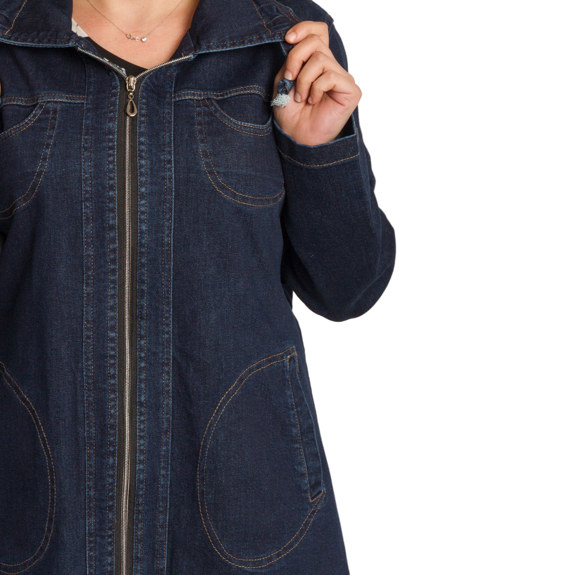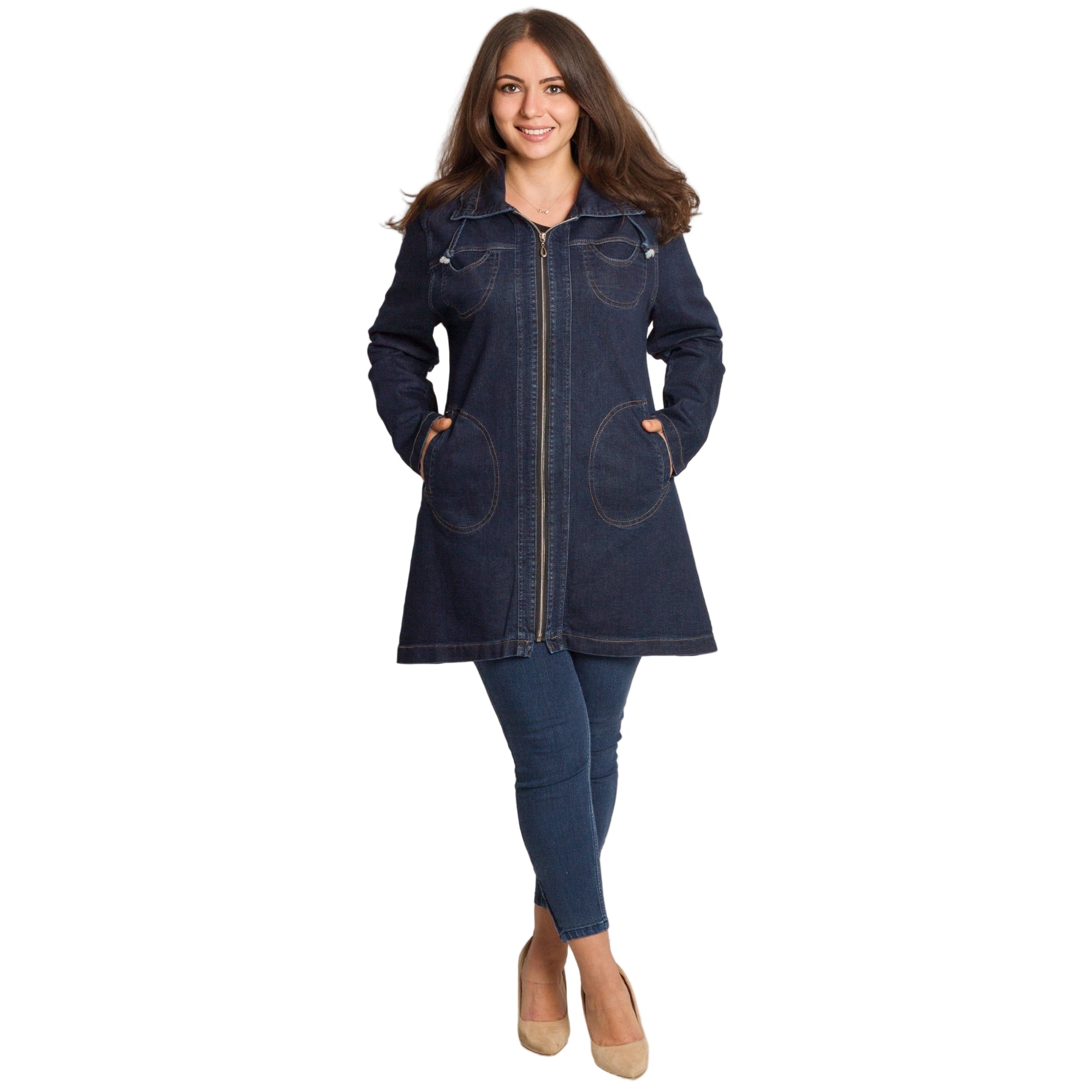 Това елегантно дамско дънково яке в макси размери от Maxi Market съчетава стил, комфорт и практичност в един универсален модел. Изработено от 98% памук и 2% еластан, то предлага приятна еластичност и мекота, осигурявайки удобство при всяко движение. Моделът е с права кройка, цип по цялата дължина и големи предни джобове, които придават едновременно модерен и функционален вид. Тъмносиният деним с контрастни шевове подчертава класическия характер на якето, което лесно се съчетава както с панталони, така и с рокли. Подходящо за есен-зима, но благодарение на дишащата памучна материя може да се носи и през по-хладни пролетни дни. Идеално както за ежедневието, така и за по-официални поводи.