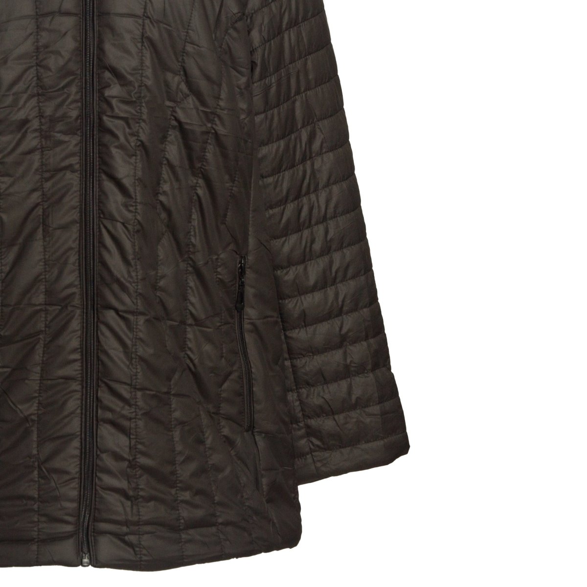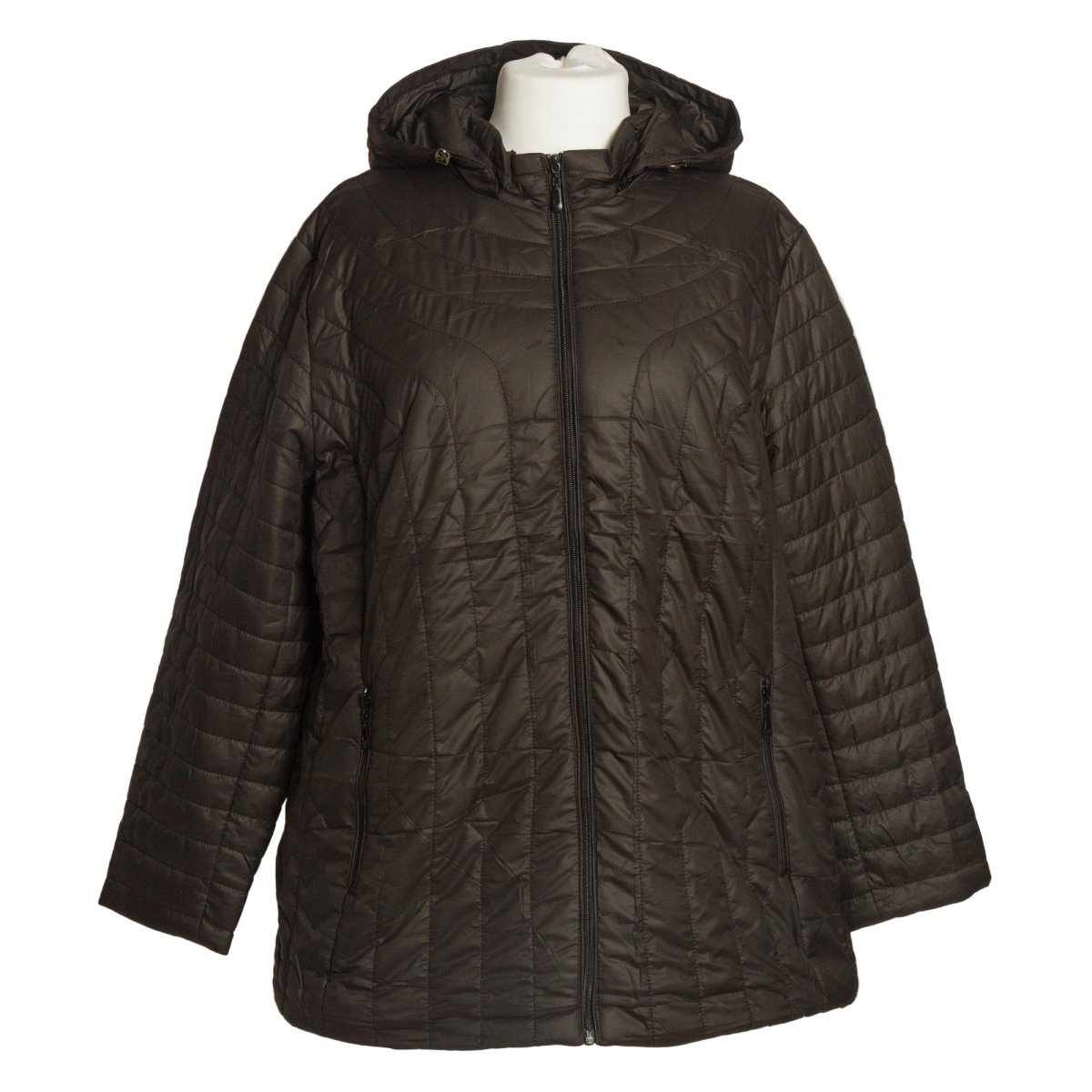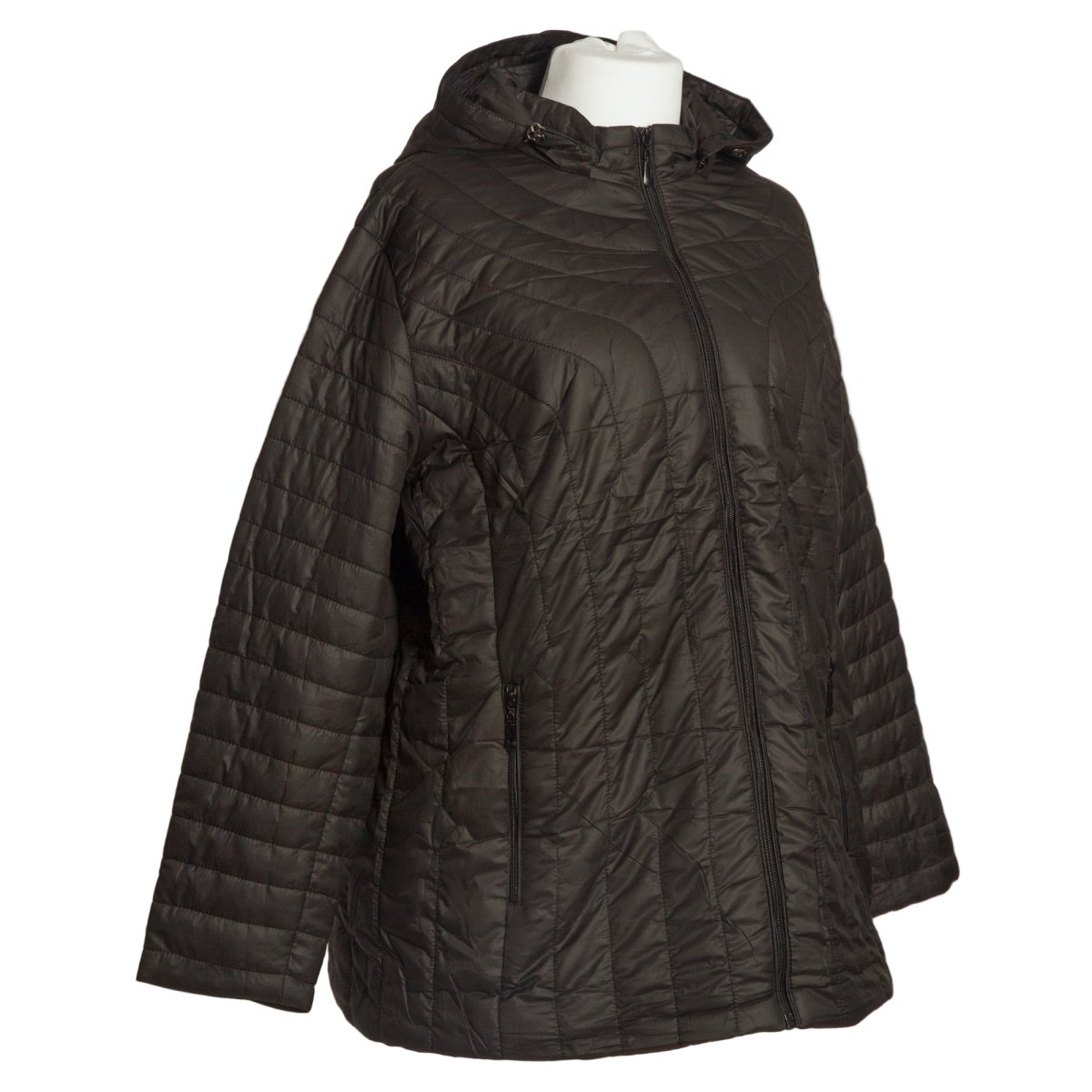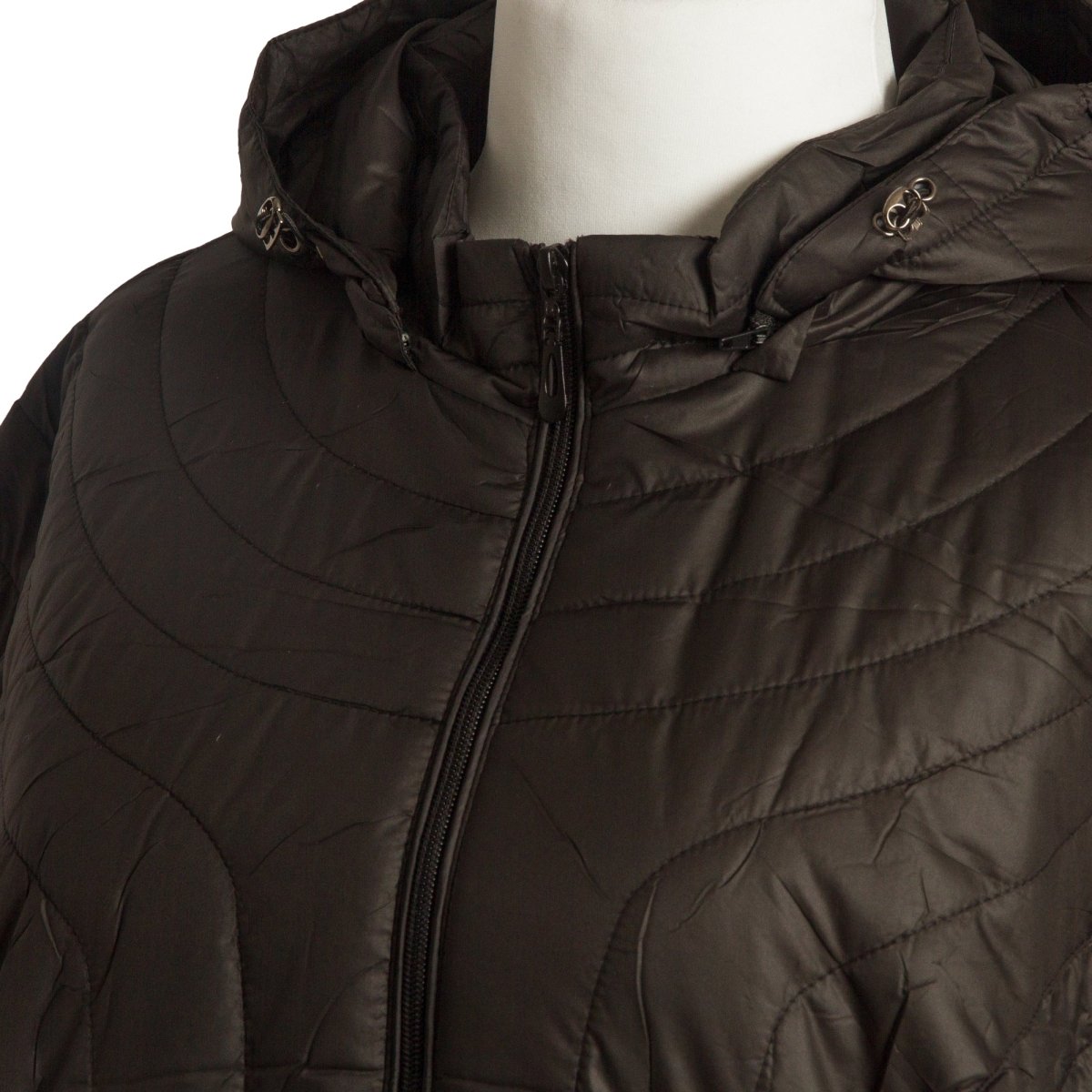 Класическо дамско яке в големи размери, създадено за комфорт и защита през есенно-зимния сезон. Изработено от 100% полиестер, то е леко, топло и устойчиво на вятър. Моделът е с права кройка, която осигурява удобство и свобода на движенията, а декоративното прошиване добавя стилен акцент. Якето е снабдено със сваляща се качулка за допълнителна практичност и странични джобове с цип, които са удобни и сигурни за съхранение на вещи. Закопчава се с цип по цялата дължина за лесно обличане. Черният цвят го прави универсално допълнение към всеки гардероб – подходящо както за ежедневие, така и за по-елегантни поводи.