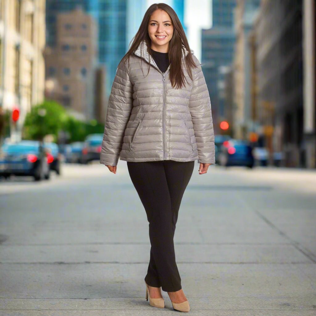 Стилно и практично двулицево яке, което комбинира изчистена визия и ефектен десен. От едната страна е в елегантен светлосив цвят, а от другата с модерен принт. Моделът е изработен от висококачествен полиестер, лек и удобен за носене, осигуряващ топлина през есенно-зимния сезон. Якето е с практична качулка, права кройка и два странични джоба с цип. Благодарение на двулицевия дизайн получавате две визии в едно – за ежедневието и по-официални поводи.