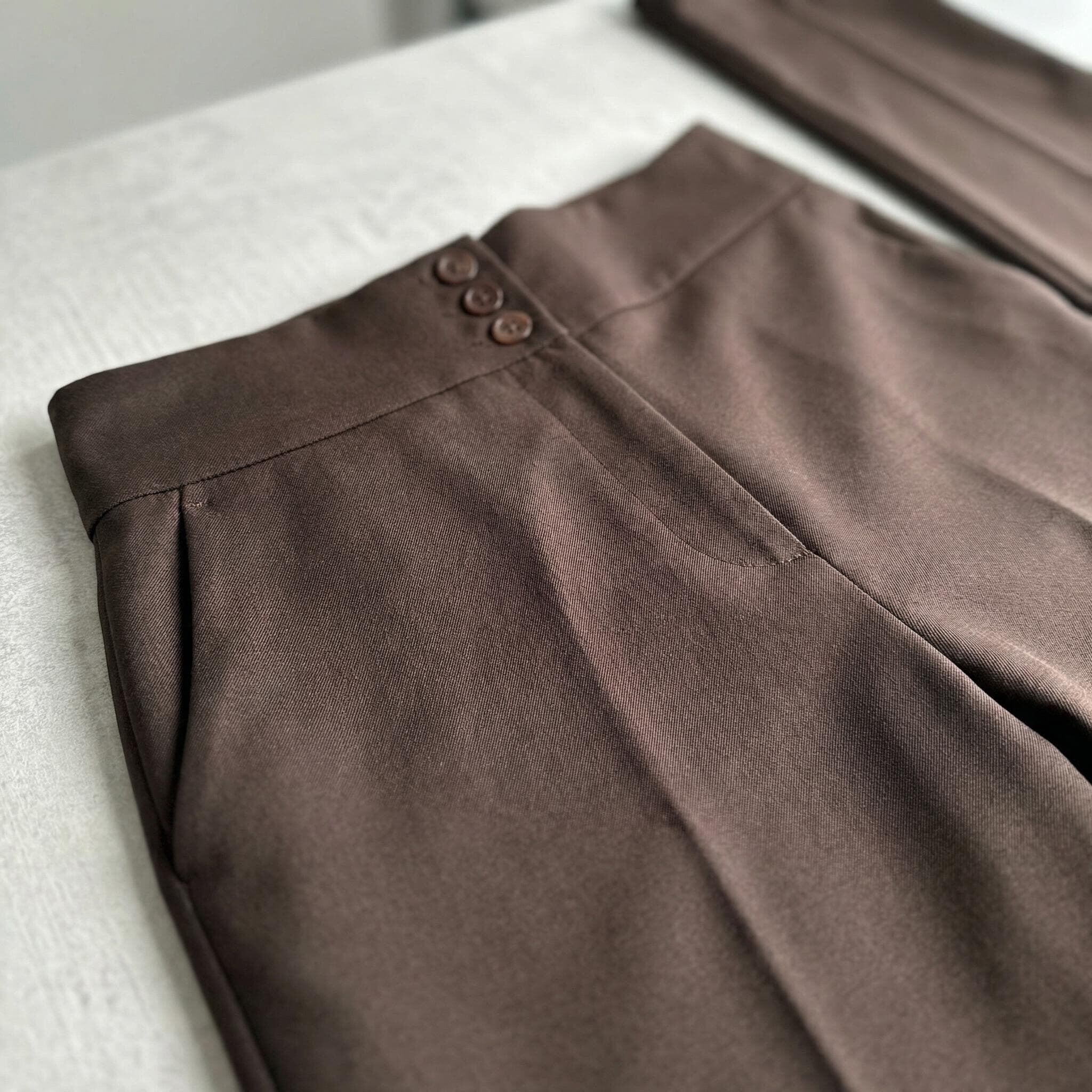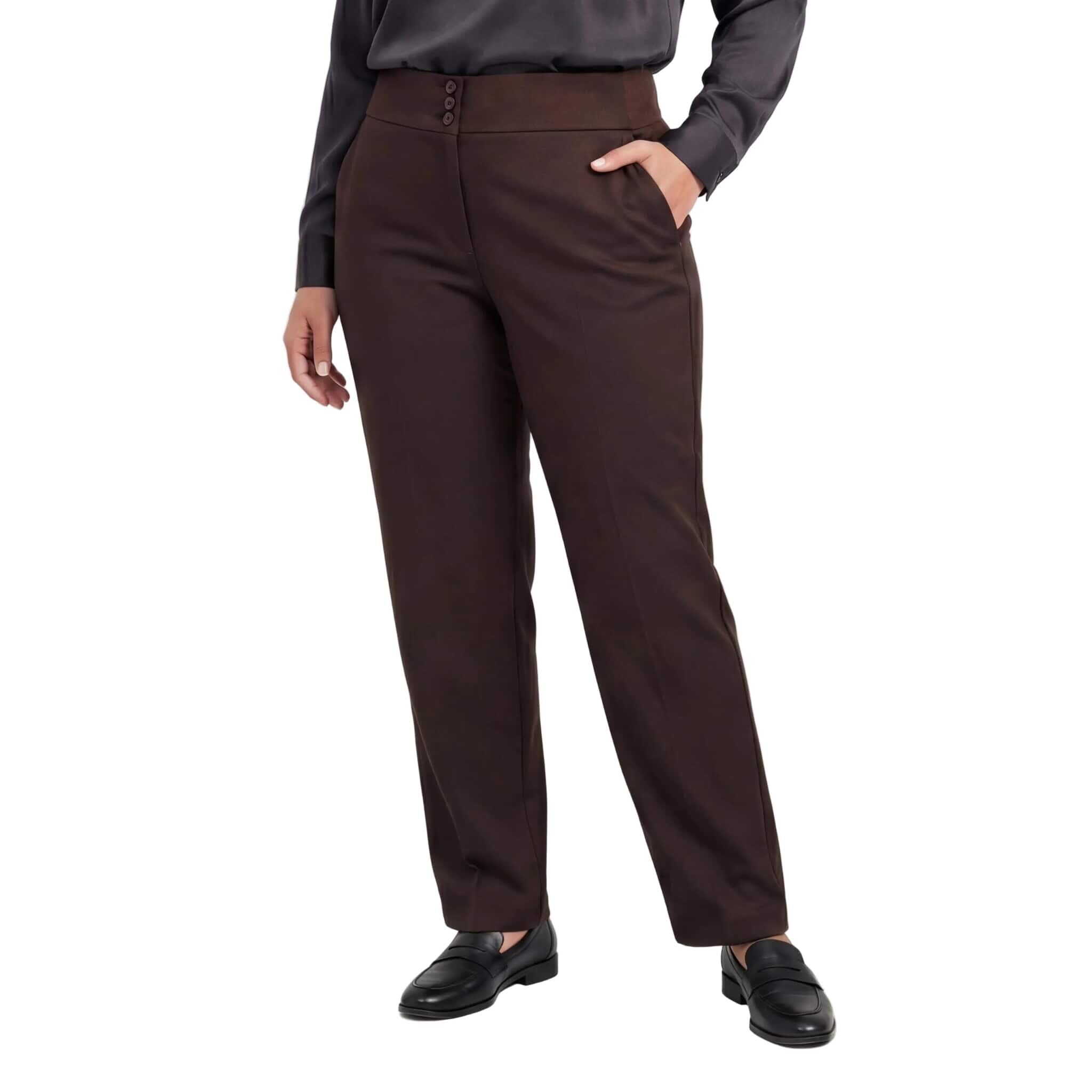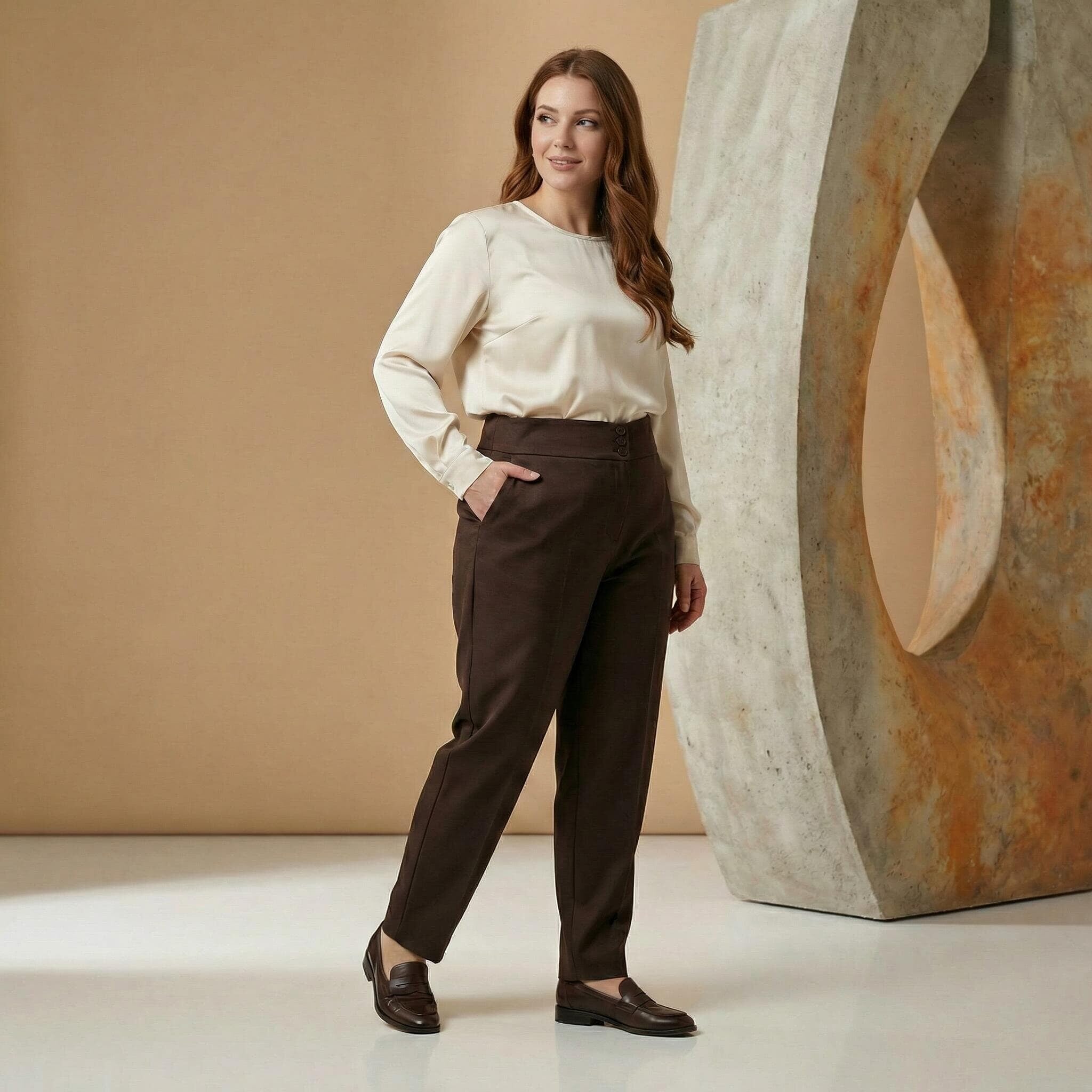 Елегантен кафяв панталон с висока талия и копчета големи размери