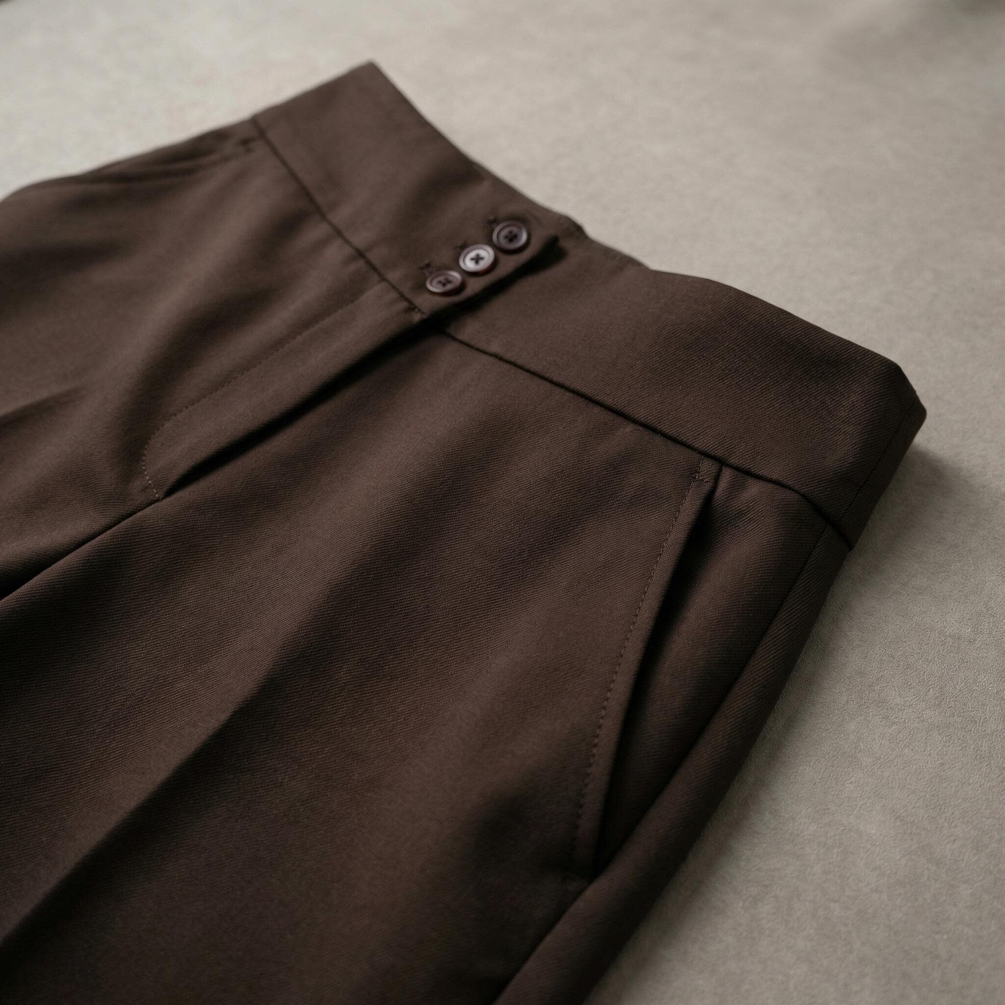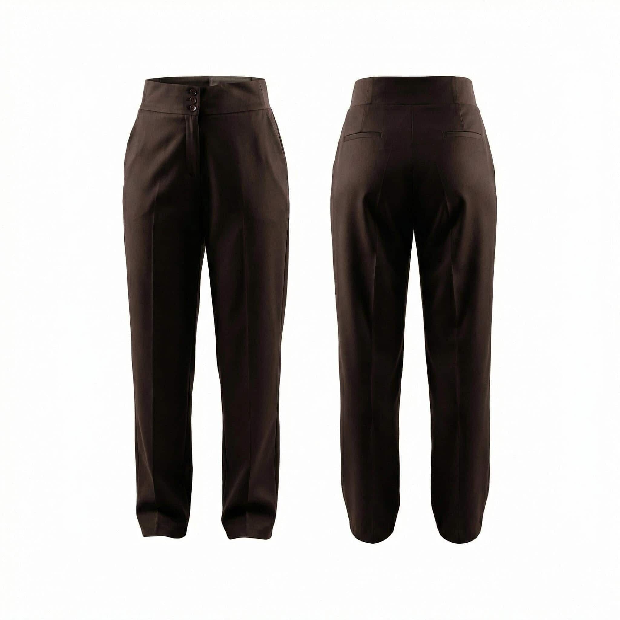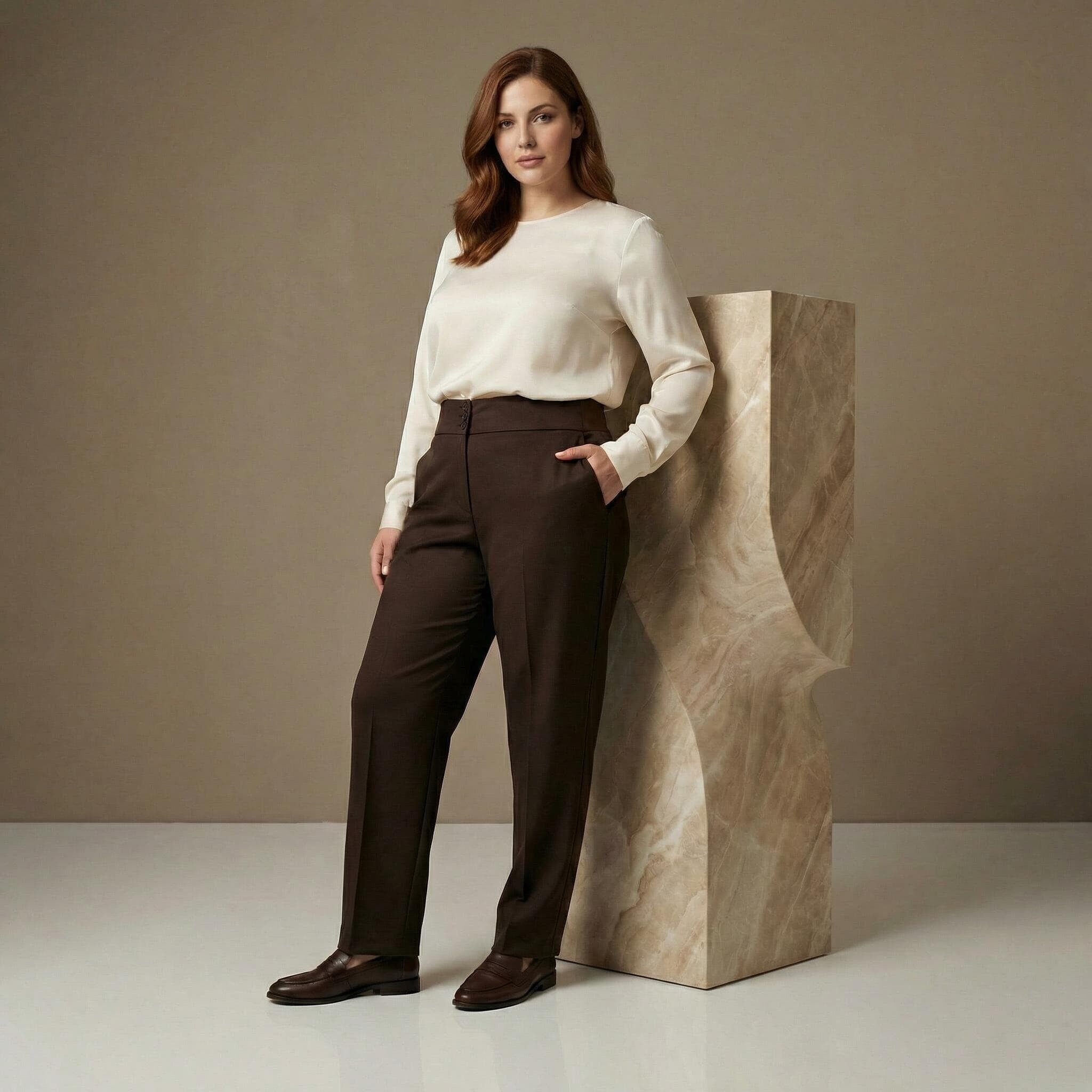 Елегантен кафяв панталон с висока талия и копчета големи размери