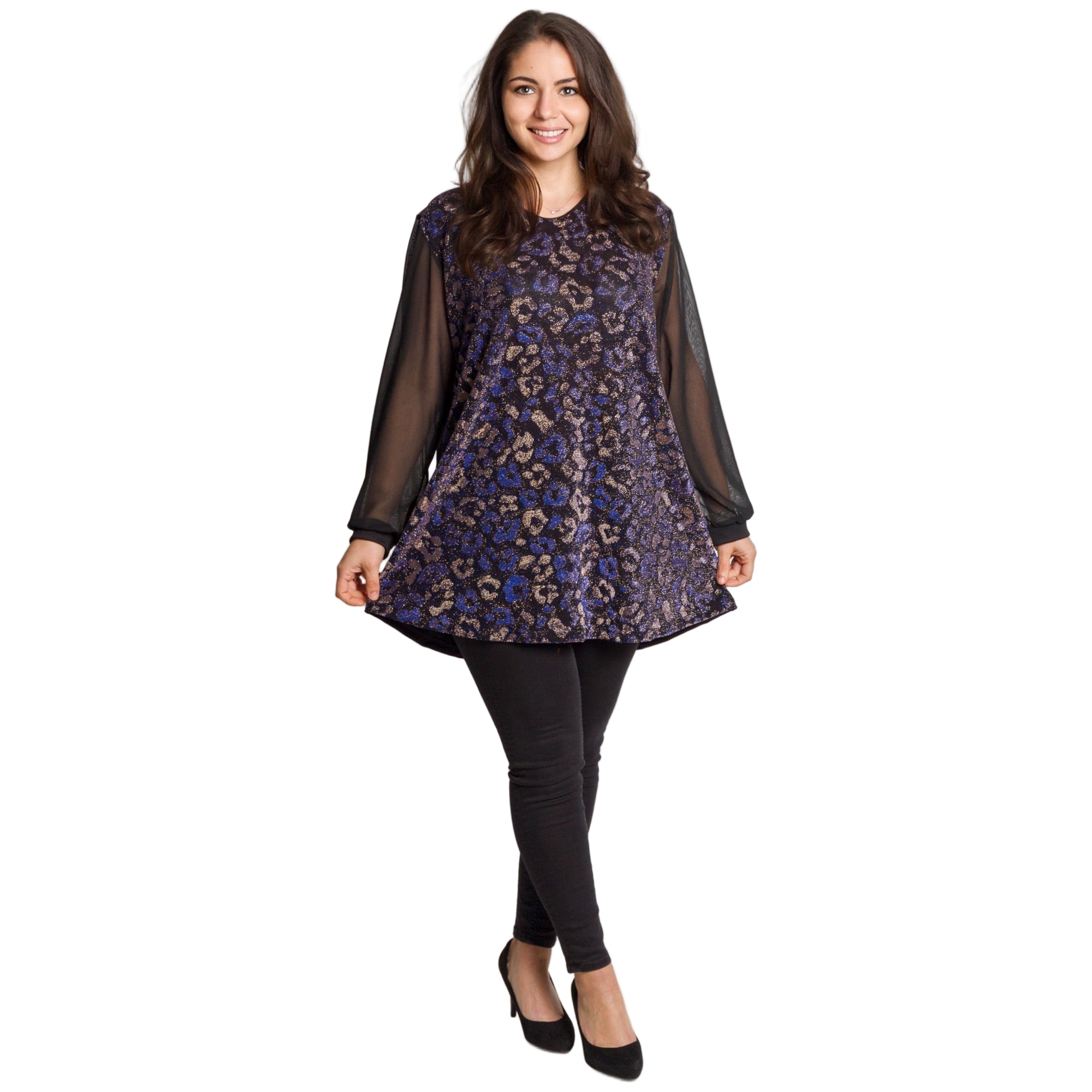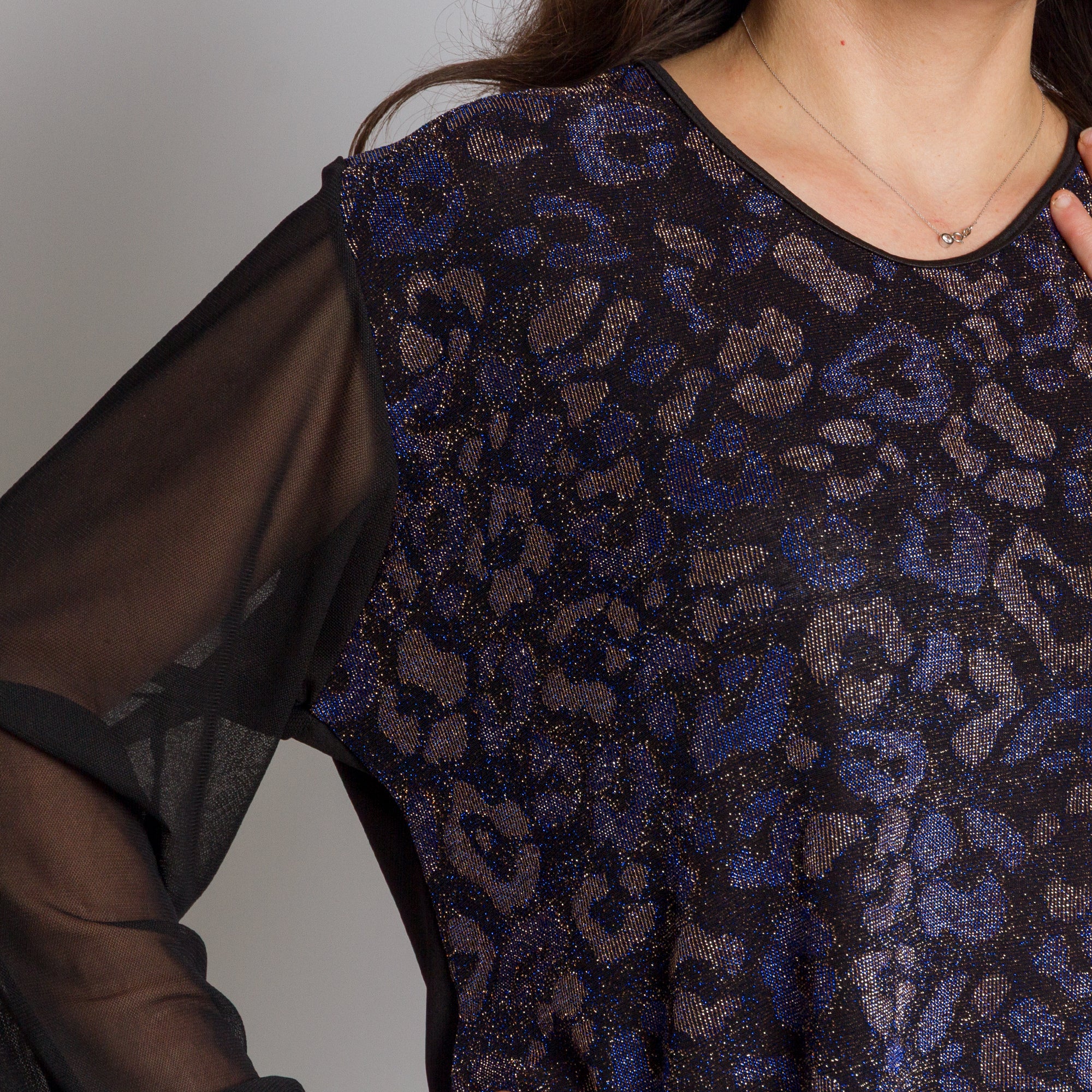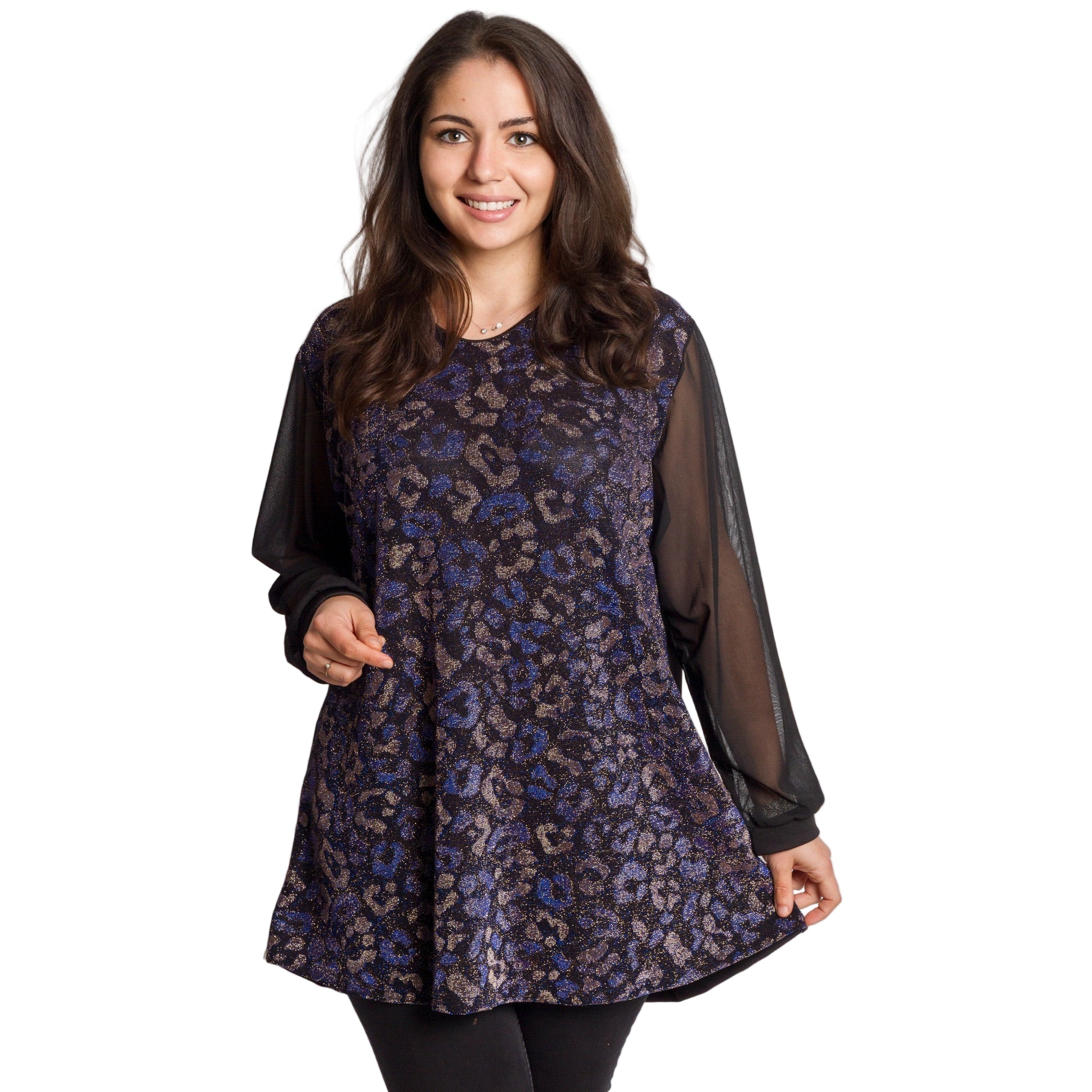 Тази елегантна туника в макси размери комбинира комфорт и изтънчен стил. Изработена от 100% вискоза, тя е лека, мека и приятно пада по тялото, без да очертава формите. Блестящият животински мотив в лилаво и бронзово добавя акцент, който прави модела подходящ както за ежедневието, така и за официални поводи. Свободната кройка осигурява леко и удобно усещане, а обло деколте визуално издължава силуета. Туниката може да се комбинира както с класически панталон, така и с клин или пола за по-елегантна визия.