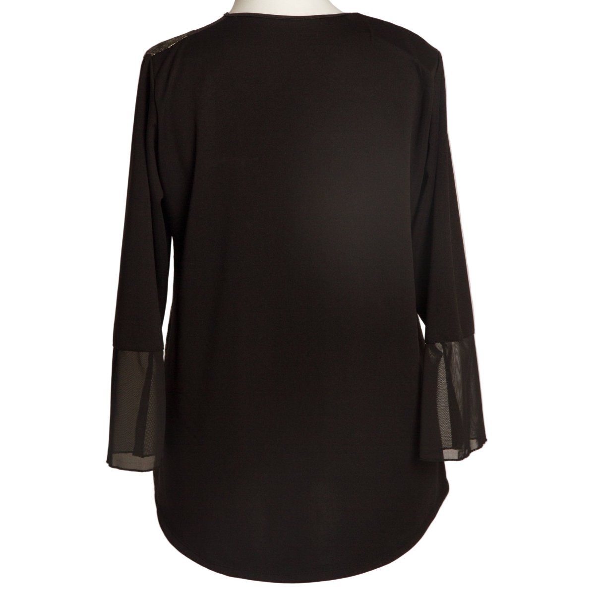 - Дълги ръкави с прозрачни детайли за фин завършек
