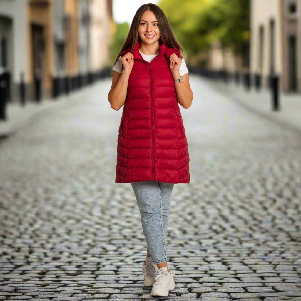 Стилен и практичен елек в големи размери, създаден за комфорт и модерна визия през по-студените дни. Изработен от висококачествен полиестер, моделът е лек и удобен, като същевременно осигурява топлина. Права кройка и класическо закопчаване с цип осигуряват лесно обличане и свобода на движенията. Двата странични джоба с цип предлагат удобство и сигурност за личните вещи. Качулката добавя допълнителна защита и практичност, което прави елека подходящ за ежедневни и елегантни визии през есенно-зимния сезон.