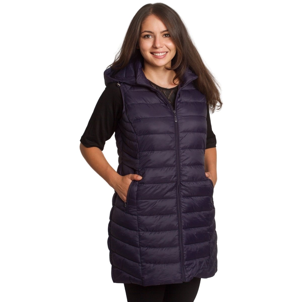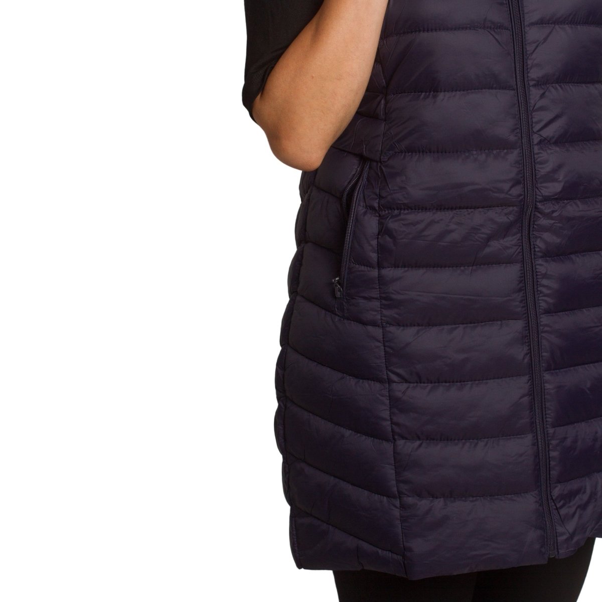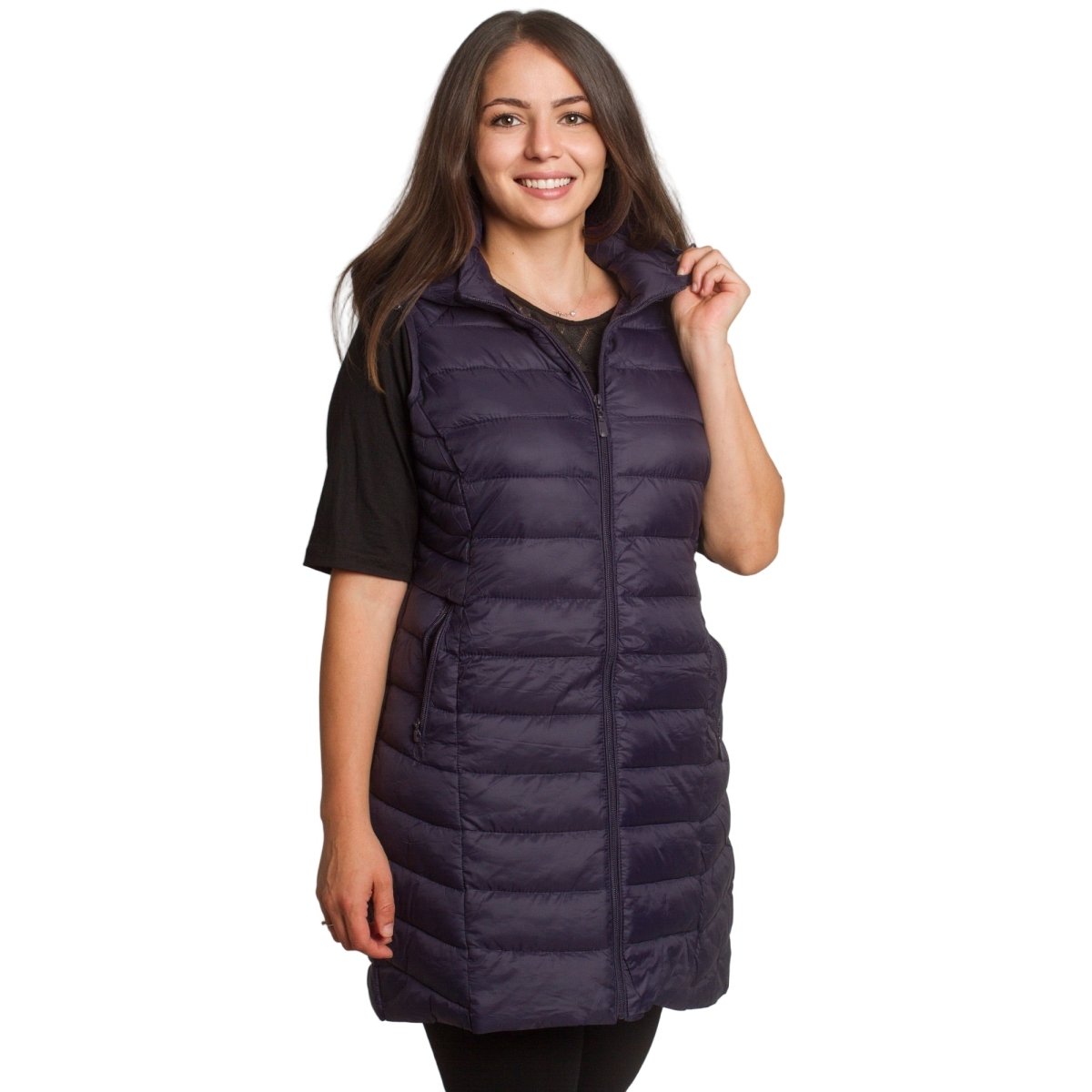 Стилен дълъг елек в тъмносин цвят, подходящ за ежедневието и по-елегантни поводи. Моделът е с права кройка, която осигурява комфорт и свобода на движението. Изработен е от 100% полиестер, което го прави лек и удобен за носене. Елекът е с практичен цип отпред и два странични джоба с цип за повече удобство. Дизайнът е подплатен с хоризонтални шевове, които подчертават модерната му визия. Подходящ за есенно-зимния сезон, както за разходка, така и за ежедневно комбиниране с туники, пуловери или блузи.