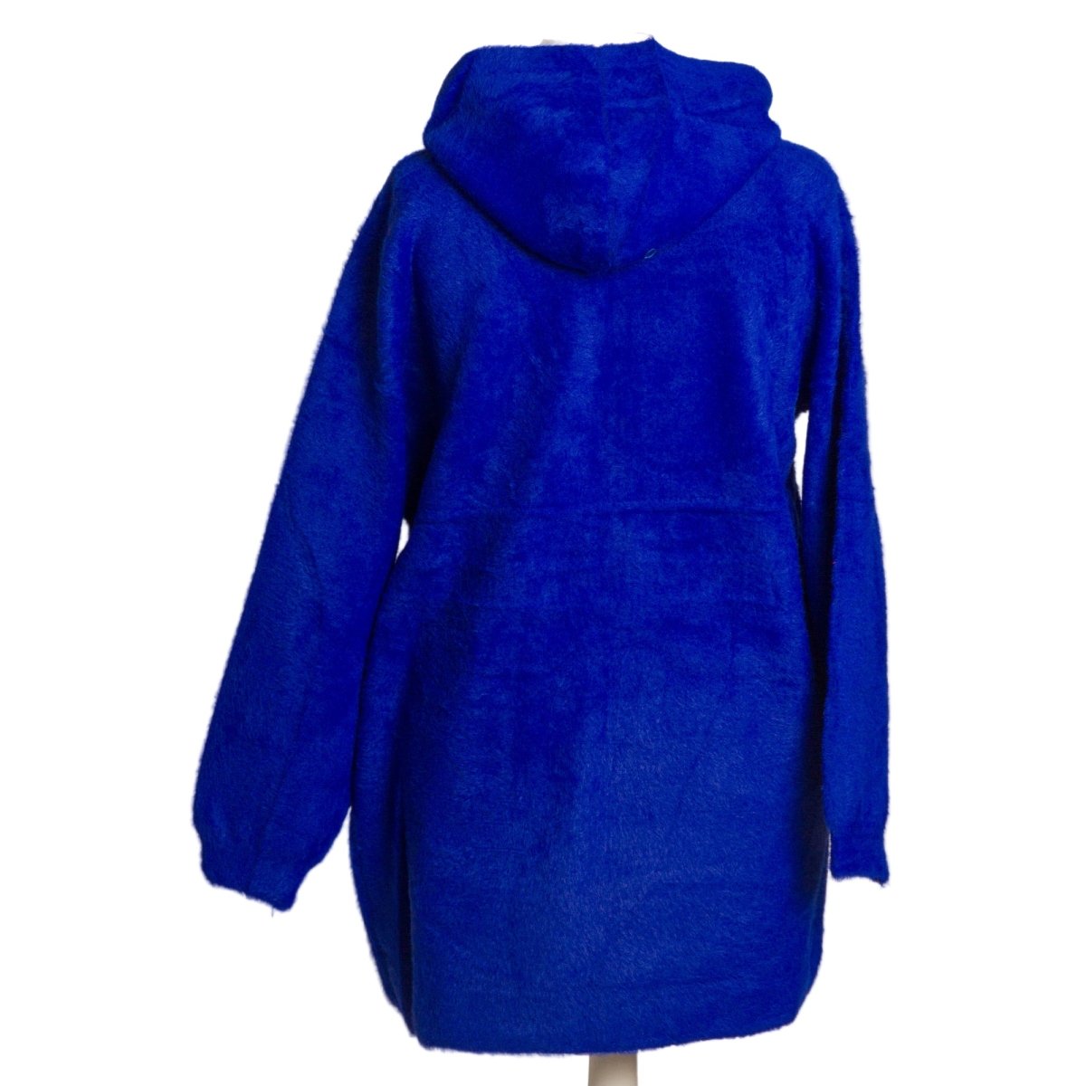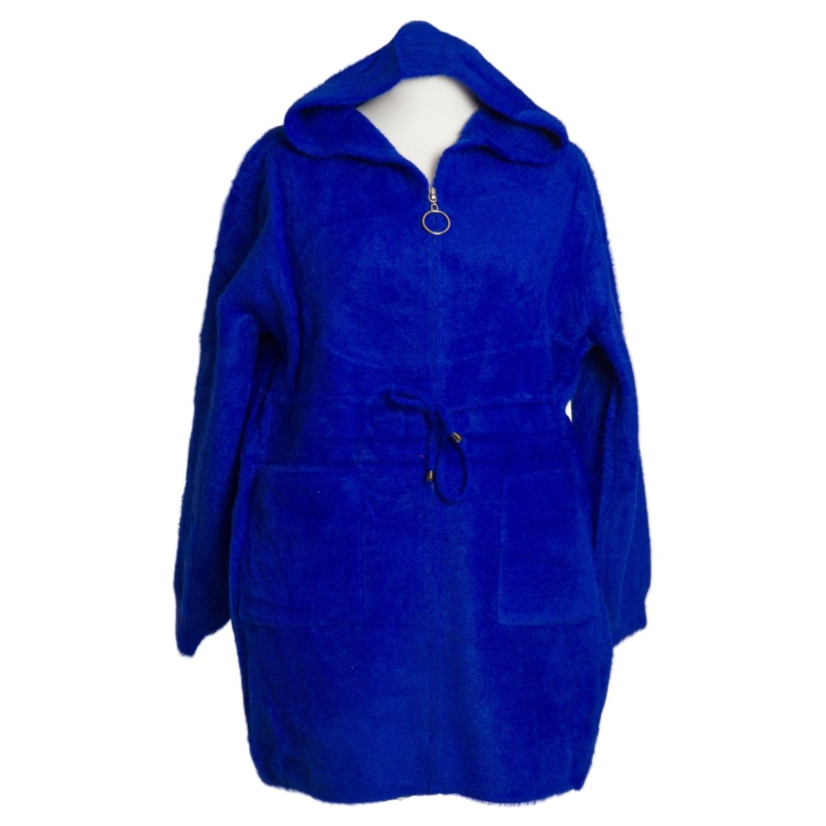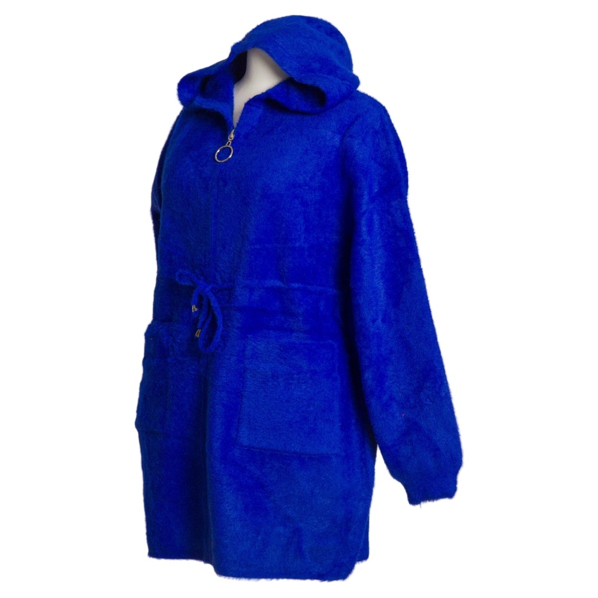 Топло и модерно дамско яке в големи размери, създадено за максимален комфорт и елегантна визия през есенно-зимния сезон. Моделът е изработен от качествена смес от 50% вискоза, 25% памук и 25% полиамид, което го прави меко, топло и приятно на допир. Дизайнът е с права кройка и връзки за пристягане в талията, които позволяват индивидуално регулиране и оформяне на силуета. Якето е с голяма качулка за защита в студено време и дълбоки предни джобове, които съчетават практичност и стил. Закопчава се с удобен цип по цялата дължина, завършващ с декоративен елемент.