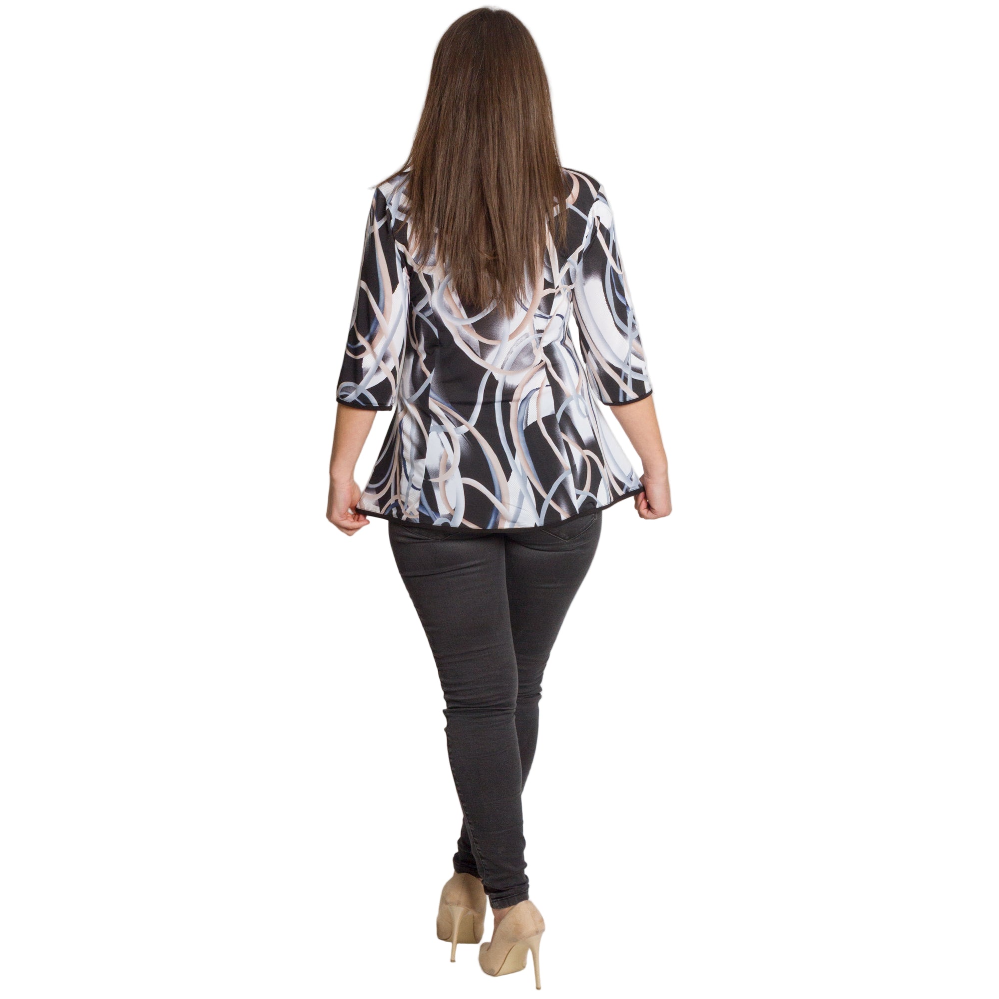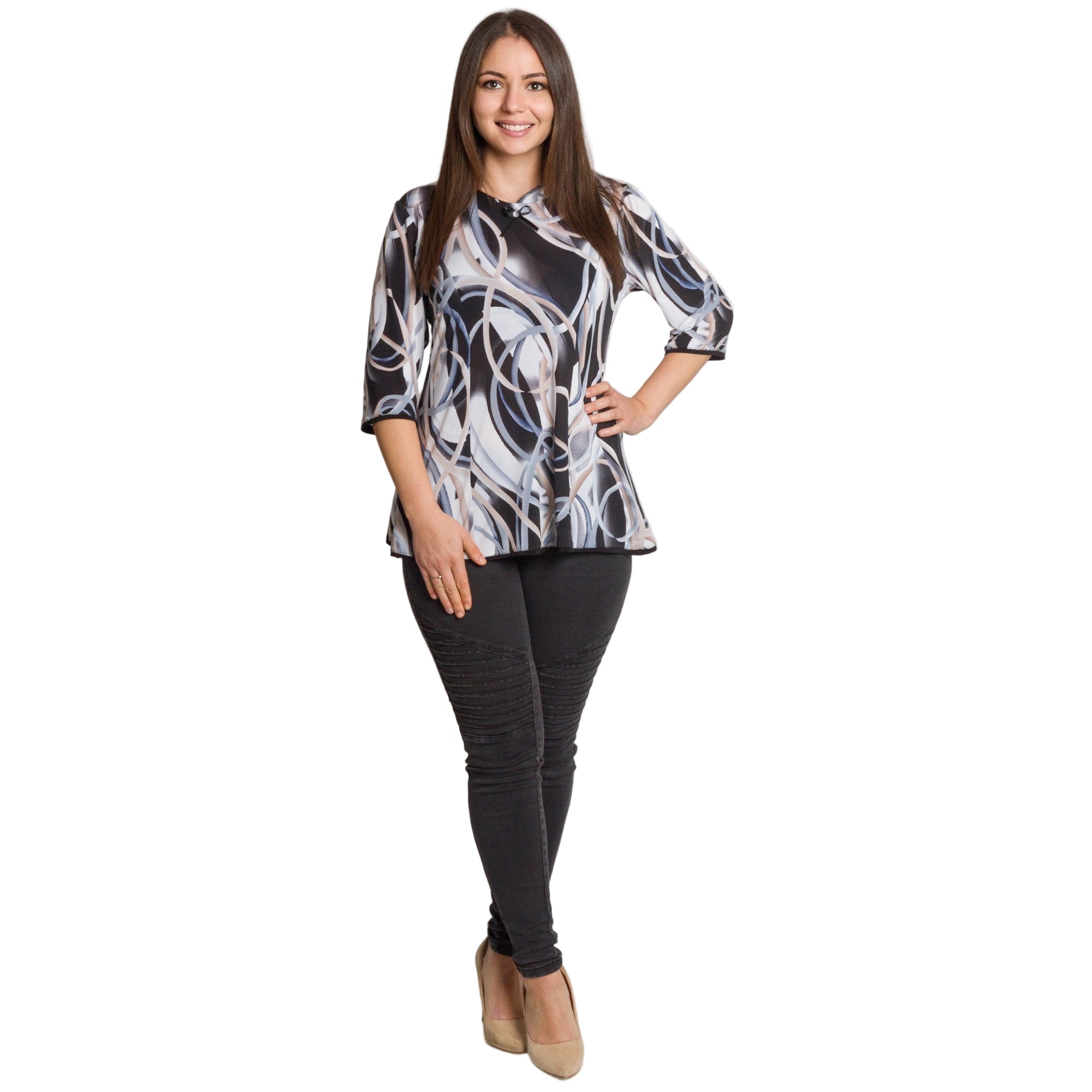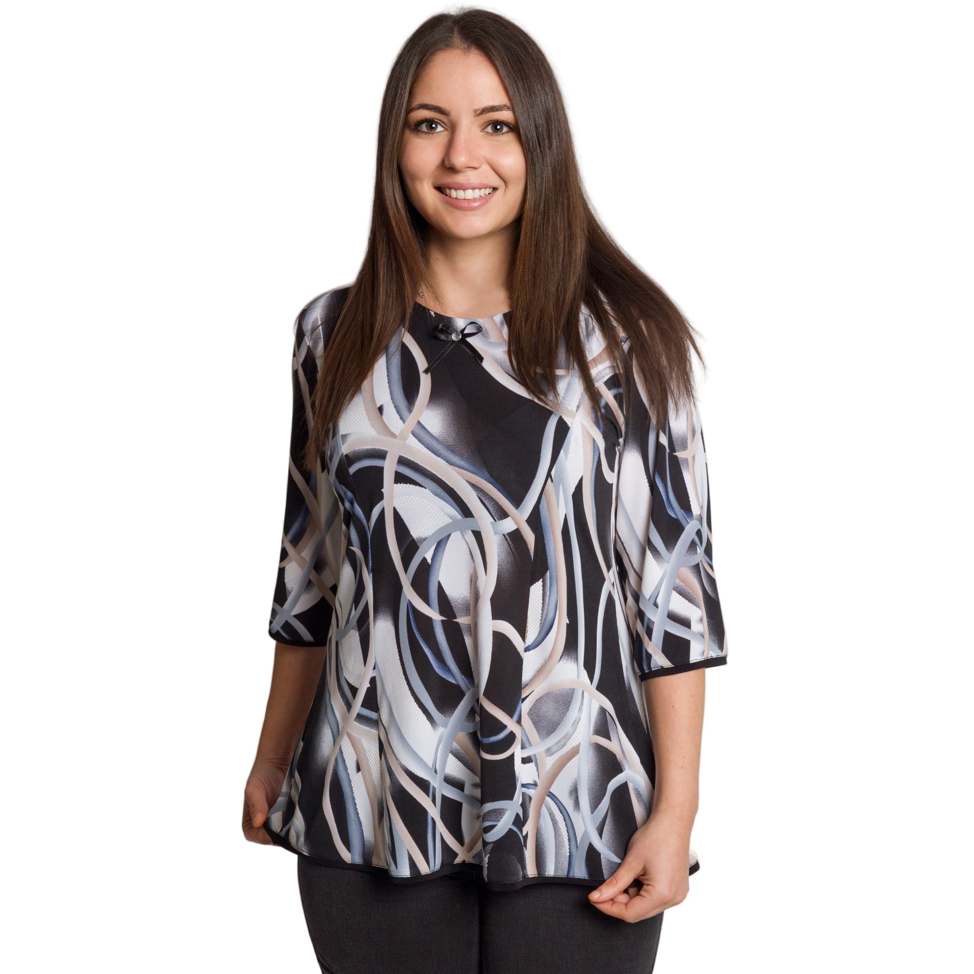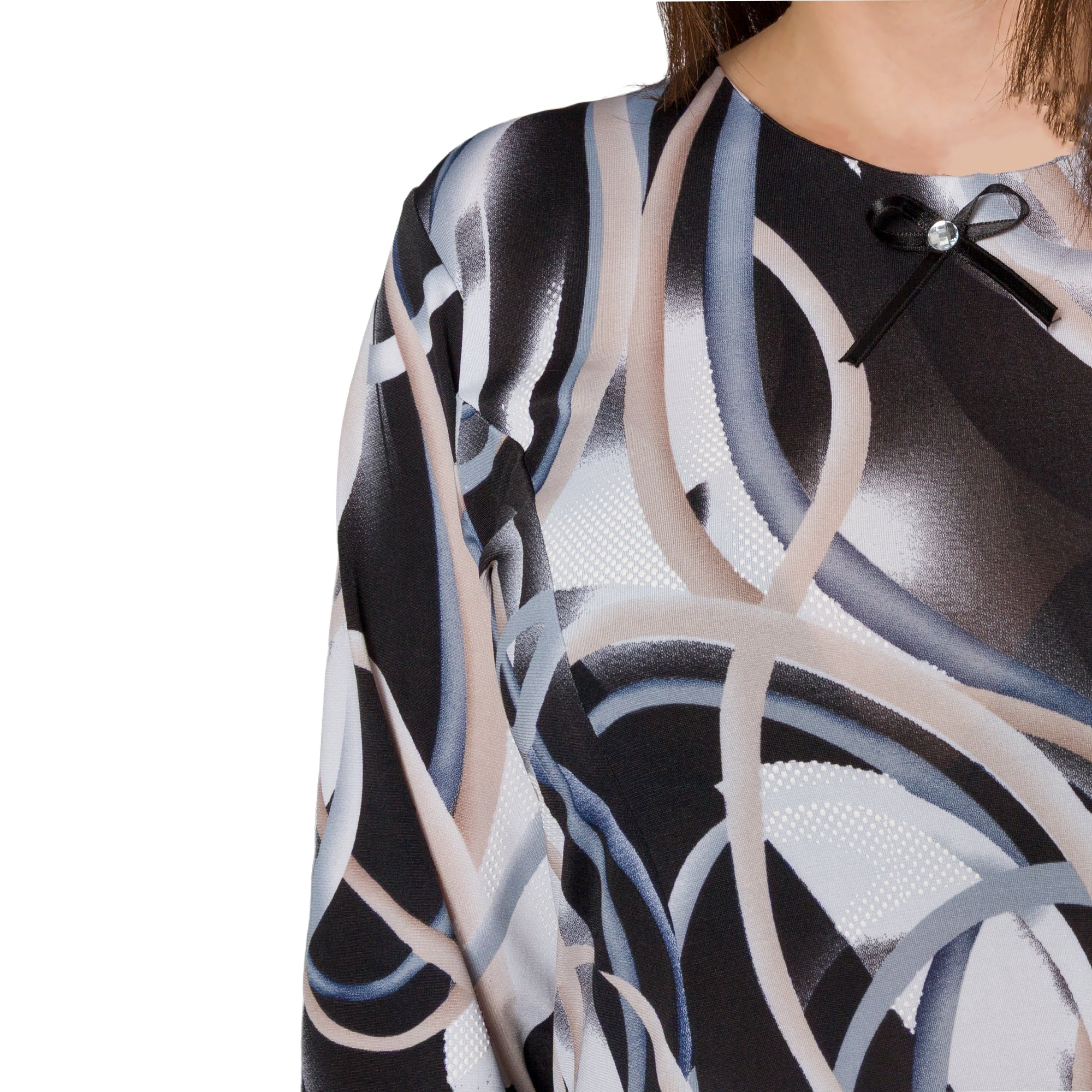 Многоцветна разкроена туника с ефектен принт и декоративна панделка
