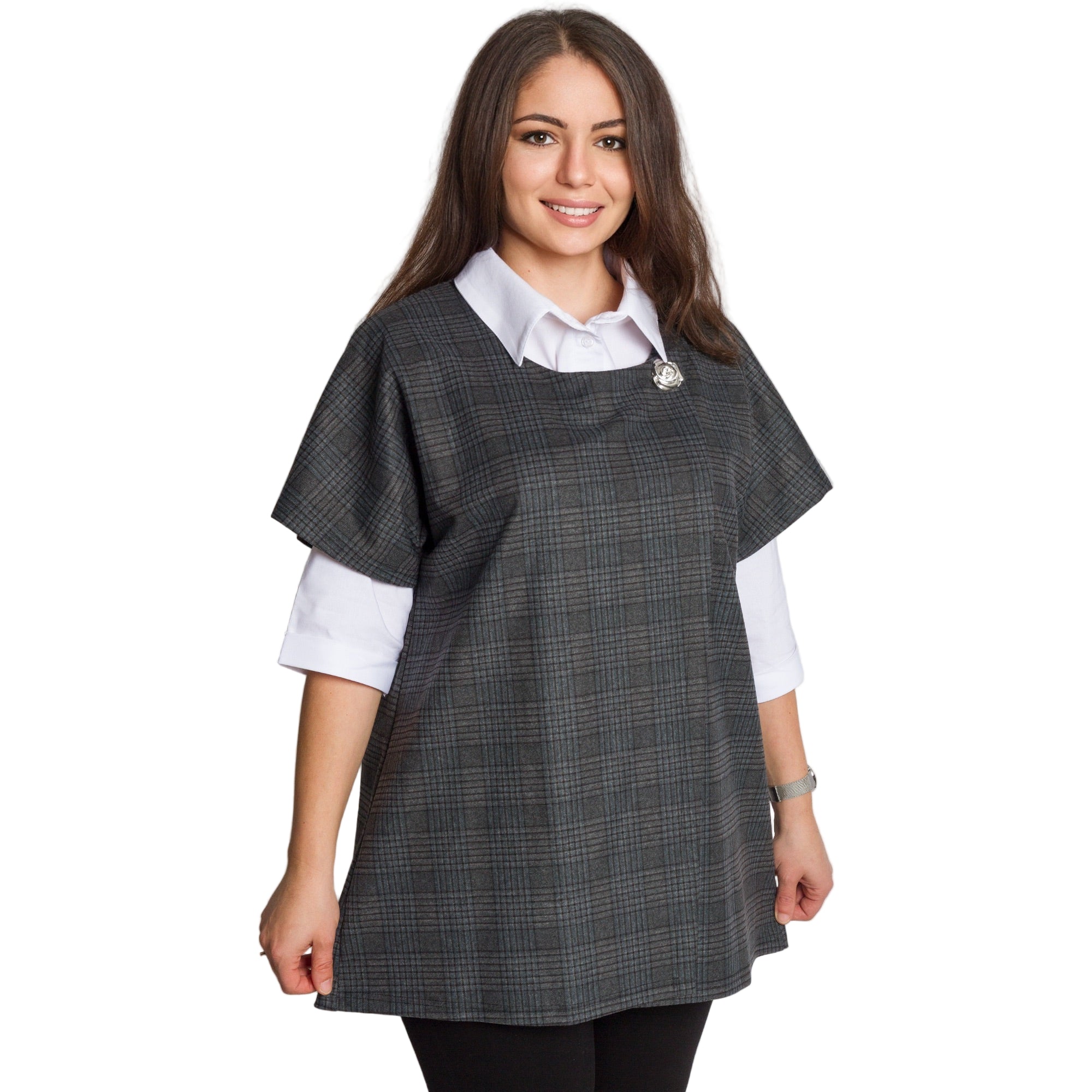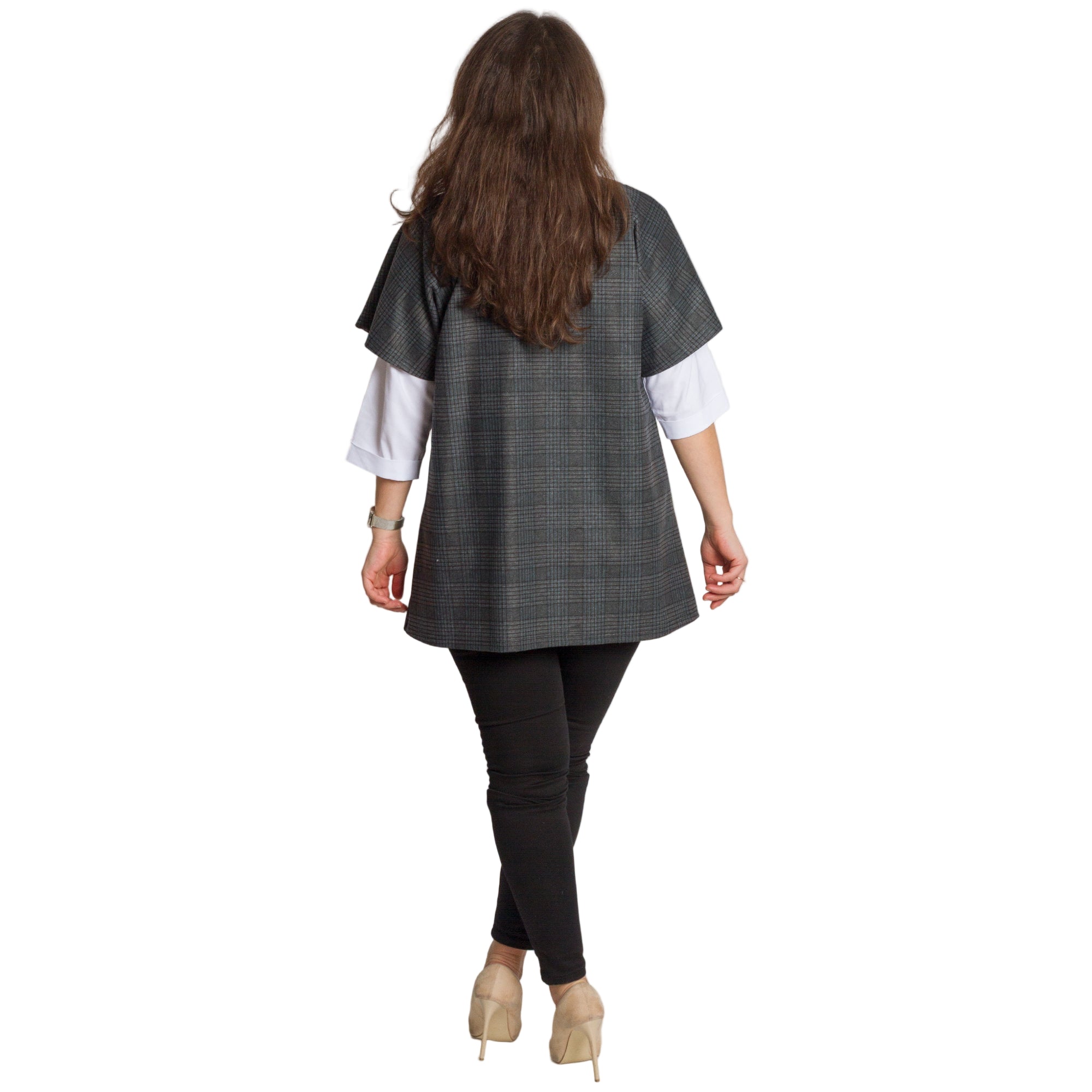 Елегантен макси комплект, състоящ се от класическа бяла риза и стилен елек в сиво каре. Елекът е изработен от 100% вълна – мека, топла и фина материя, която осигурява комфорт и елегантност през студените дни. Ризата е изработена от 100% полиестер, с яка и 3/4 ръкави, придавайки завършен и изискан вид. Комбинацията от двете части създава модерен и професионален силует, подходящ за официални и делови поводи.