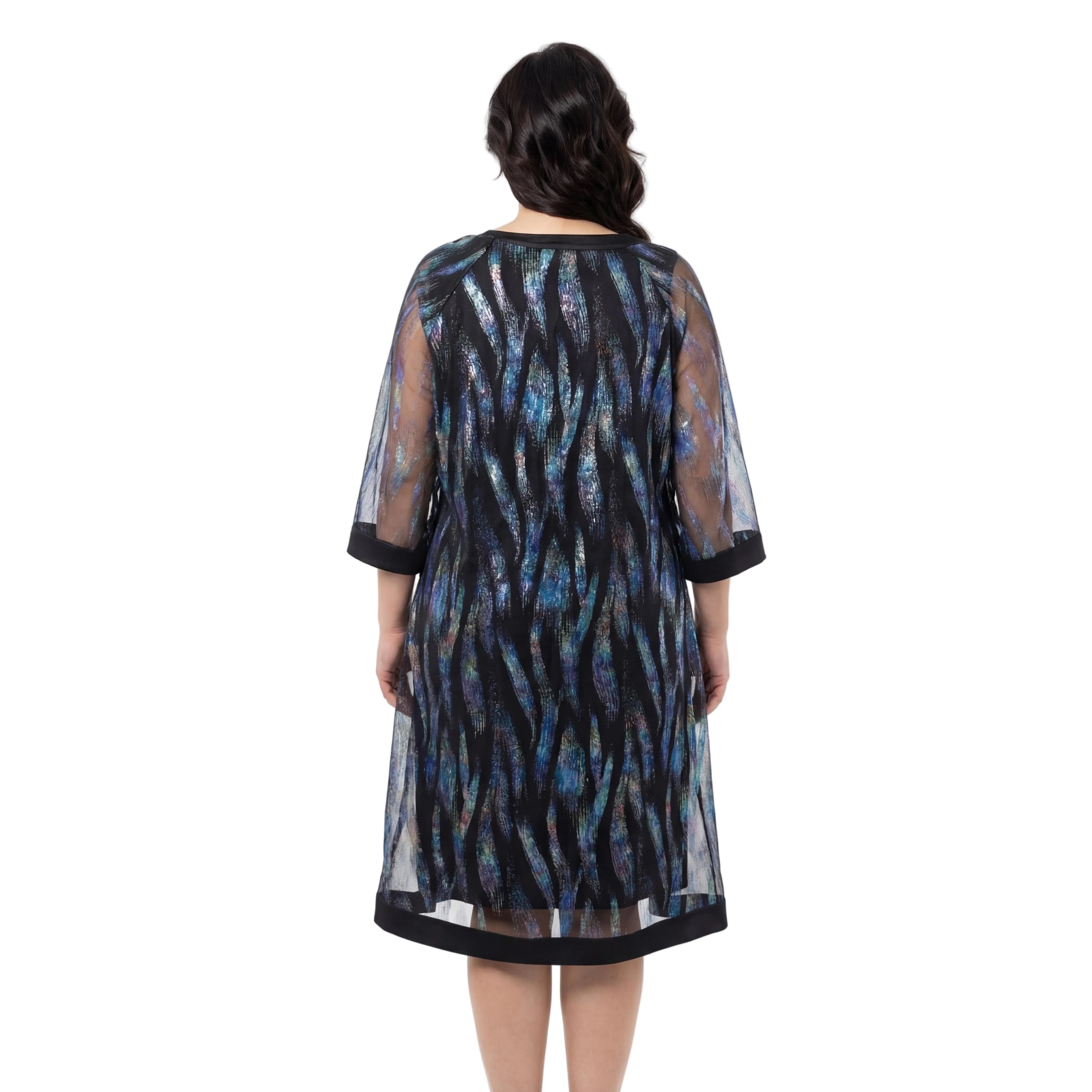 Дизайн: Комбинация от непрозрачна трикотажна основа и горна част от ефирен шифон с абстрактен принт.