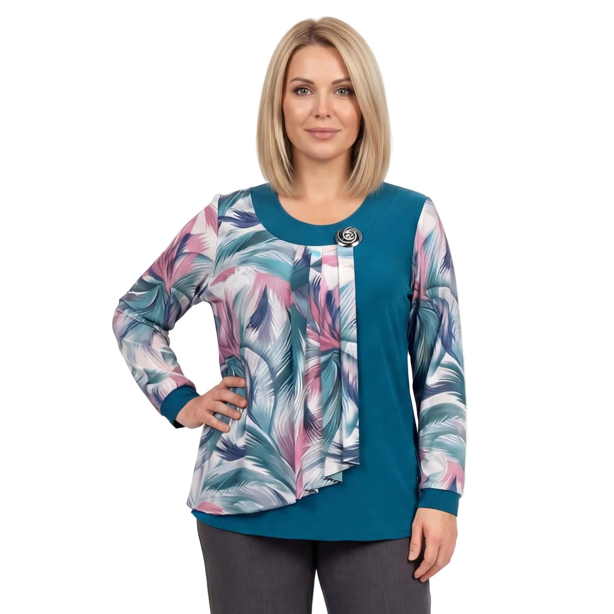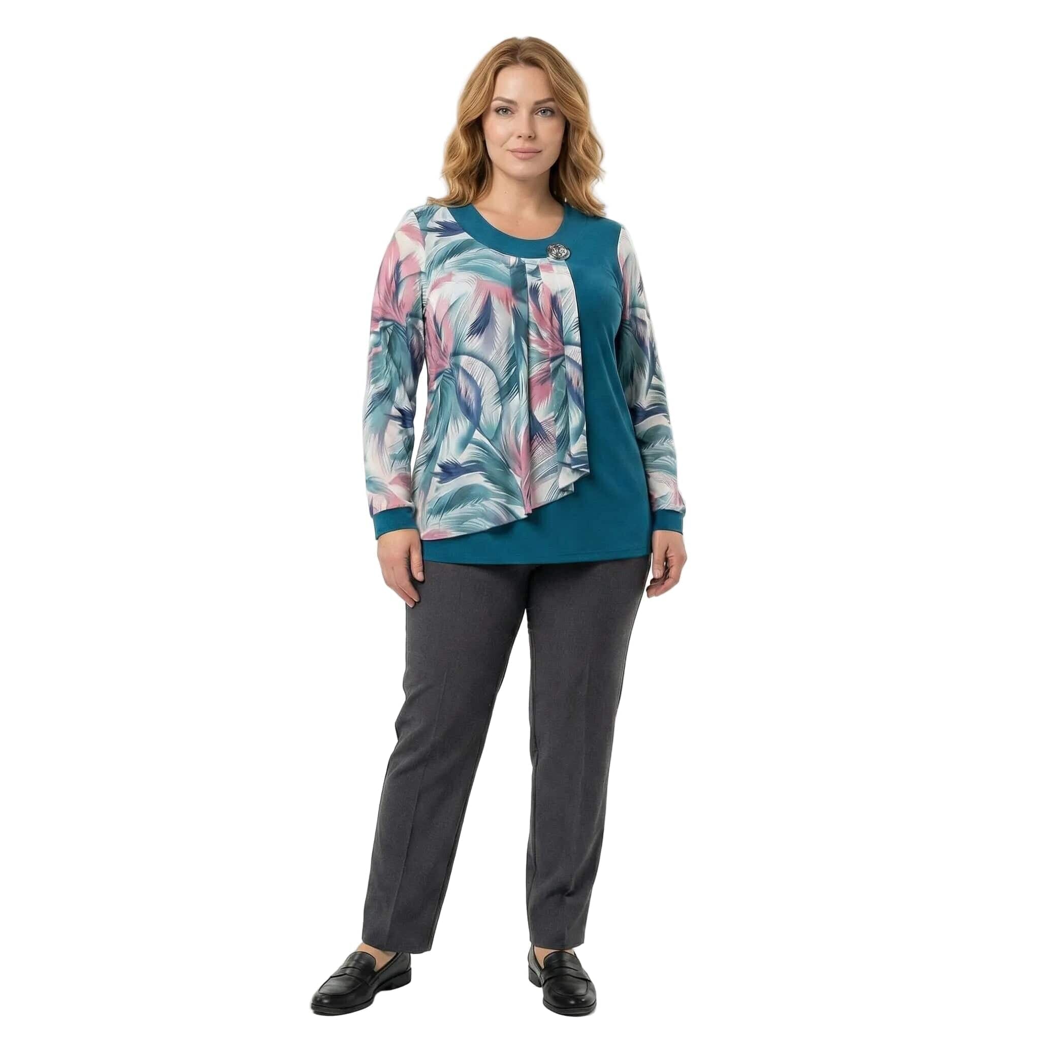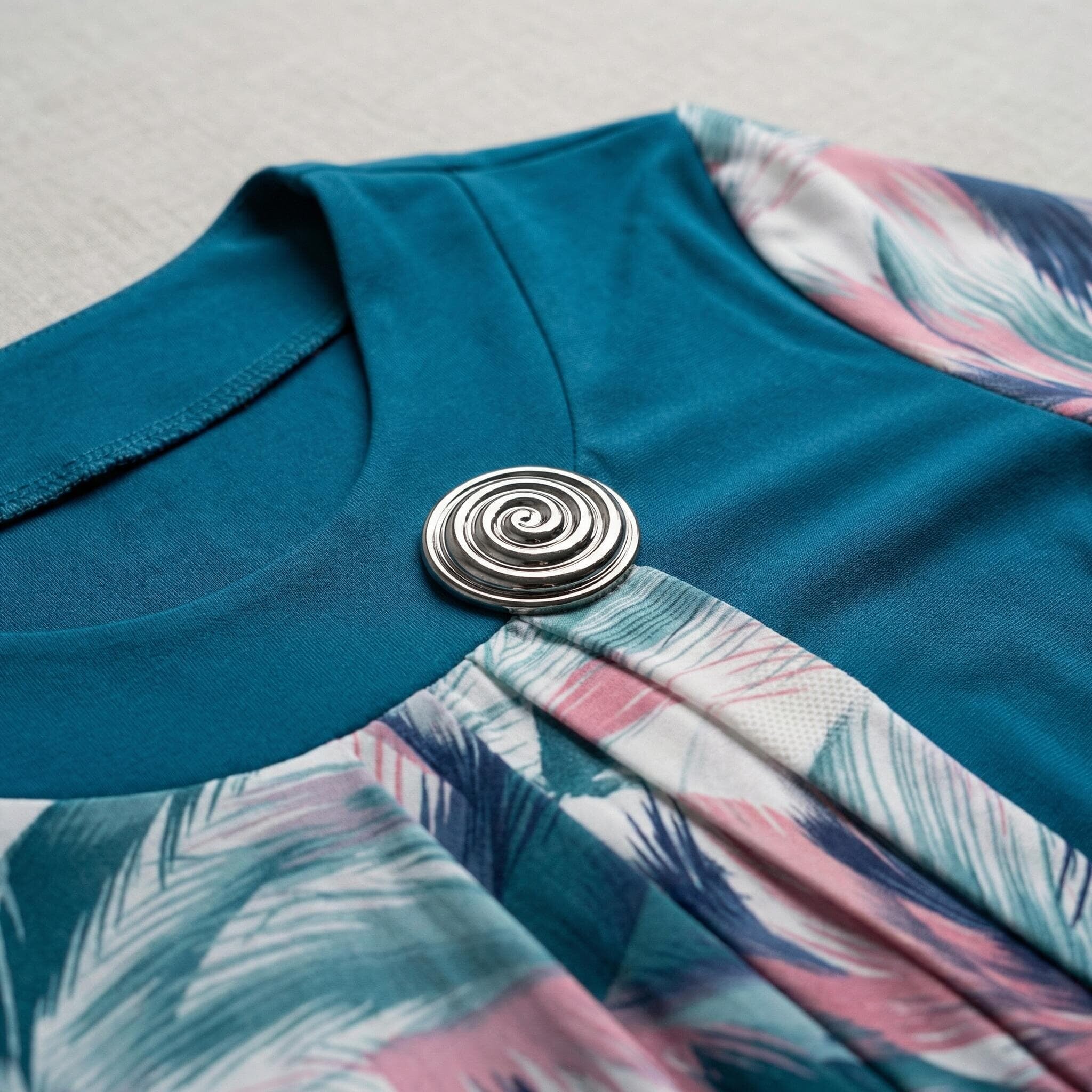 Официална макси туника в цвят петрол с ефирен шифон и брошка