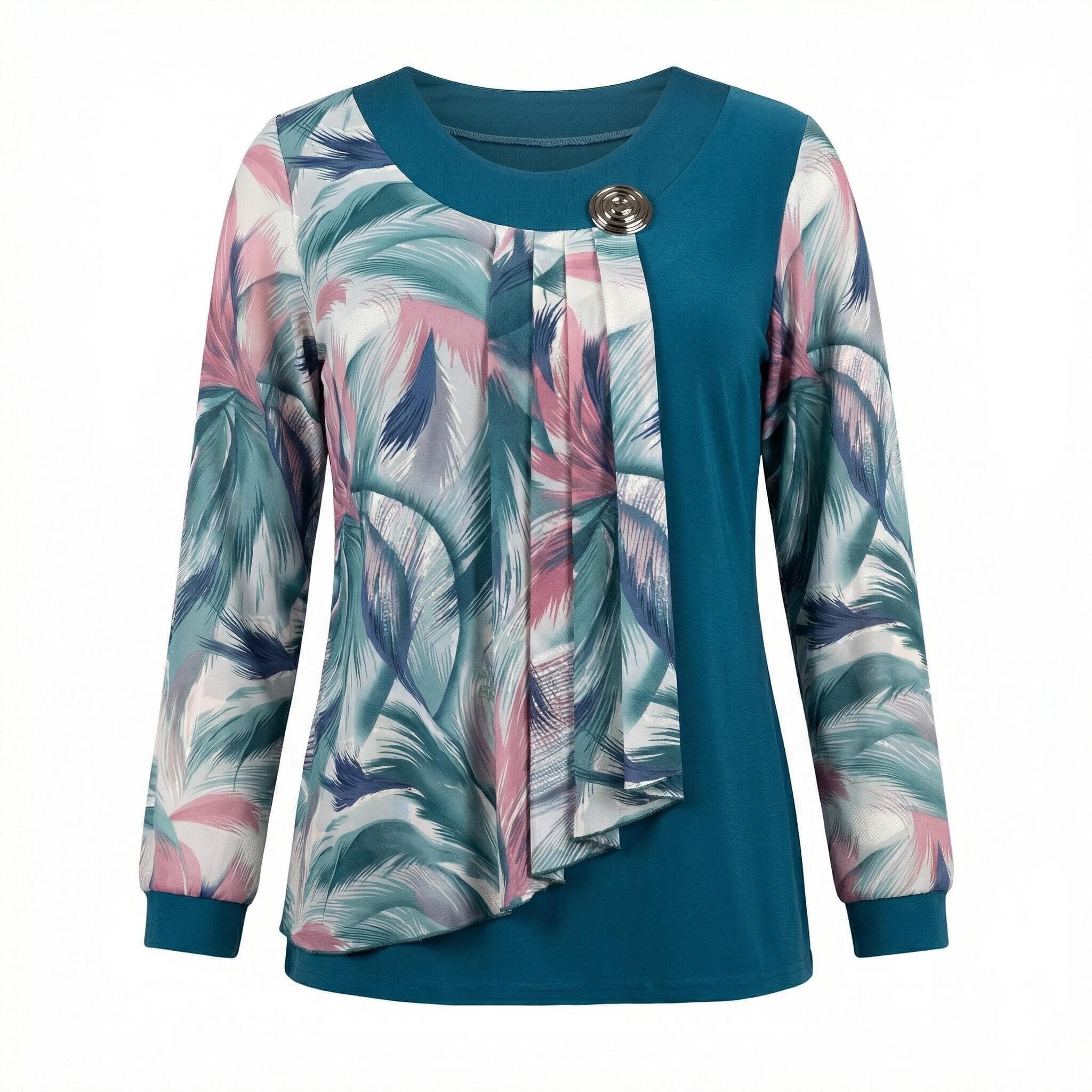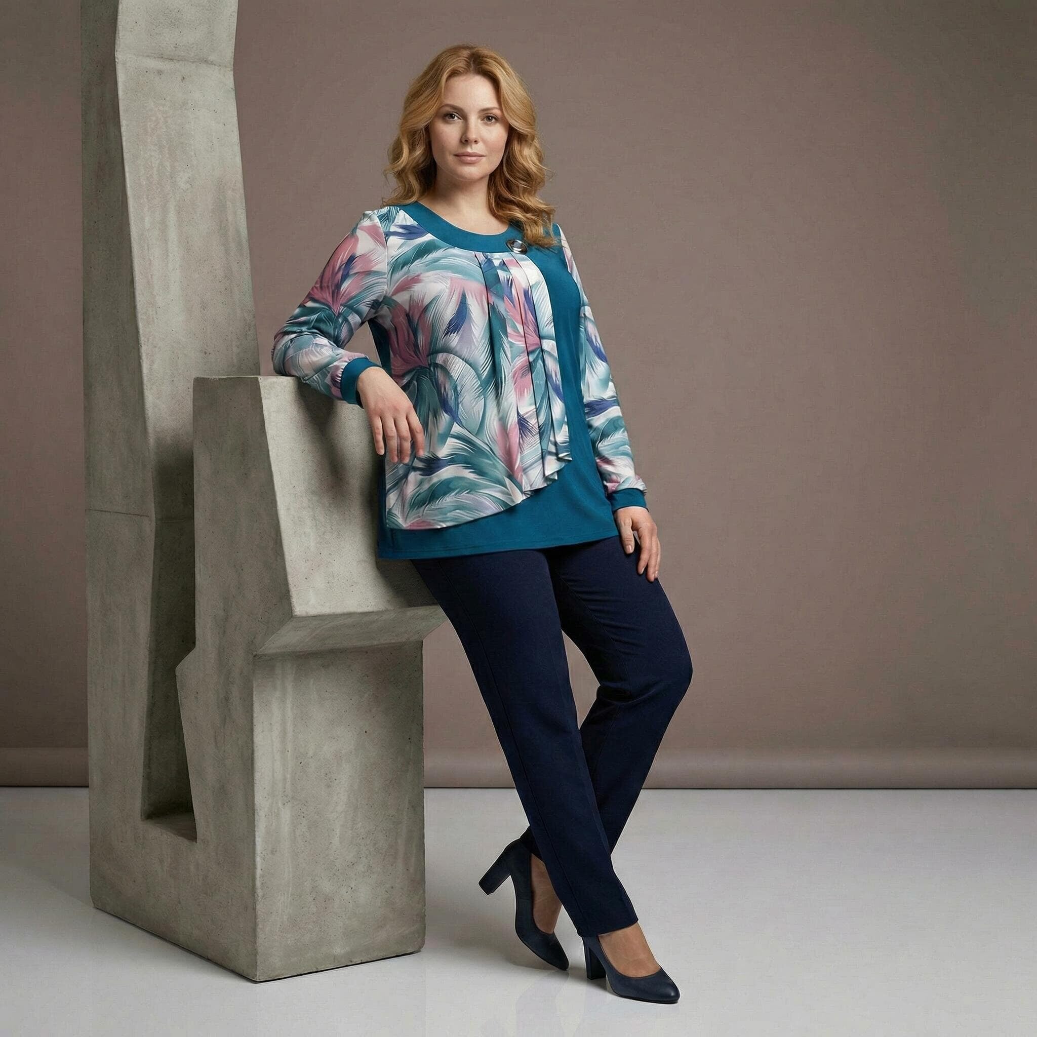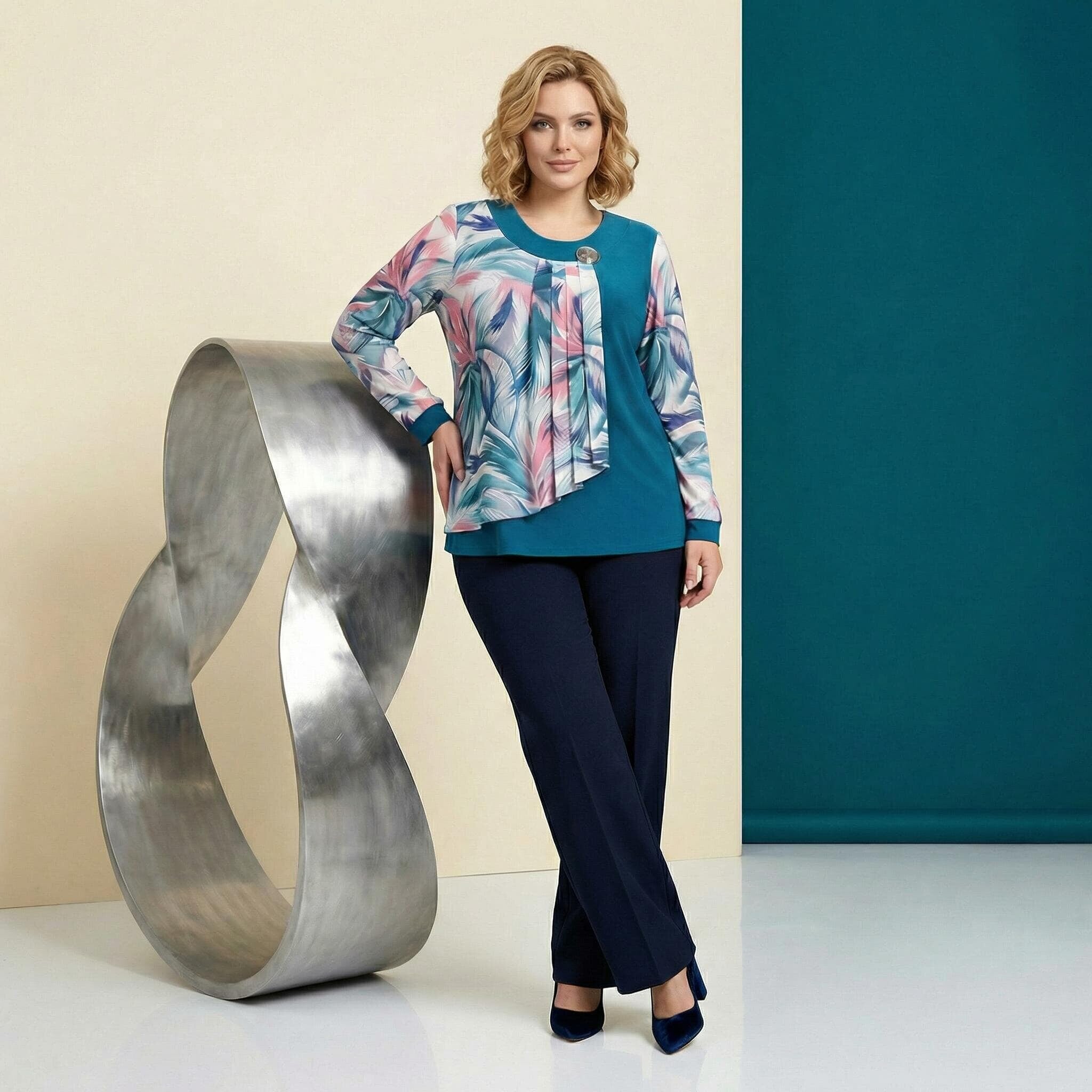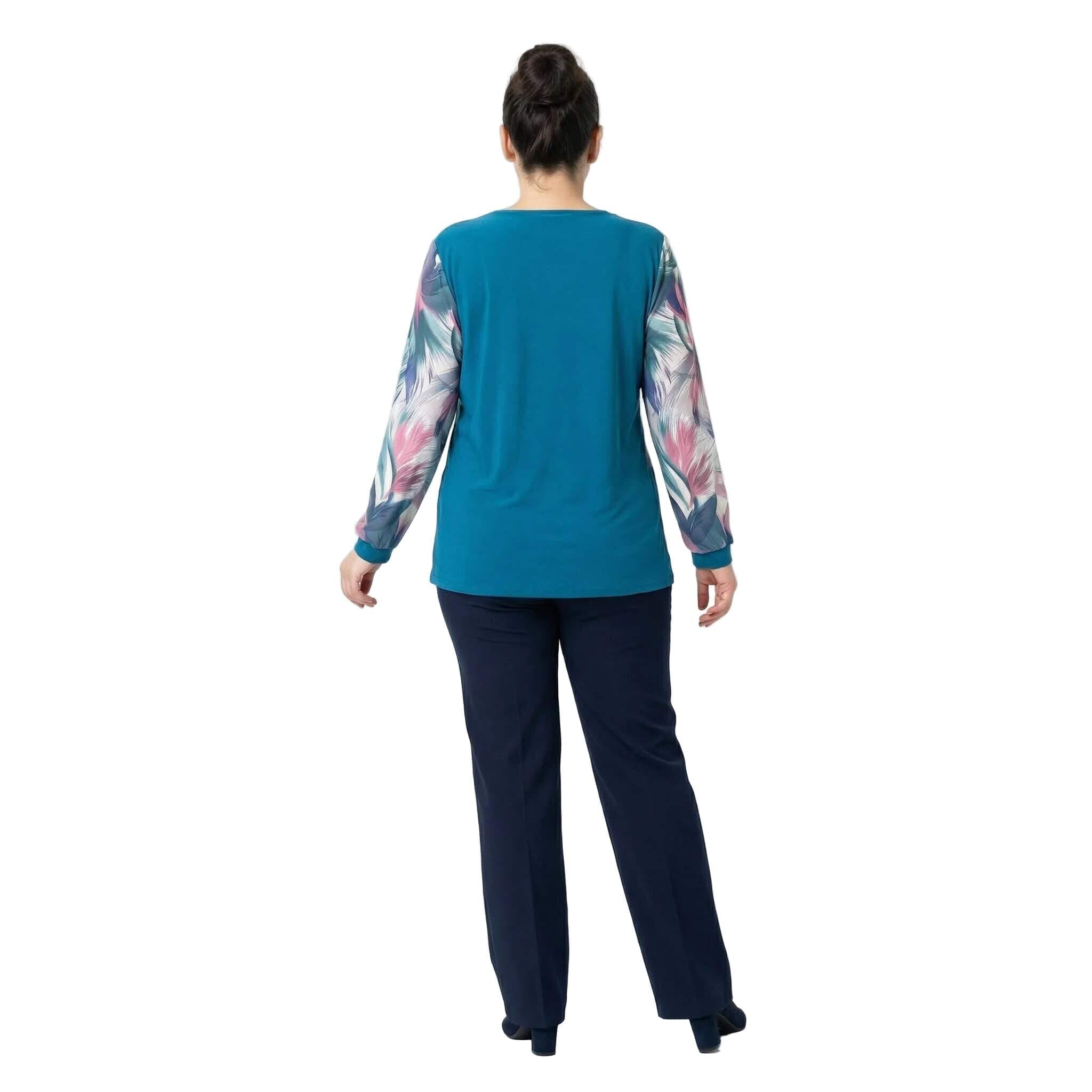 Официална макси туника в цвят петрол с ефирен шифон и брошка