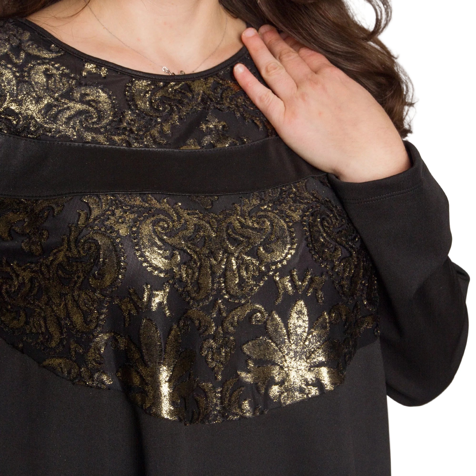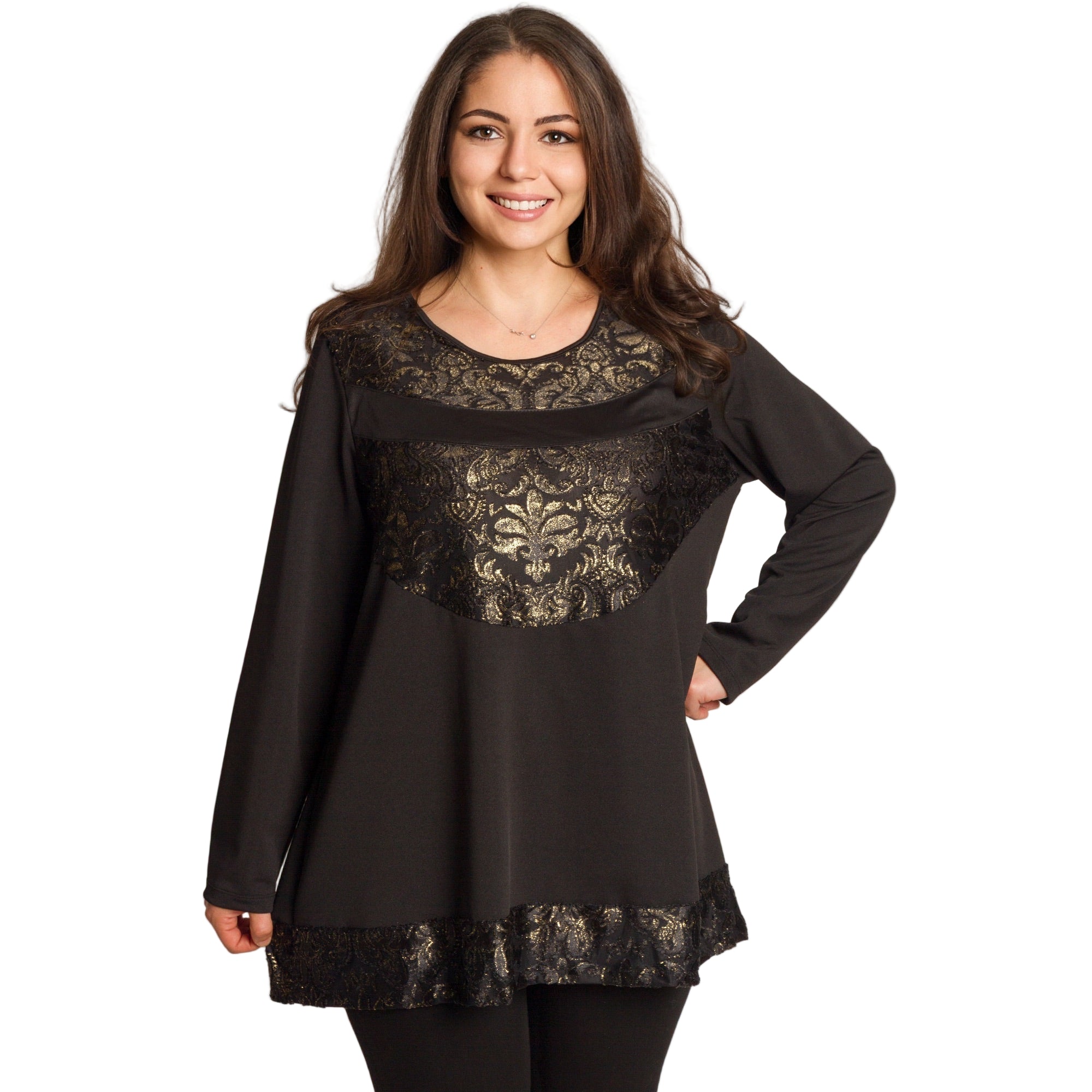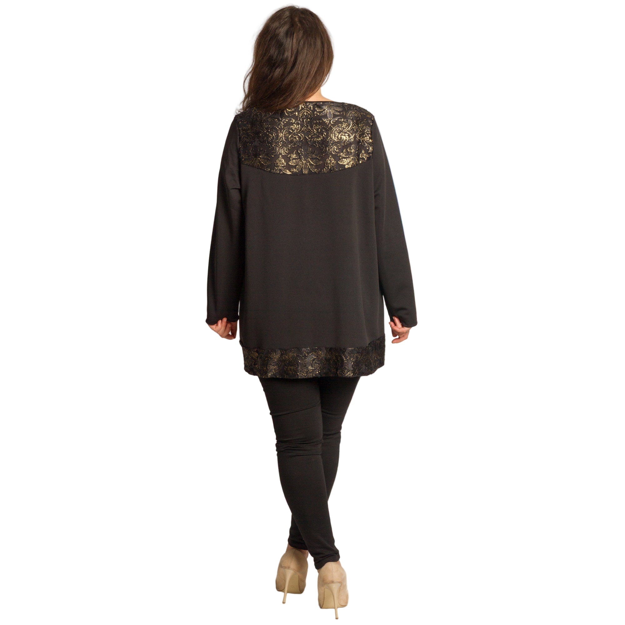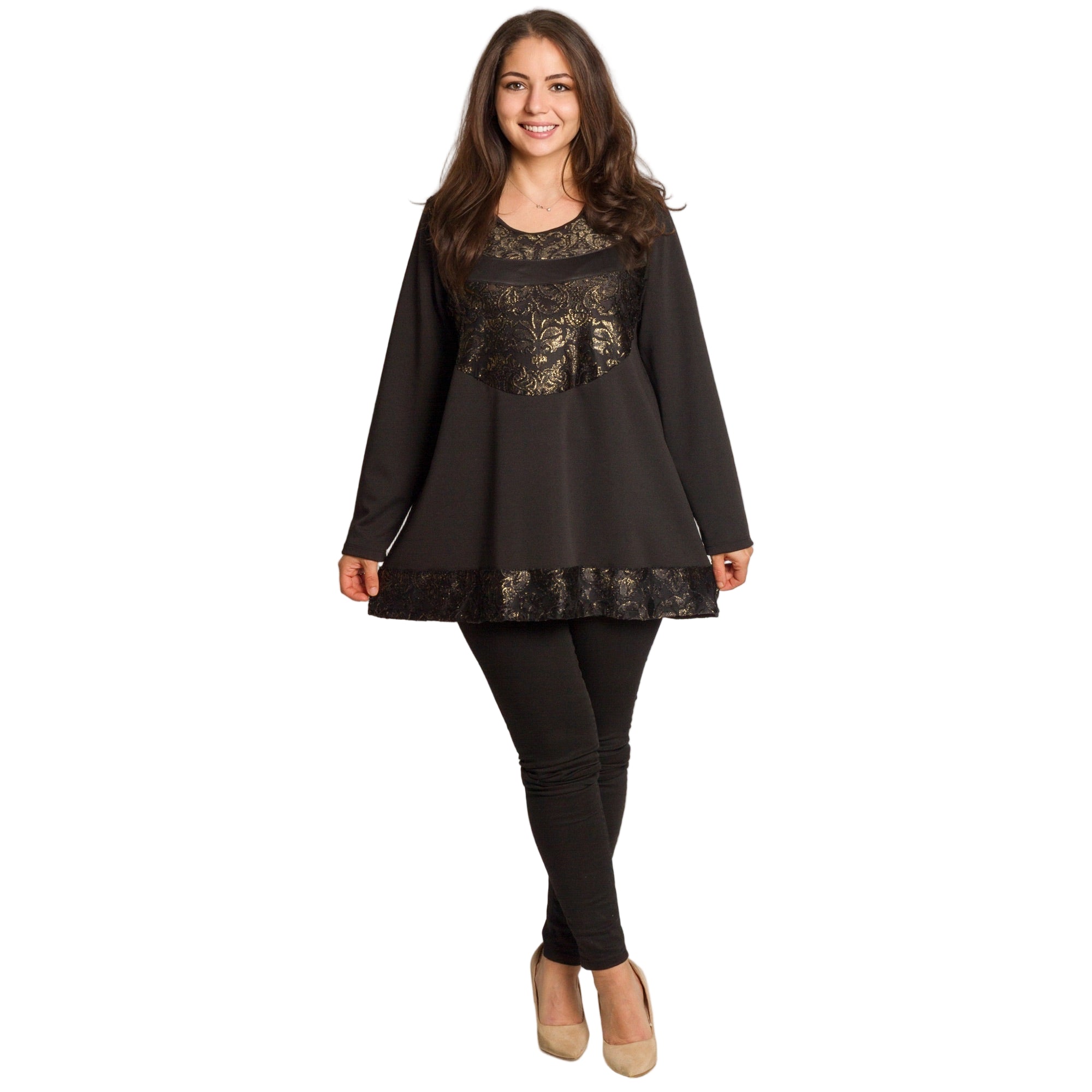 Туниката има обло деколте и дълги ръкави, а декоративните елементи в златисто придават блясък и изтънченост на визията. Подходяща е за специални поводи, празнични вечери и официални излизания през есенно-зимния сезон.