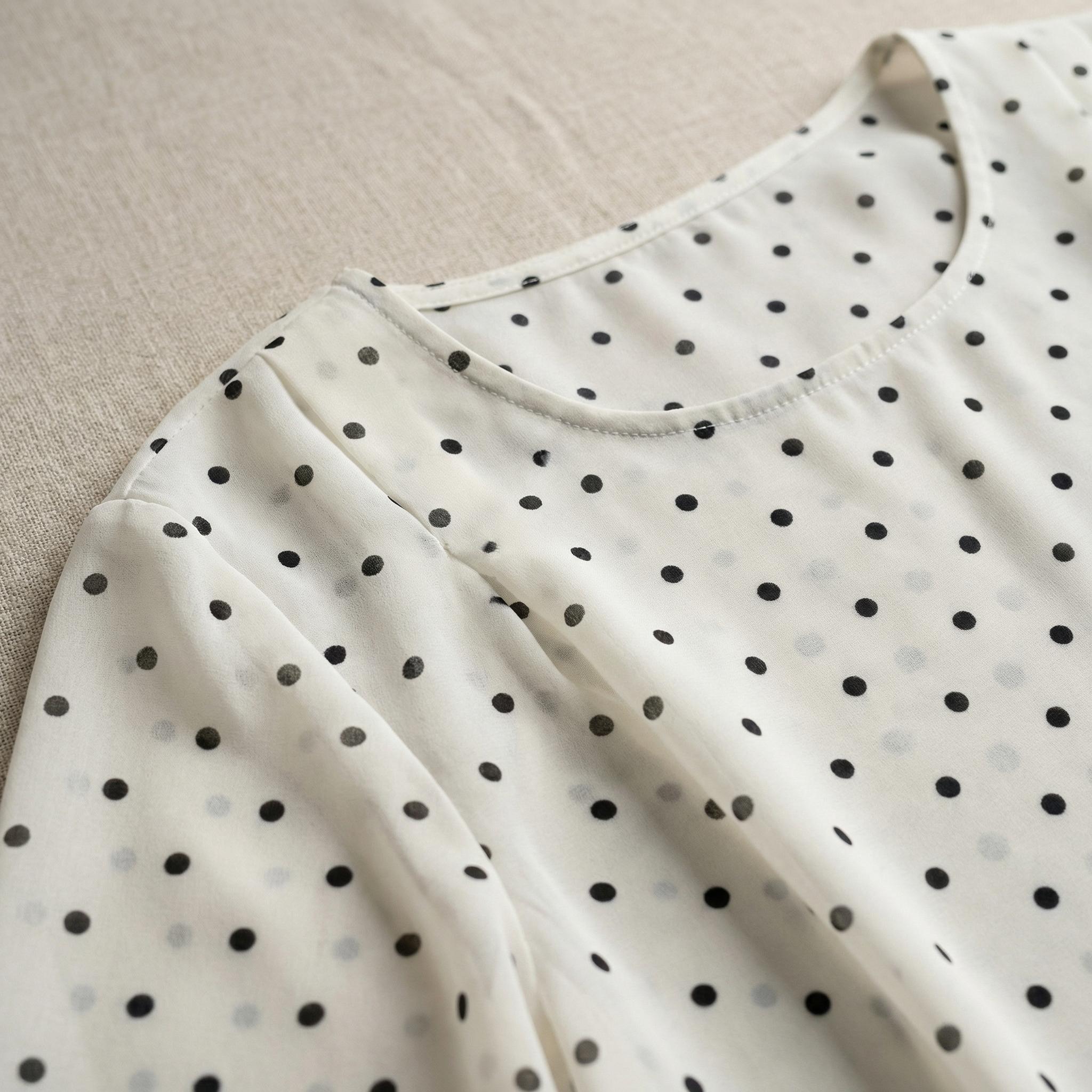 Елегантен дизайн: Класически десен на точки върху ефирен шифон за безупречна визия.