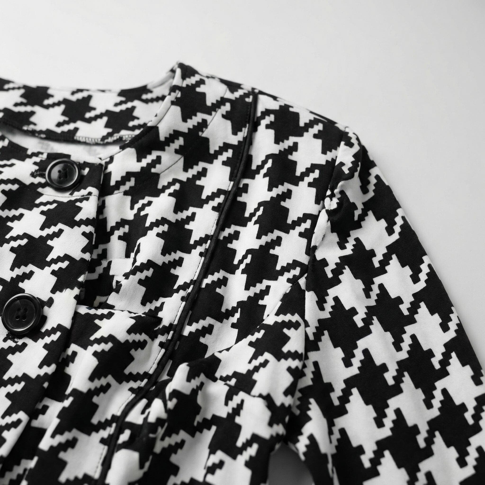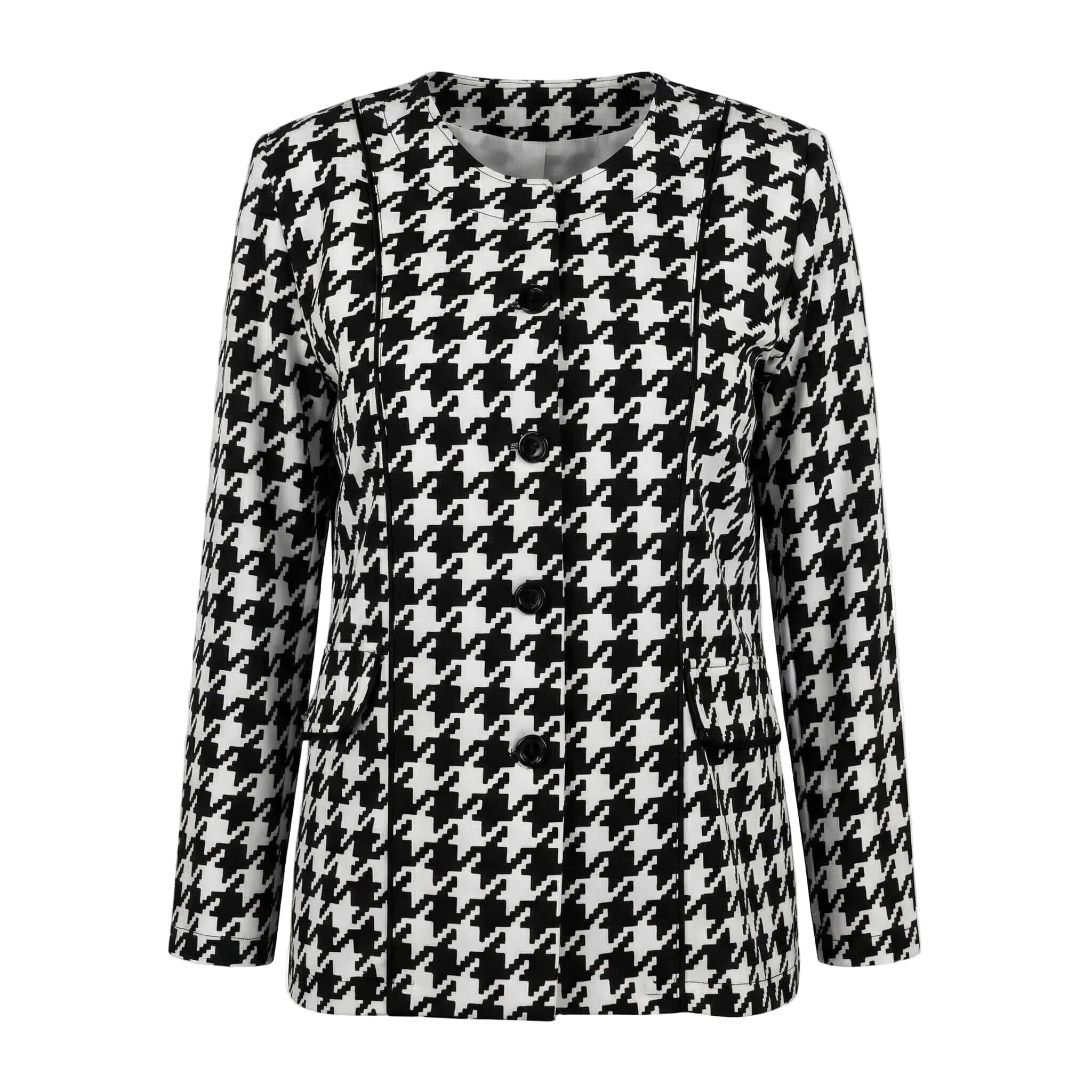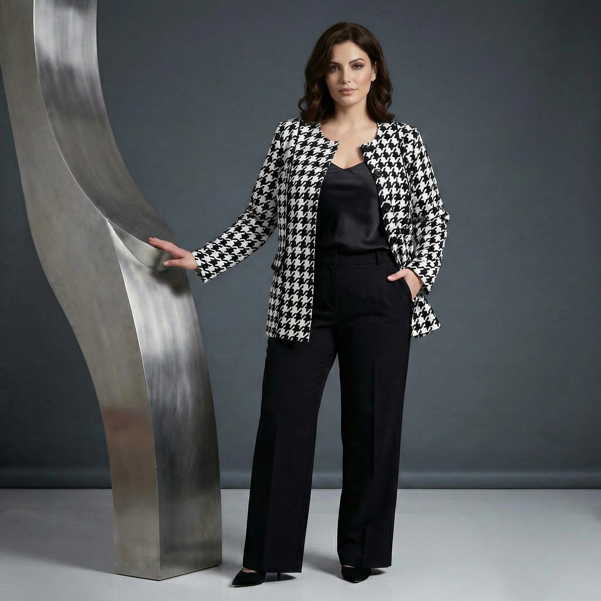 - Класически пепитен десен за безупречна официална визия.