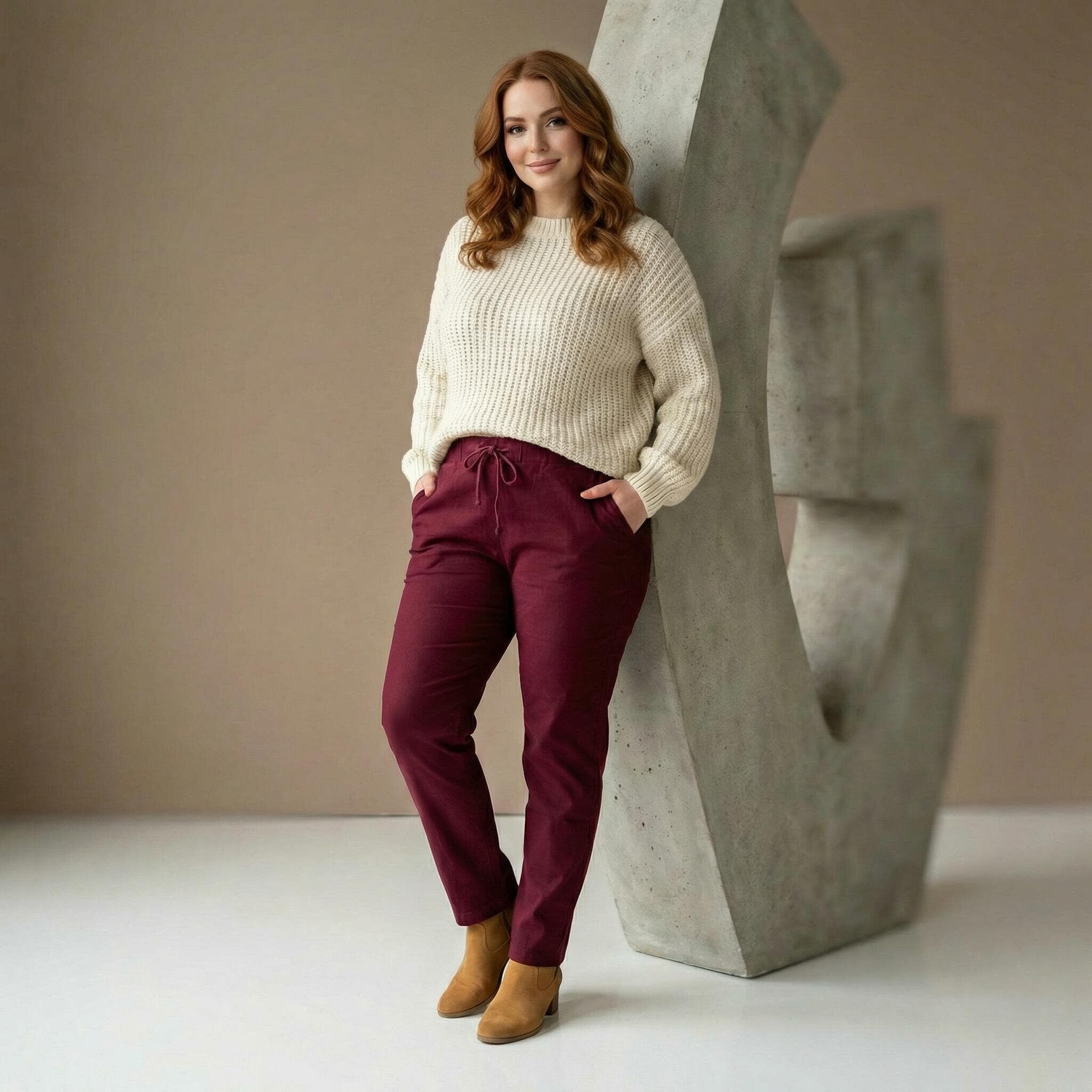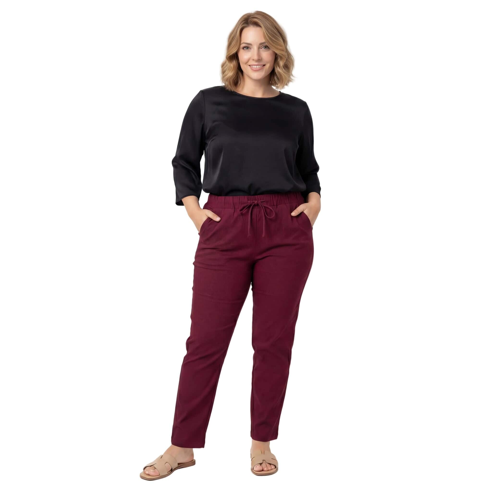 Спортно-елегантен макси панталон бордо с прав крачол