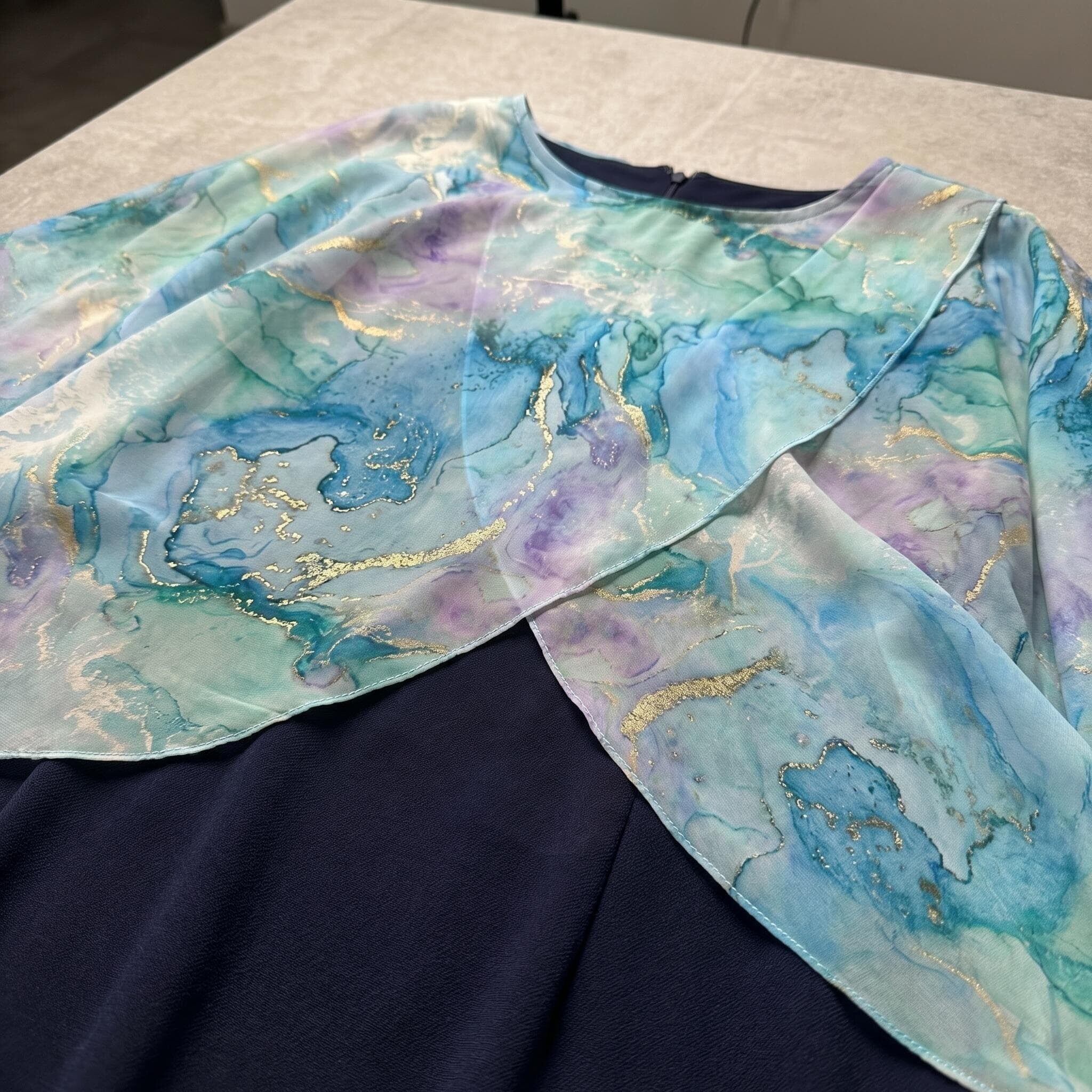 - Ефирен горен слой от шифон с красив абстрактен принт