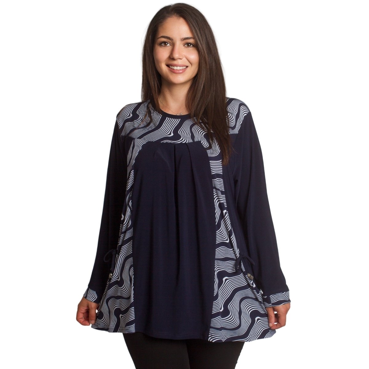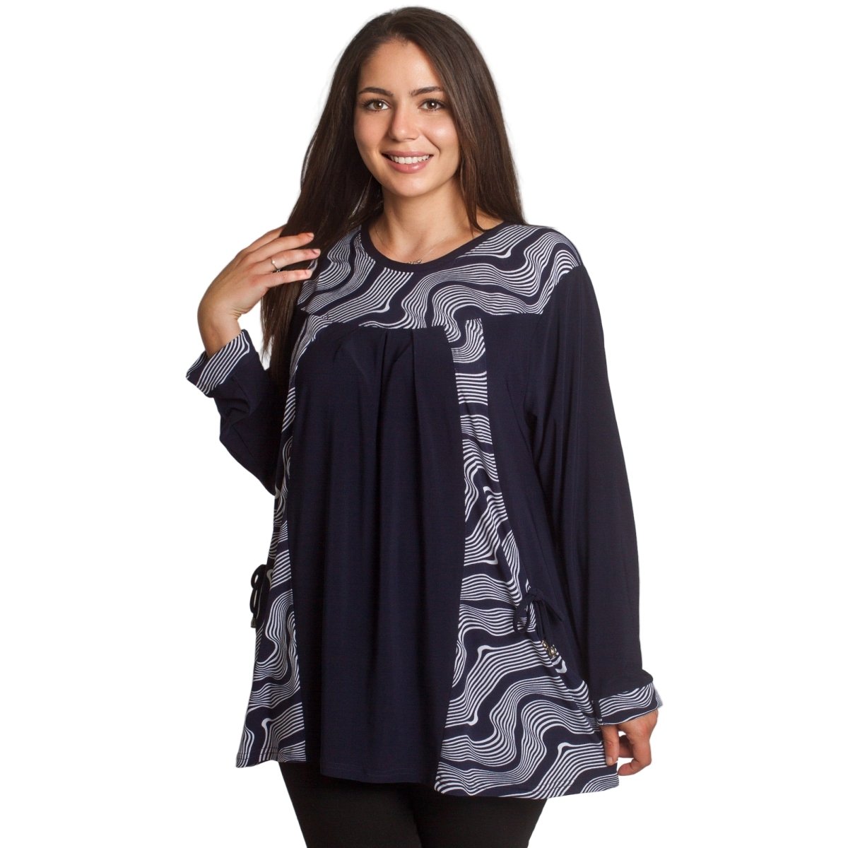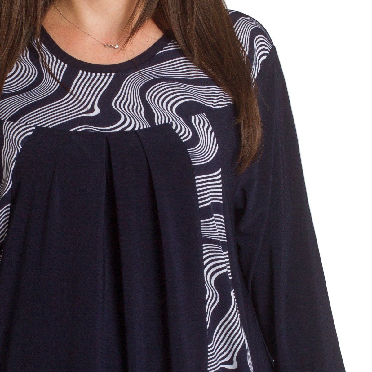 Тъмносиня туника в големи размери с бели вълнообразни линии
