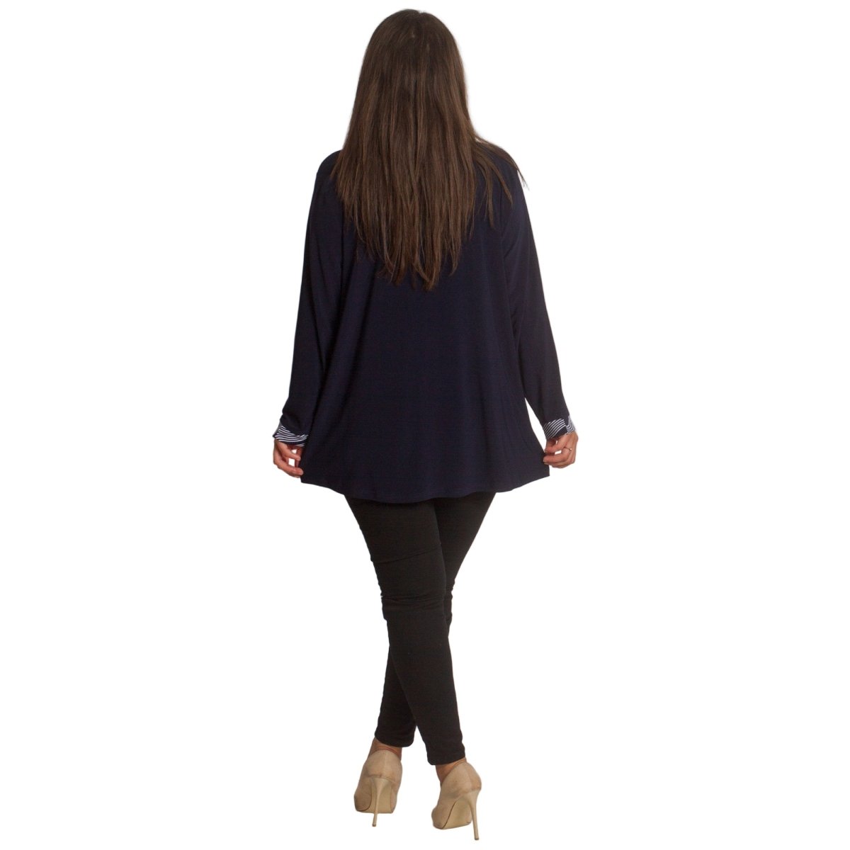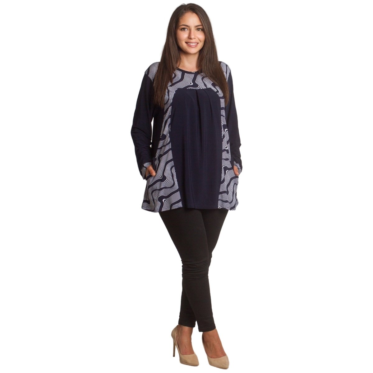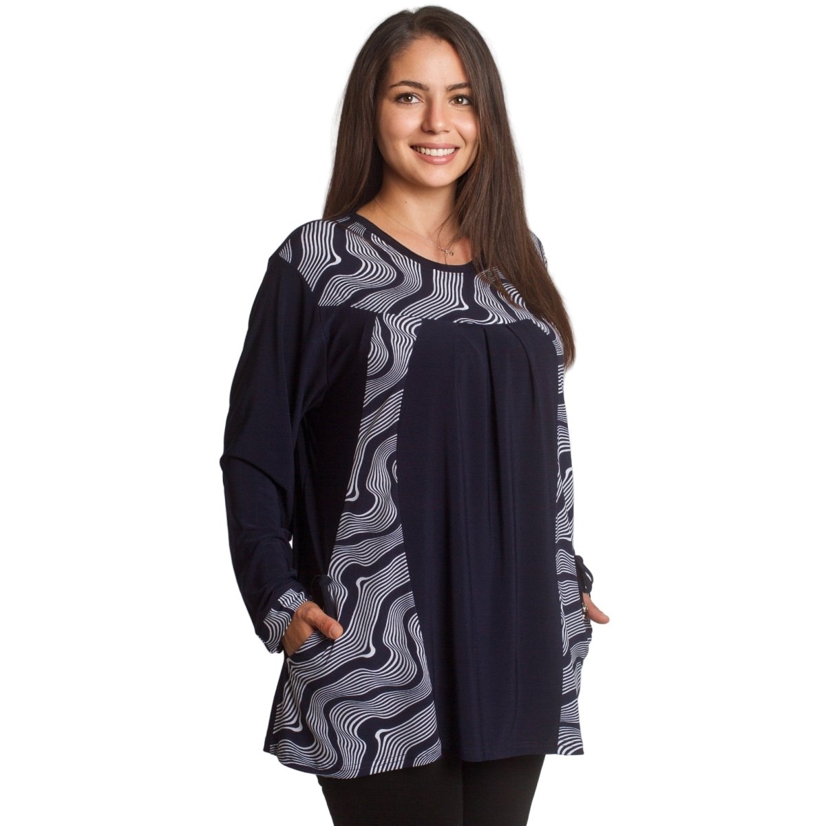 Тъмносиня туника в големи размери с бели вълнообразни линии